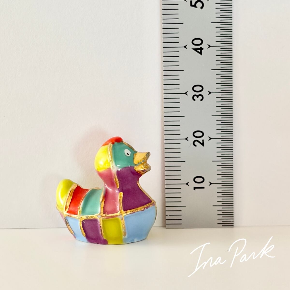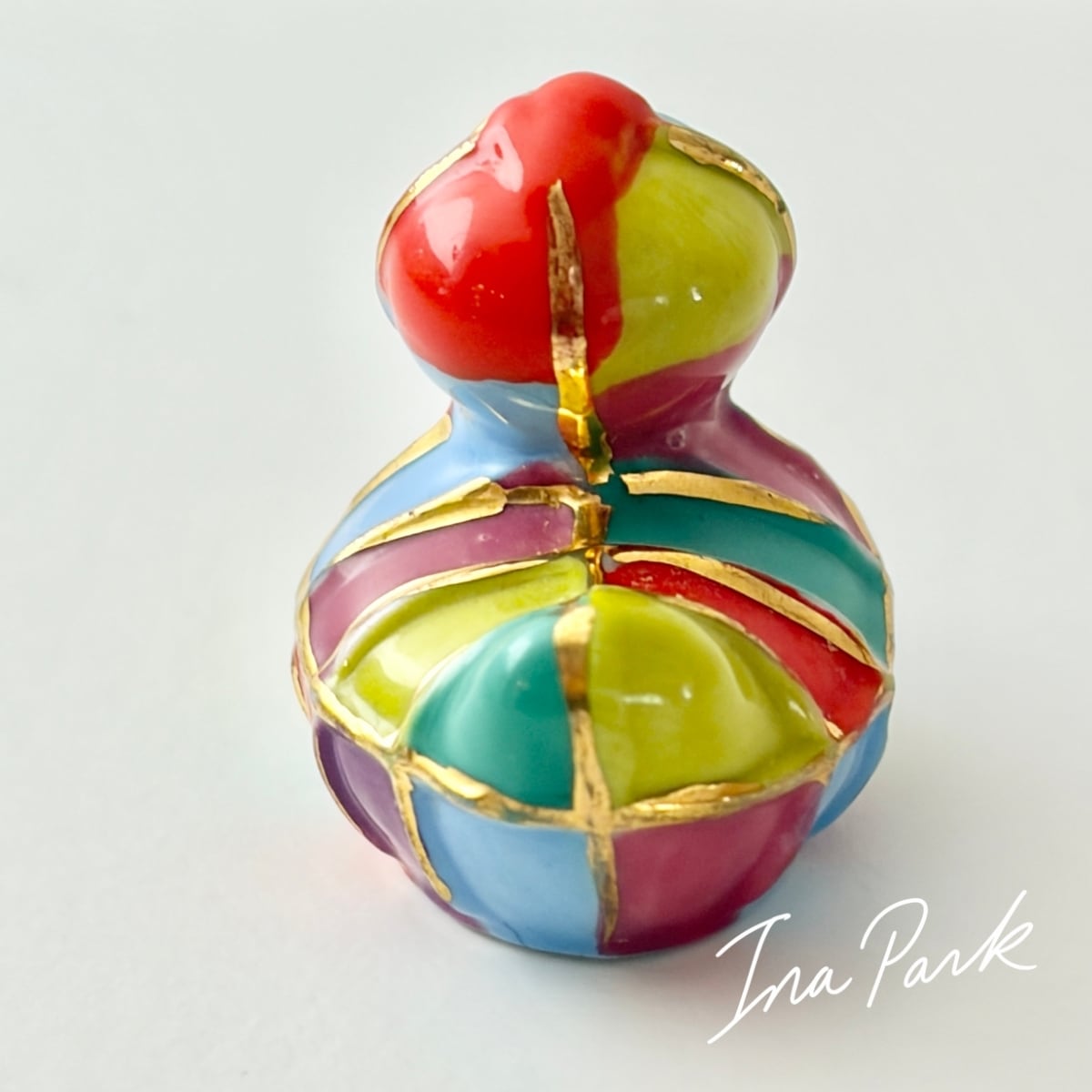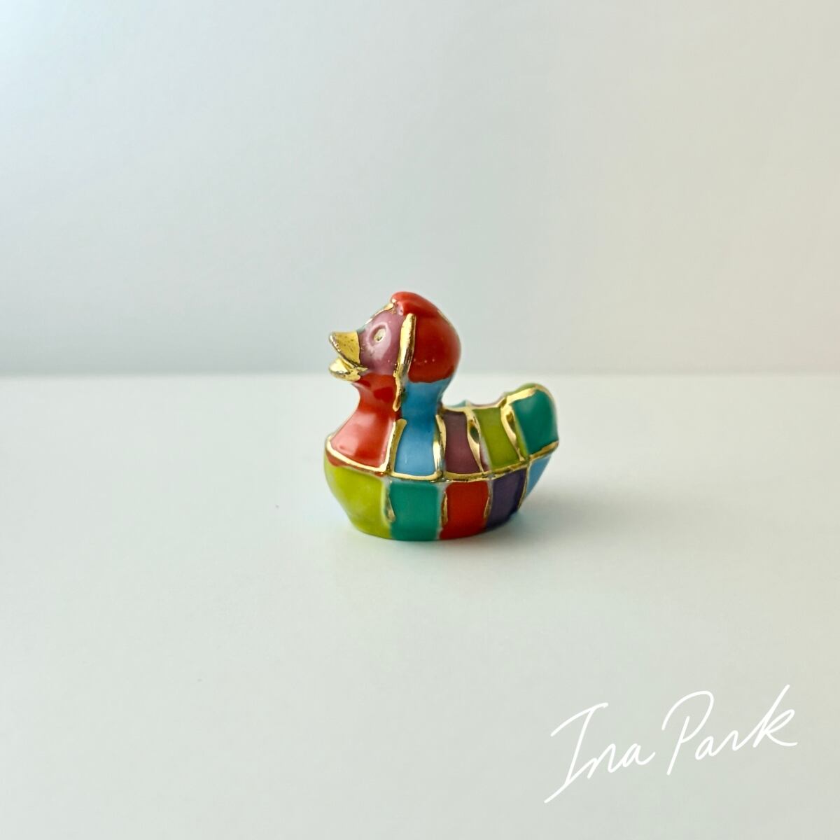 金彩入りのカラフルなアヒル フェーヴ フェーブ フランス製 ミニチュア 陶器 雑貨 置物