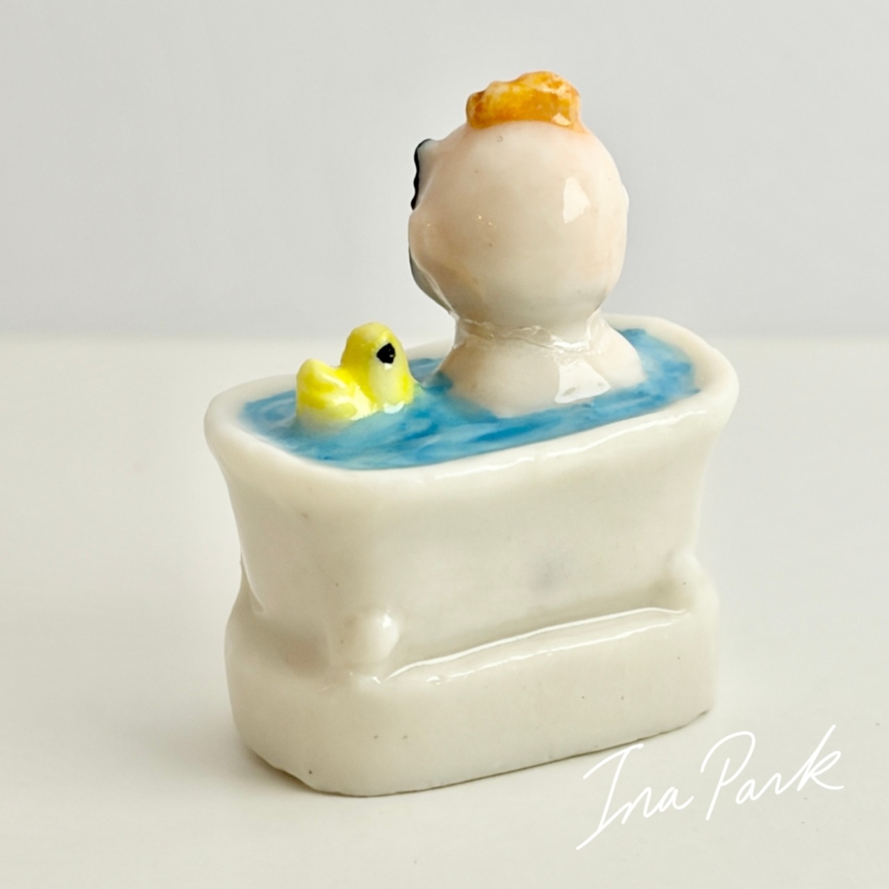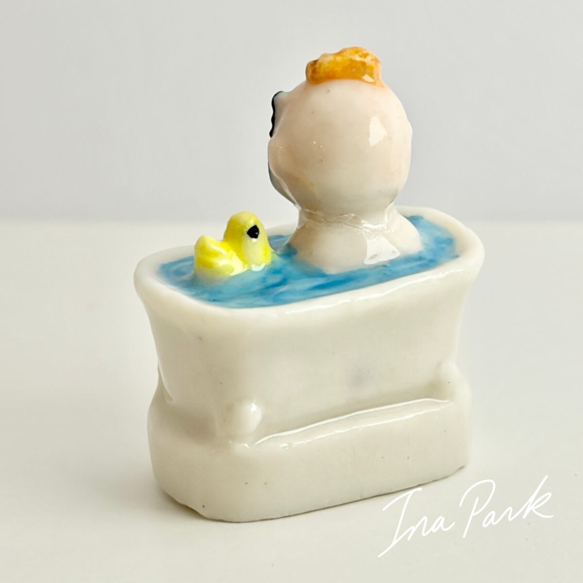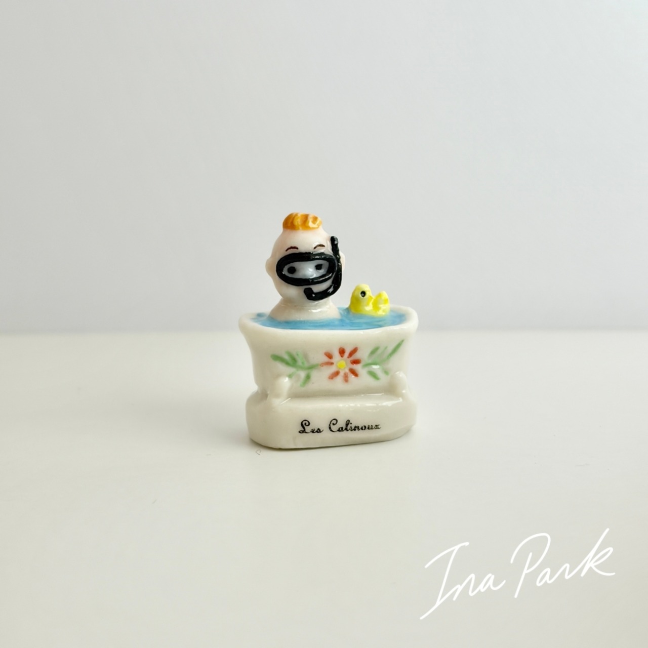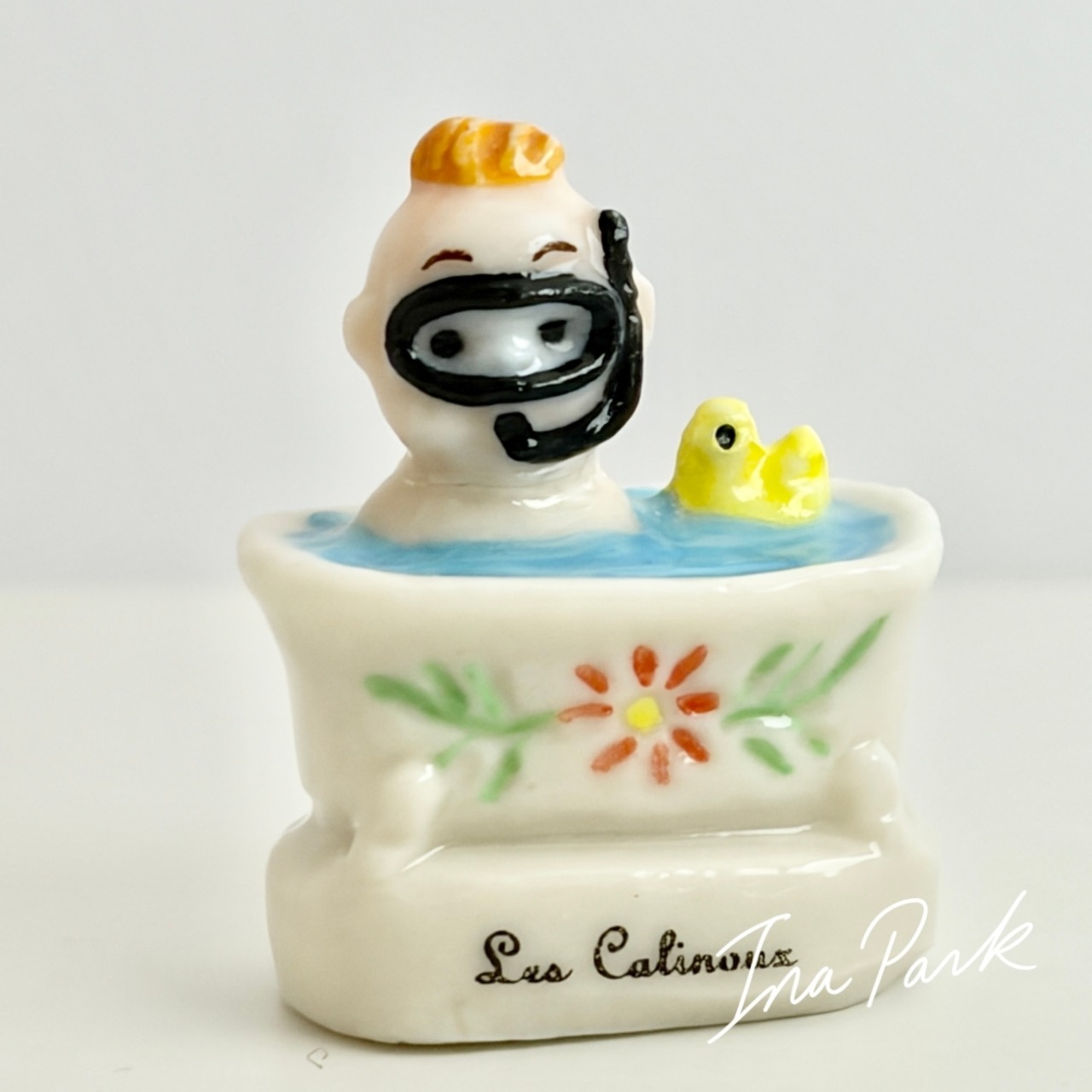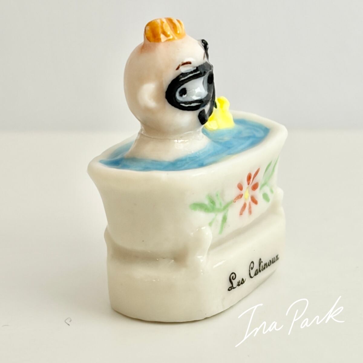 お風呂に入っている赤ちゃん フェーヴ フェーブ フランス製 ミニチュア 陶器 雑貨 置物
