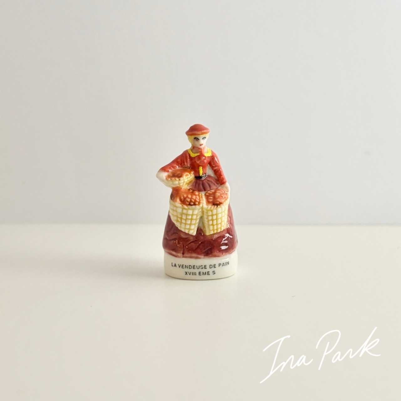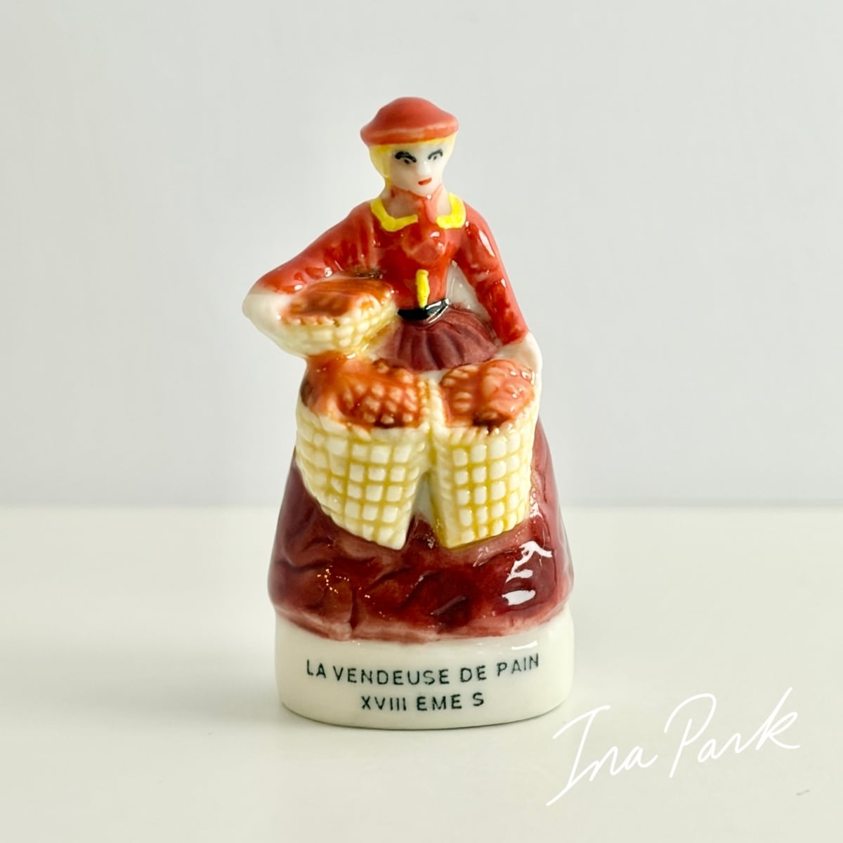 18世紀のパン売りの女性 ベーカリー パン屋 フェーヴ フェーブ フランス製 ミニチュア 陶器 雑貨 置物
