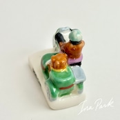 サイドカー付きバイク ベーカリー パン屋 フェーヴ フェーブ フランス製 ミニチュア 陶器 雑貨 置物
