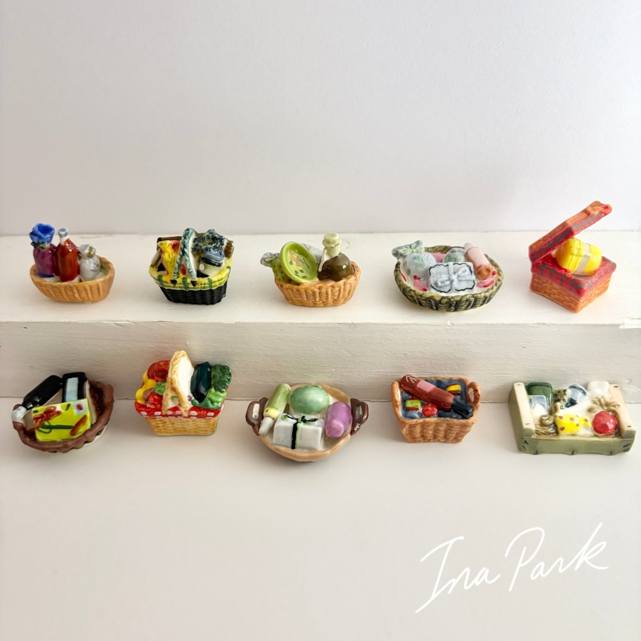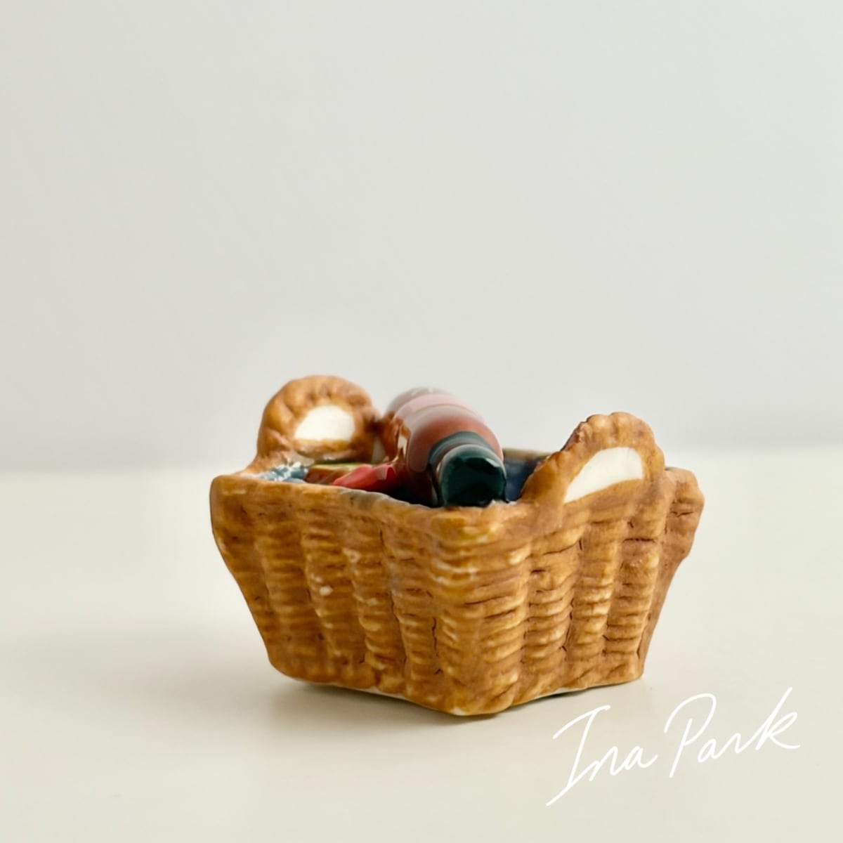 太陽の下で マルシェのパニエ 贈り物のバスケット フェーヴ フェーブ フランス製 ミニチュア 陶器 雑貨 置物