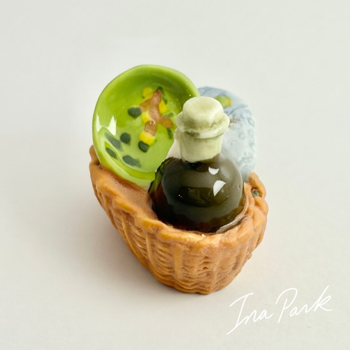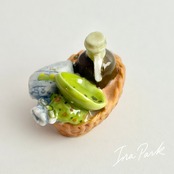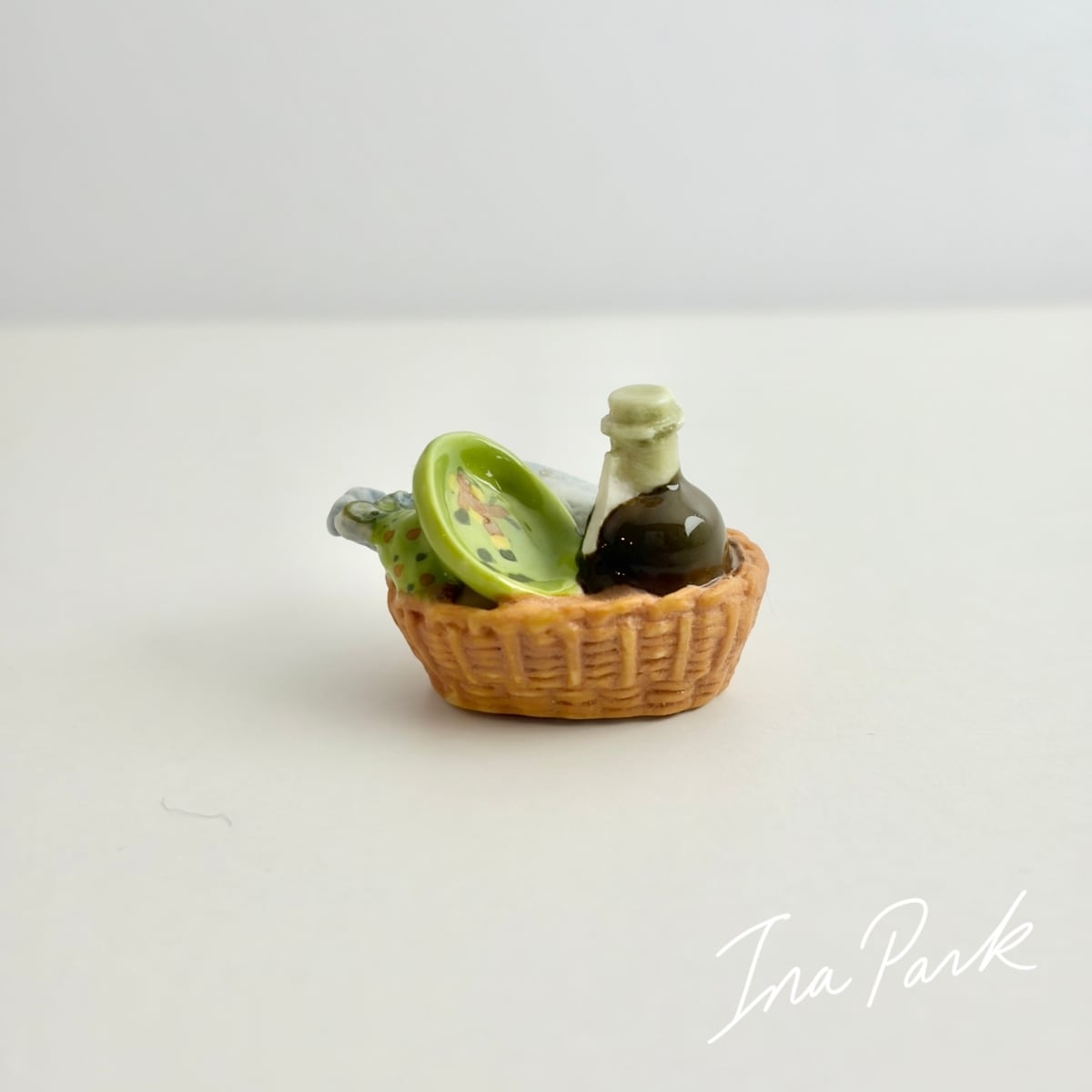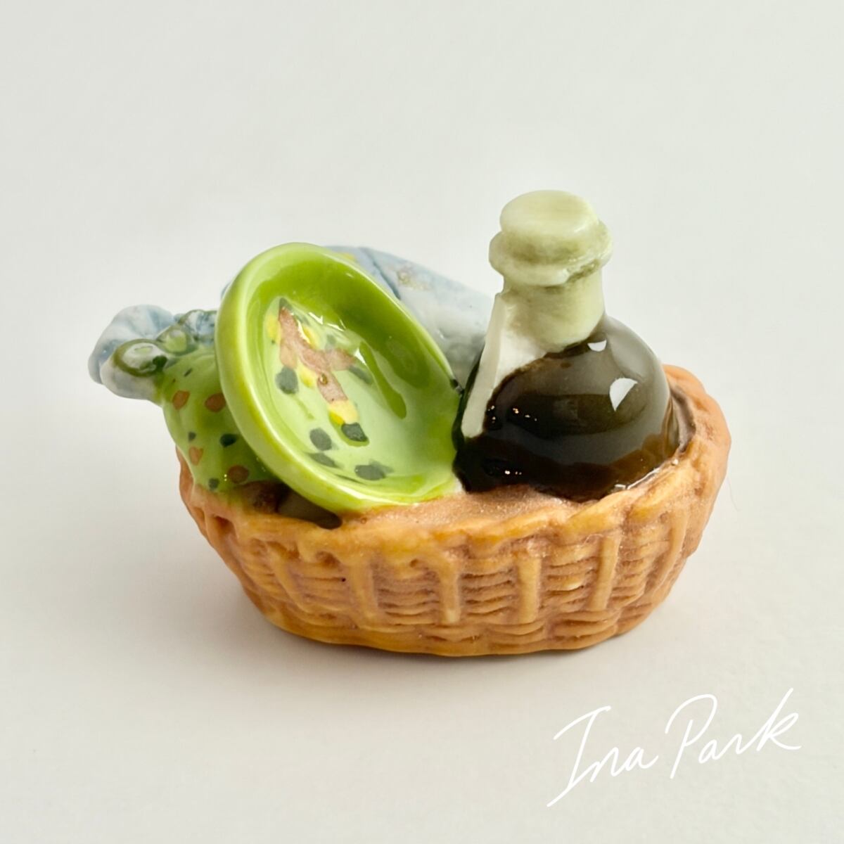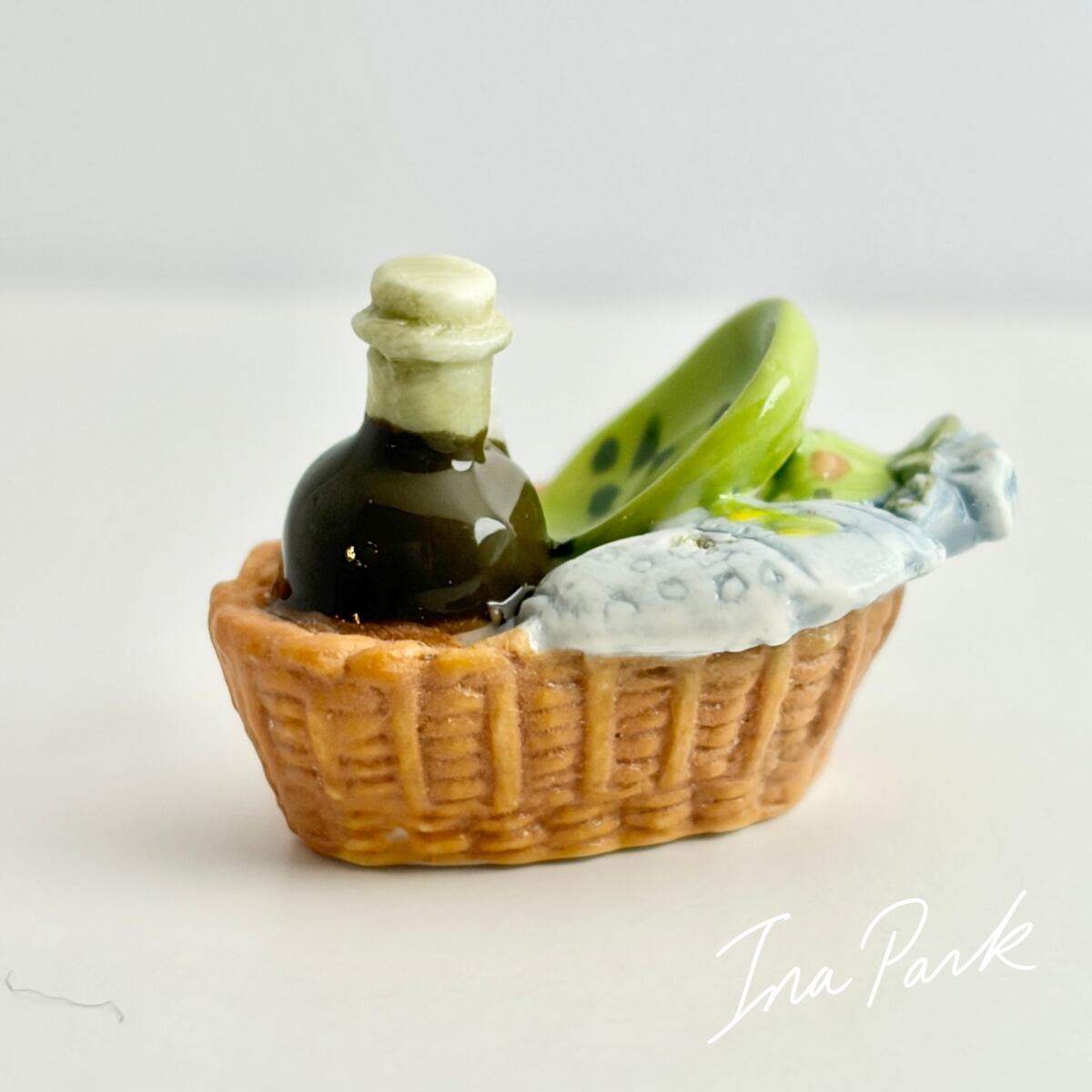 プロヴァンスの美味しいもののパニエ マルシェ 贈り物のバスケット フェーヴ フェーブ フランス製 ミニチュア 陶器 雑貨 置物