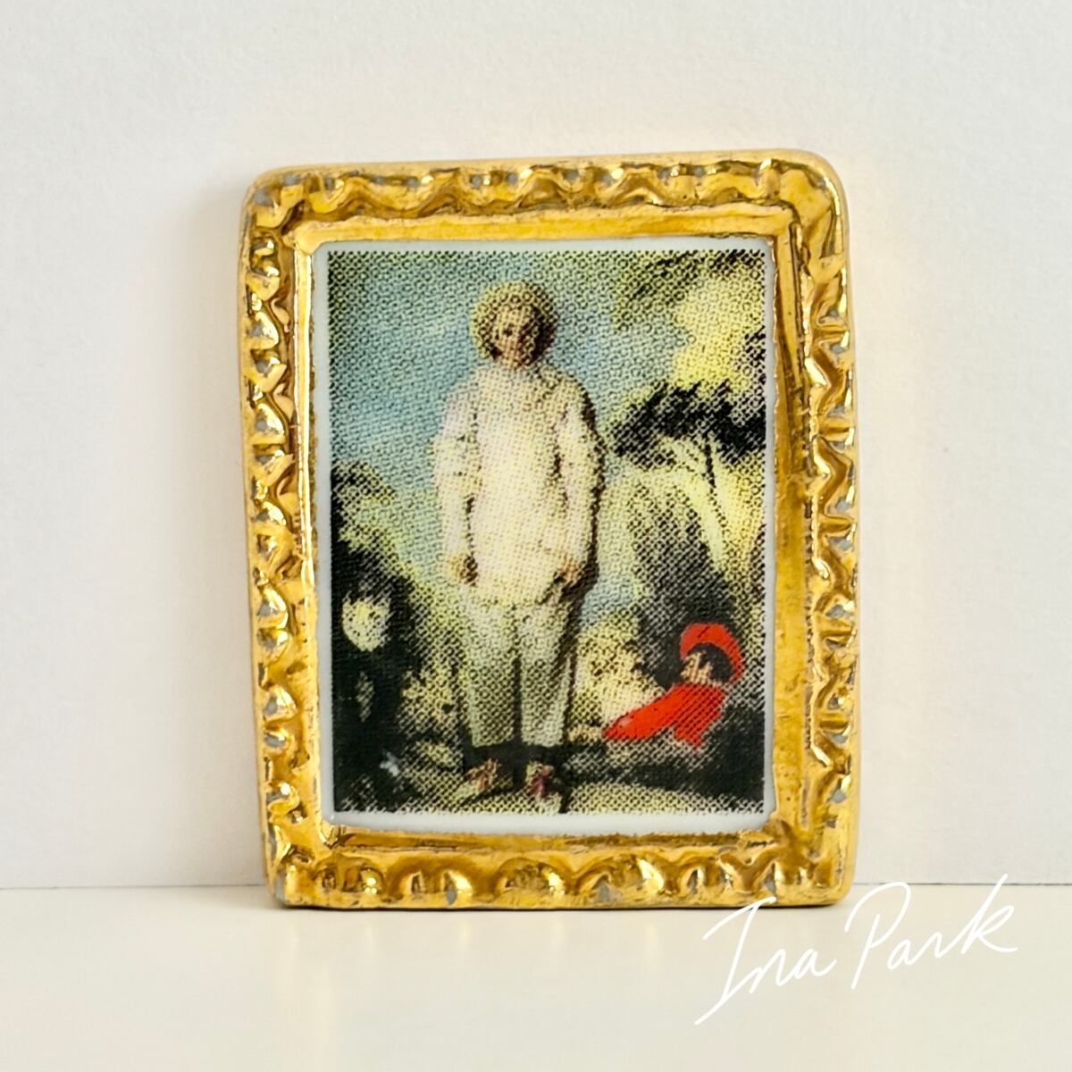 ワトー ピエロの絵画 ルーブル美術館所蔵品 フェーヴ フェーブ フランス製 ミニチュア 陶器 雑貨 置物