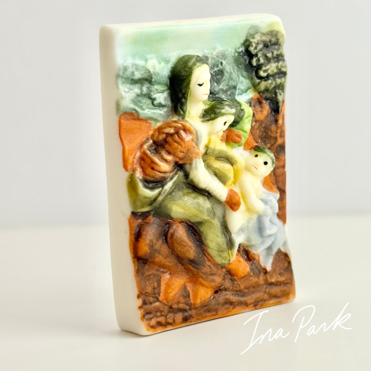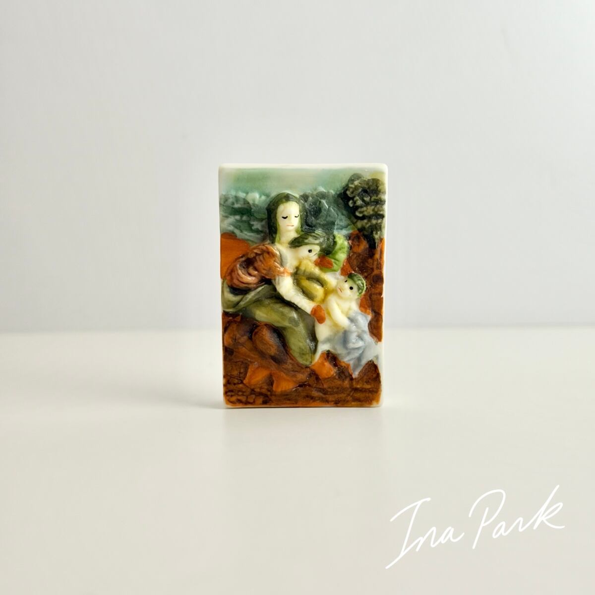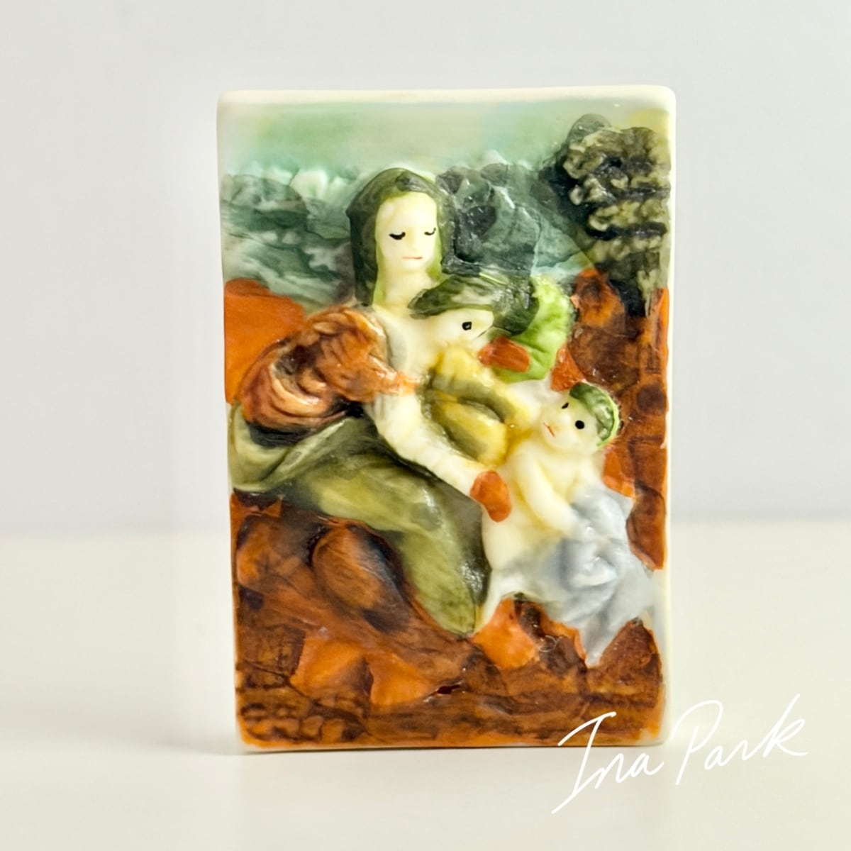 名画 レオナルド・ダ・ヴィンチ 聖母、幼子イエス、聖アンナ 絵画 フェーヴ フェーブ フランス製 ミニチュア 陶器 雑貨 置物