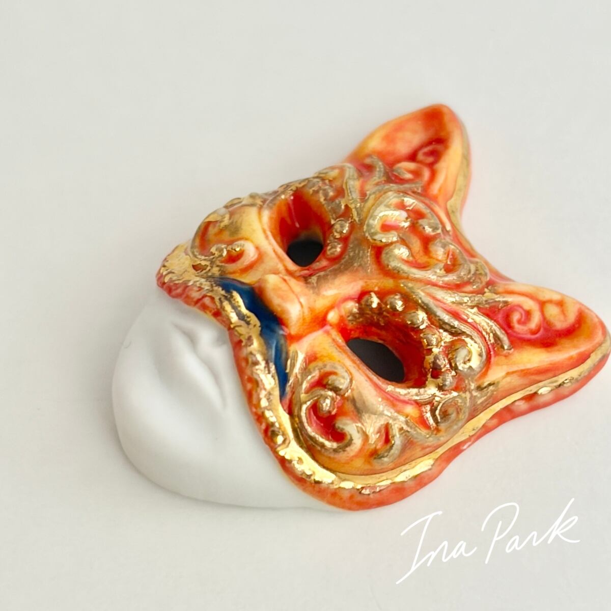ベネツィア 猫のマスク イタリア フェーヴ フェーブ フランス製 ミニチュア 陶器 雑貨 置物