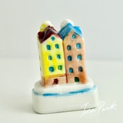 アムステルダム 運河の街並み フェーヴ フェーブ フランス製 ミニチュア 陶器 雑貨 置物