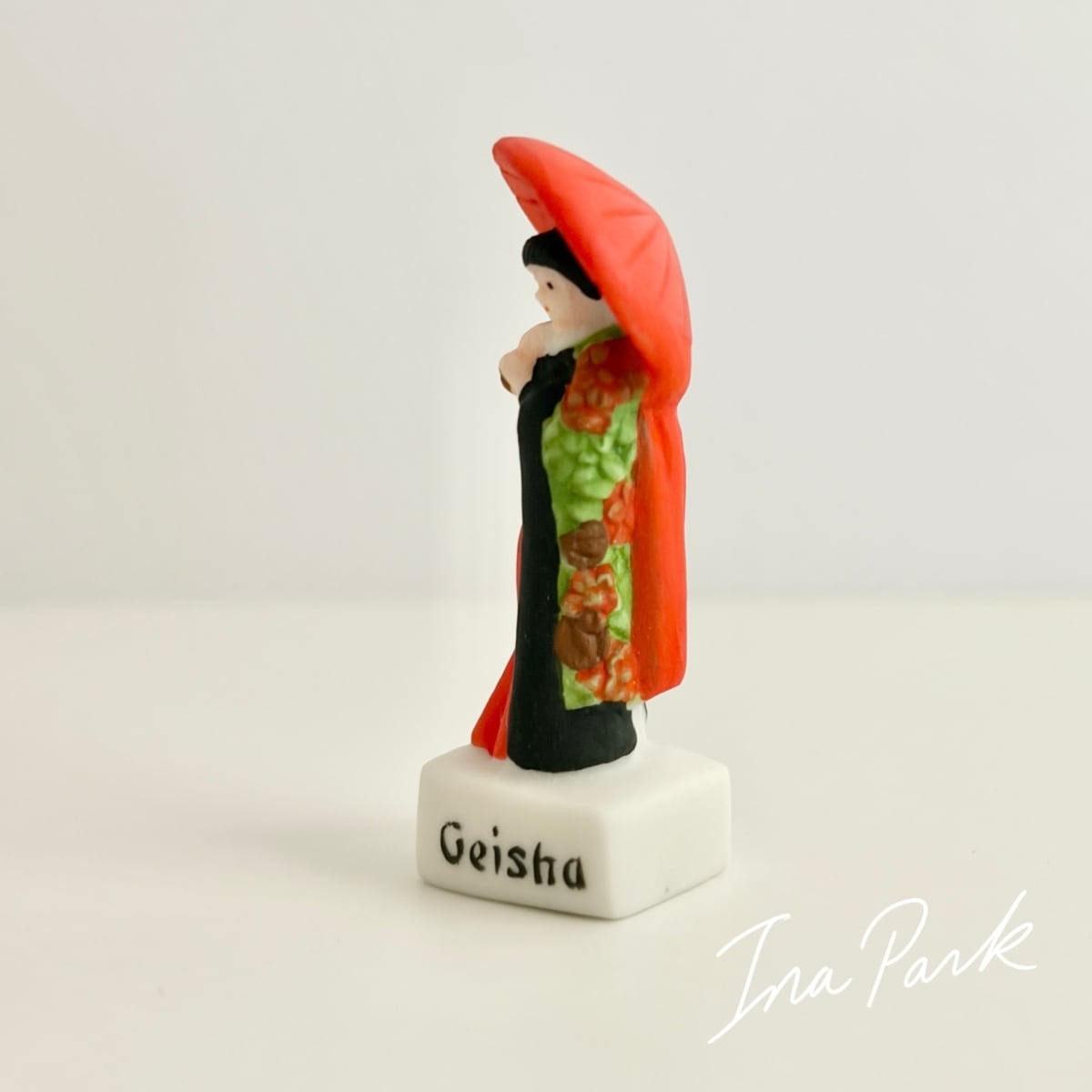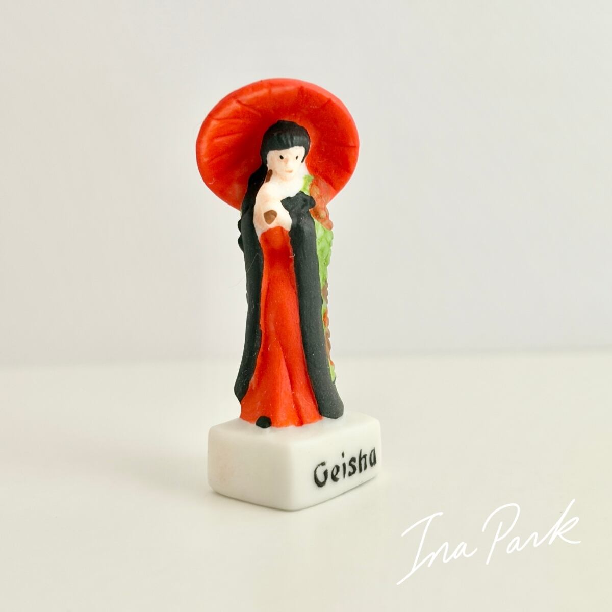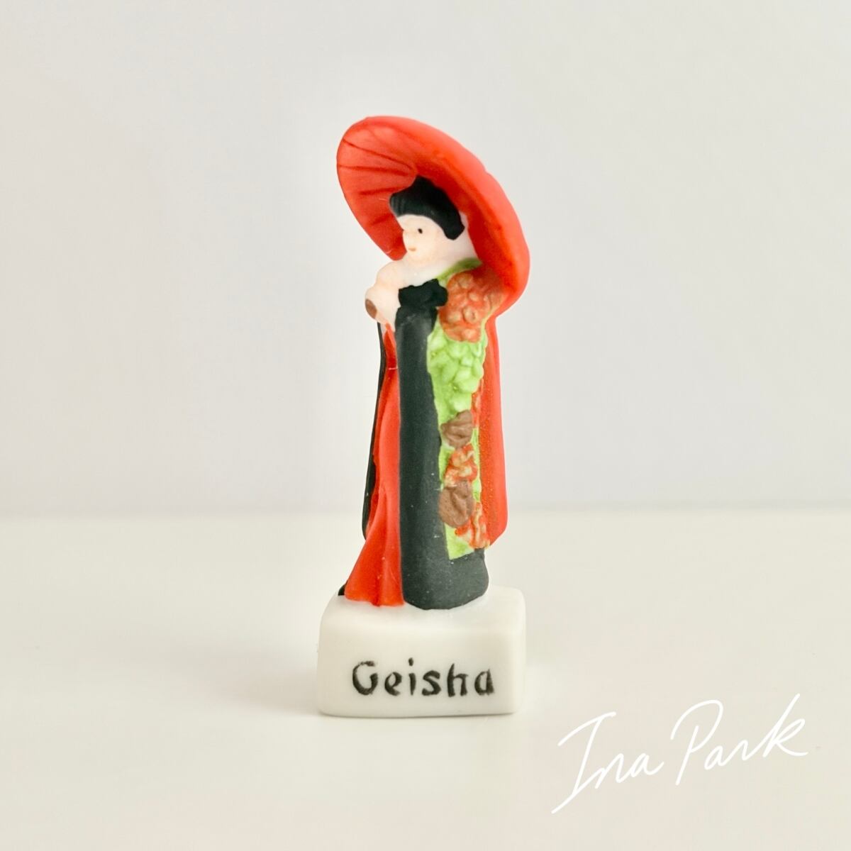 赤い番傘の芸妓さん ル・ジャポン 太陽の国日本 フェーヴ フェーブ フランス製 ミニチュア 陶器 雑貨 置物