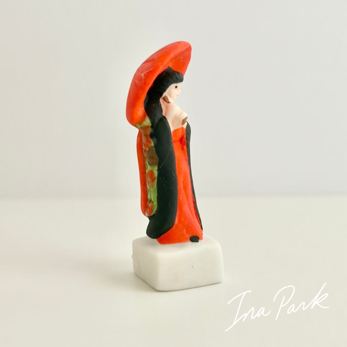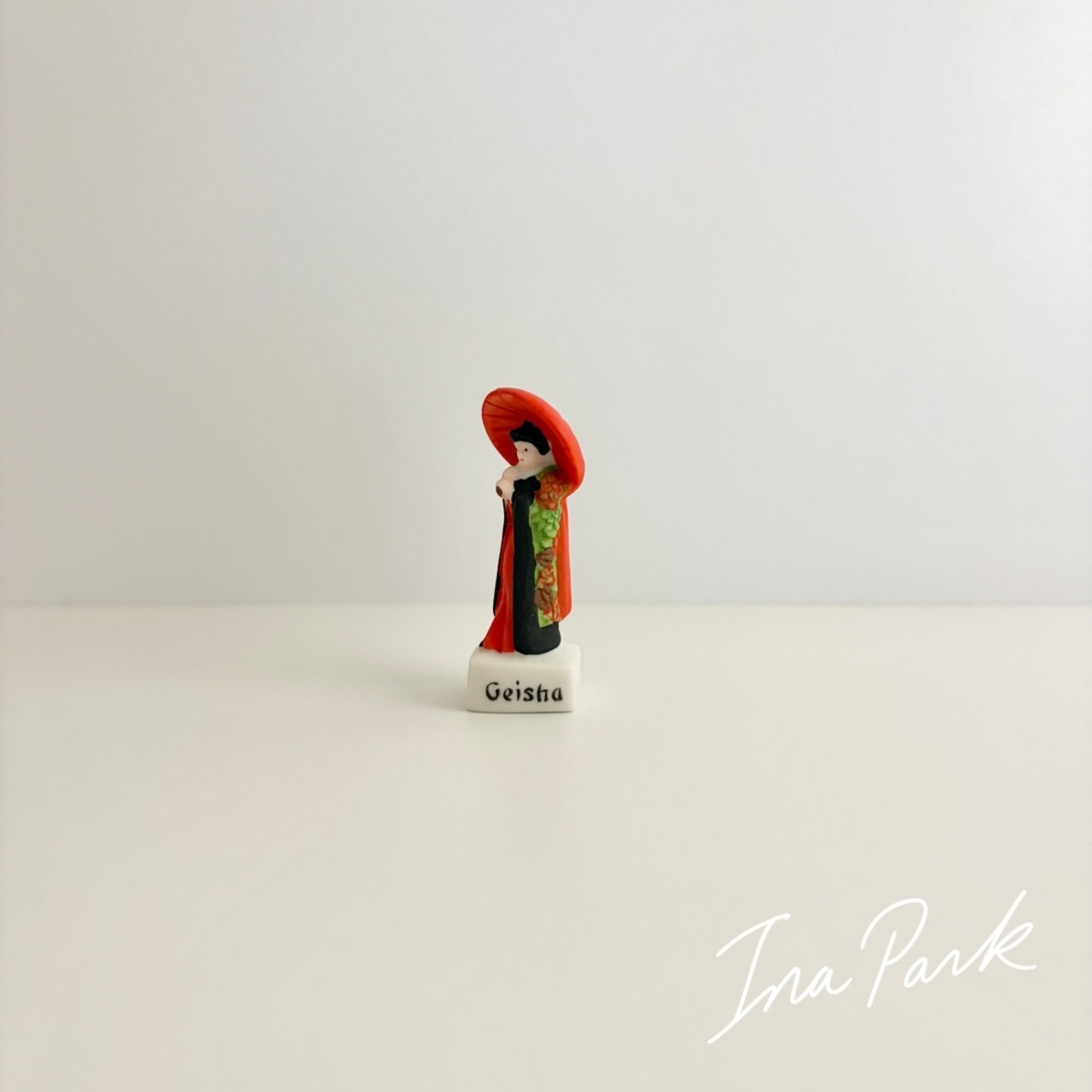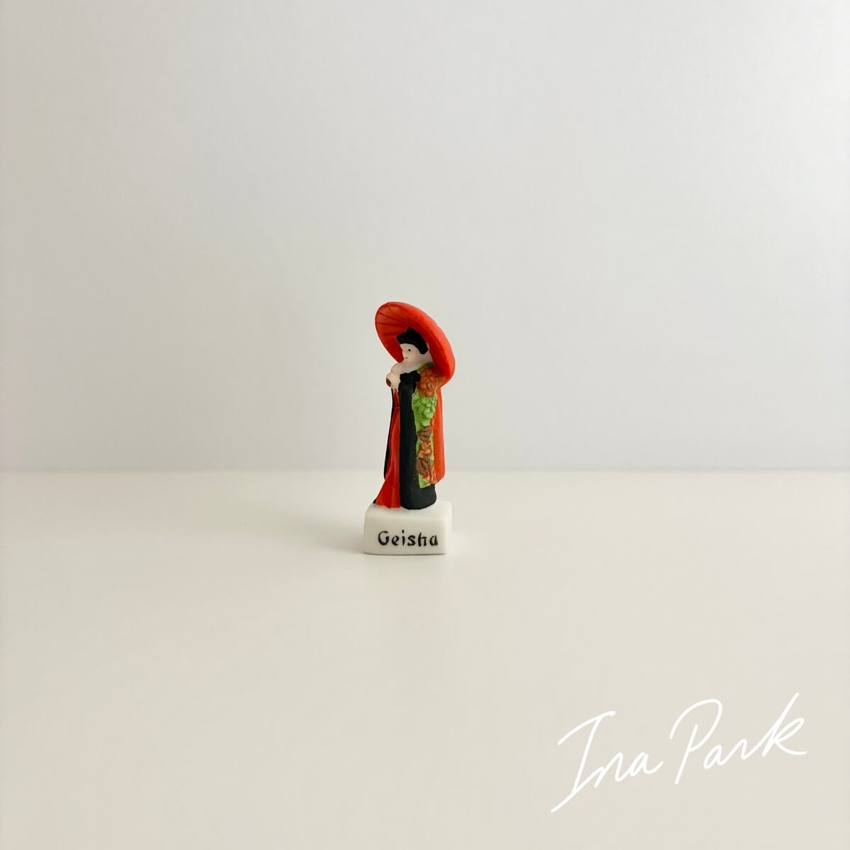 赤い番傘の芸妓さん ル・ジャポン 太陽の国日本 フェーヴ フェーブ フランス製 ミニチュア 陶器 雑貨 置物