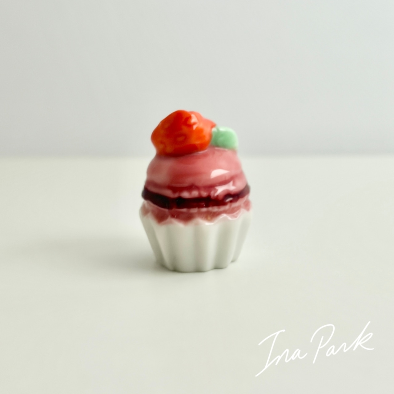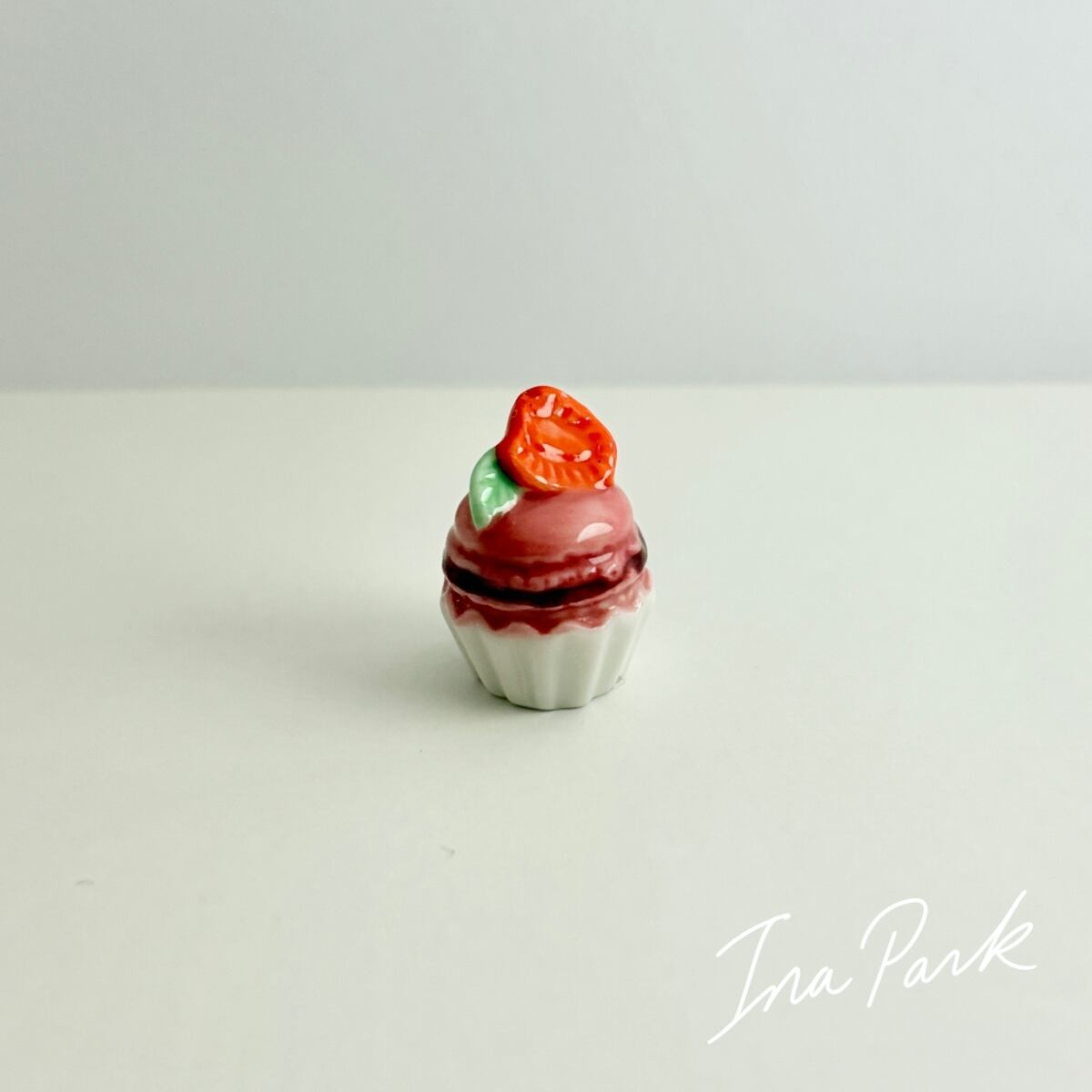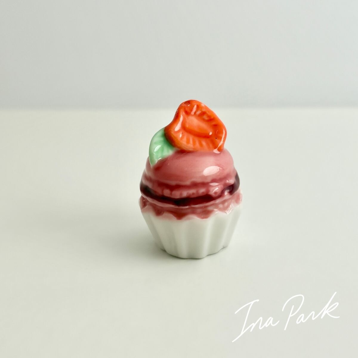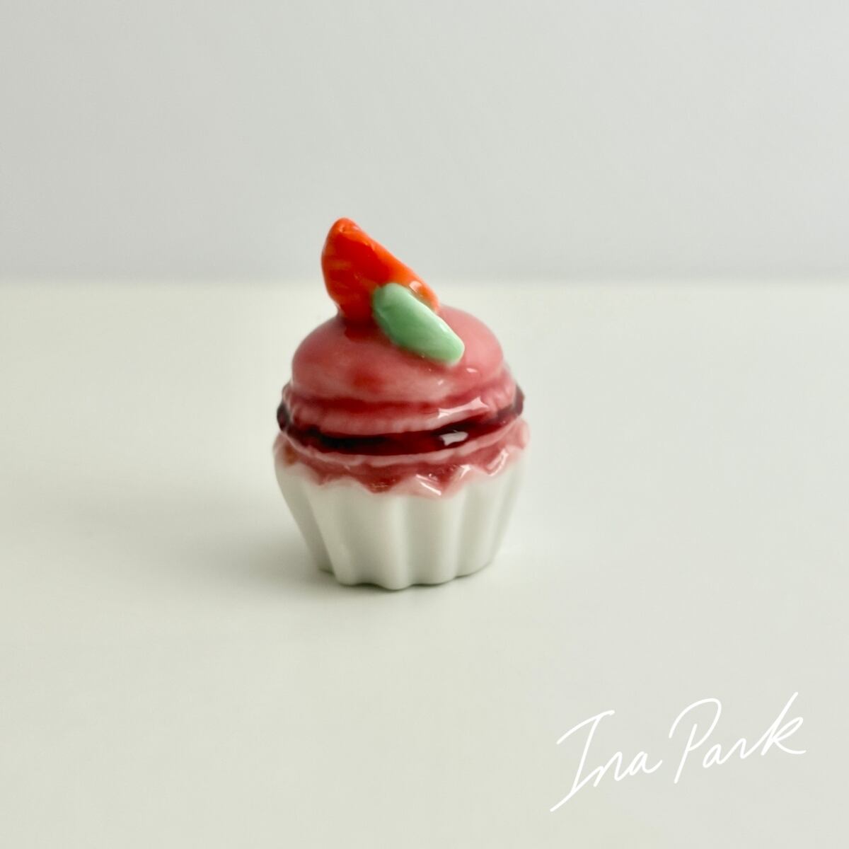 苺のマカロンカップケーキ いちご イチゴ フェーヴ フェーブ フランス製 ミニチュア 陶器 雑貨 置物