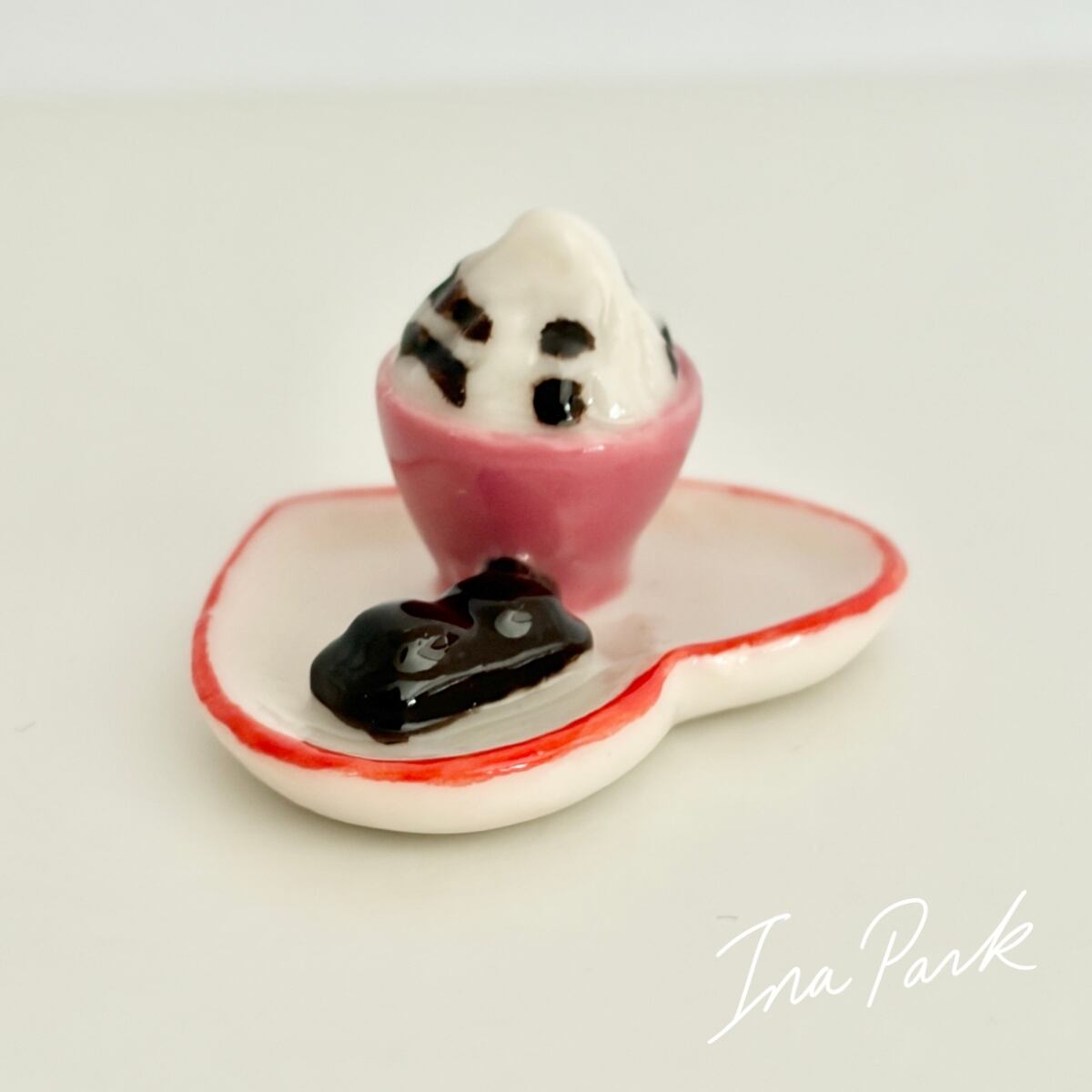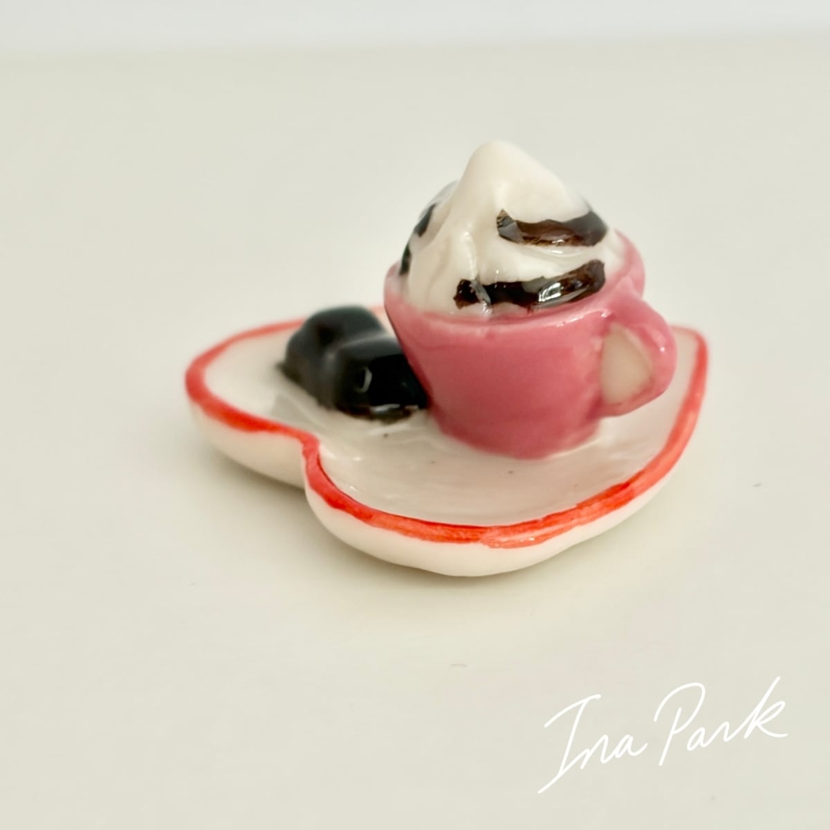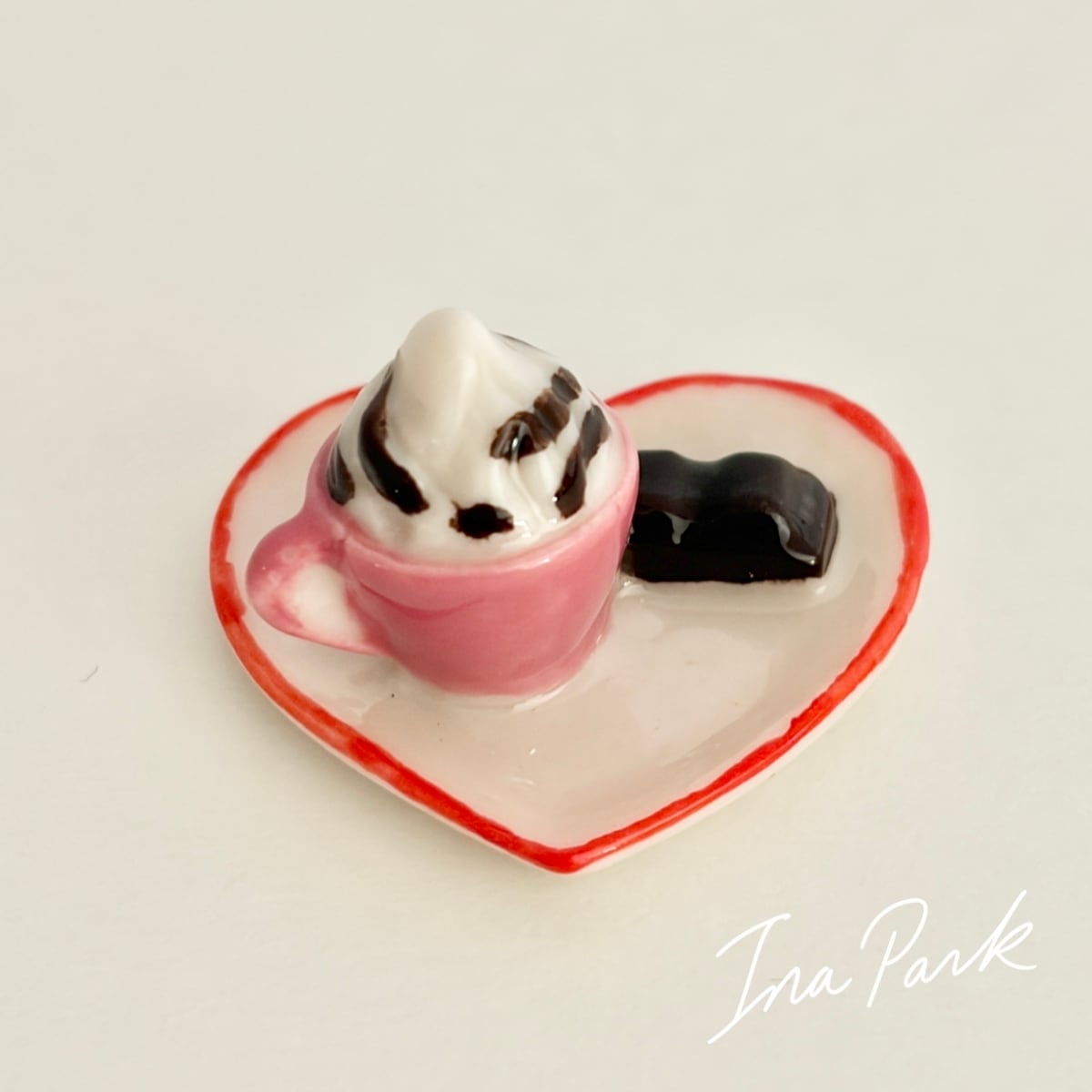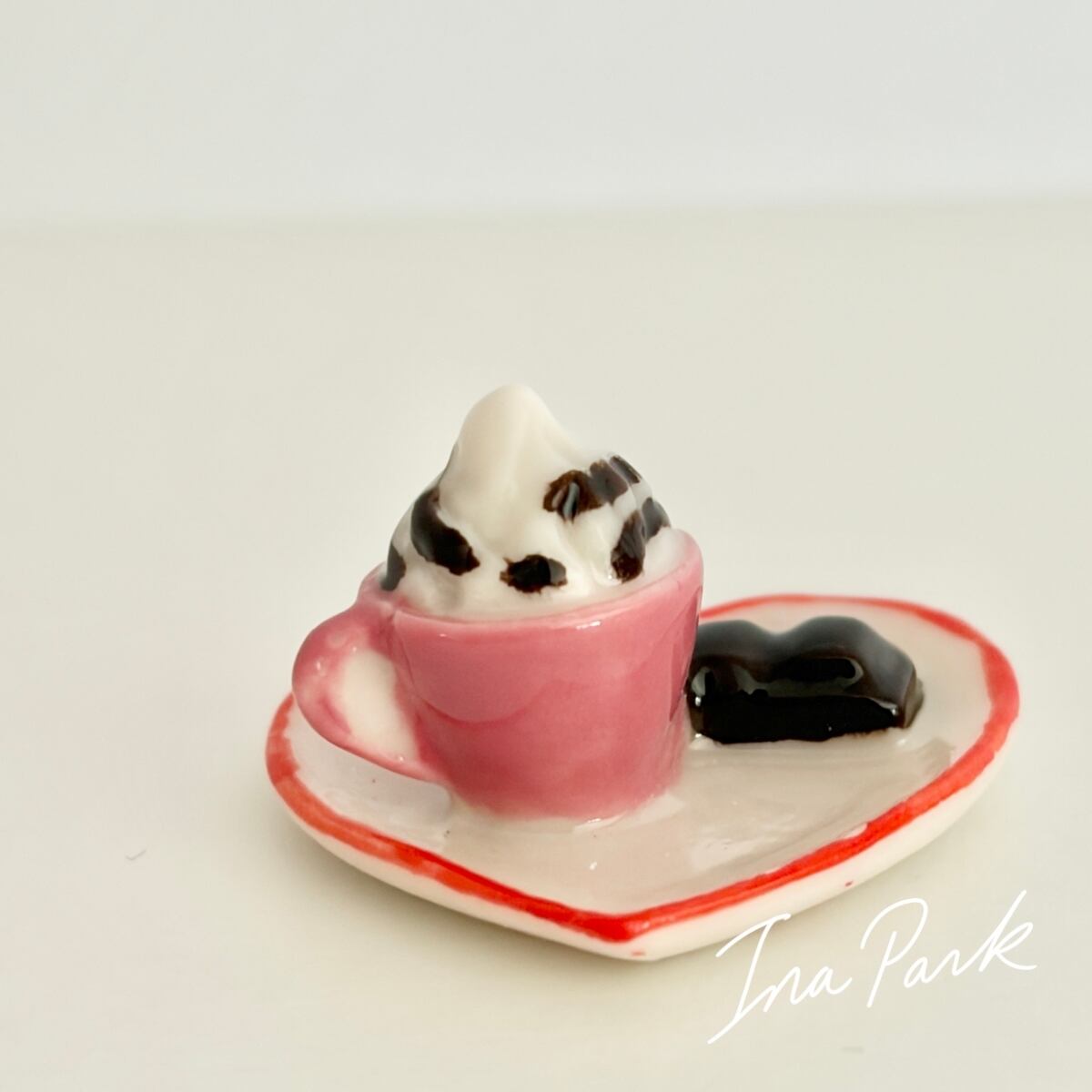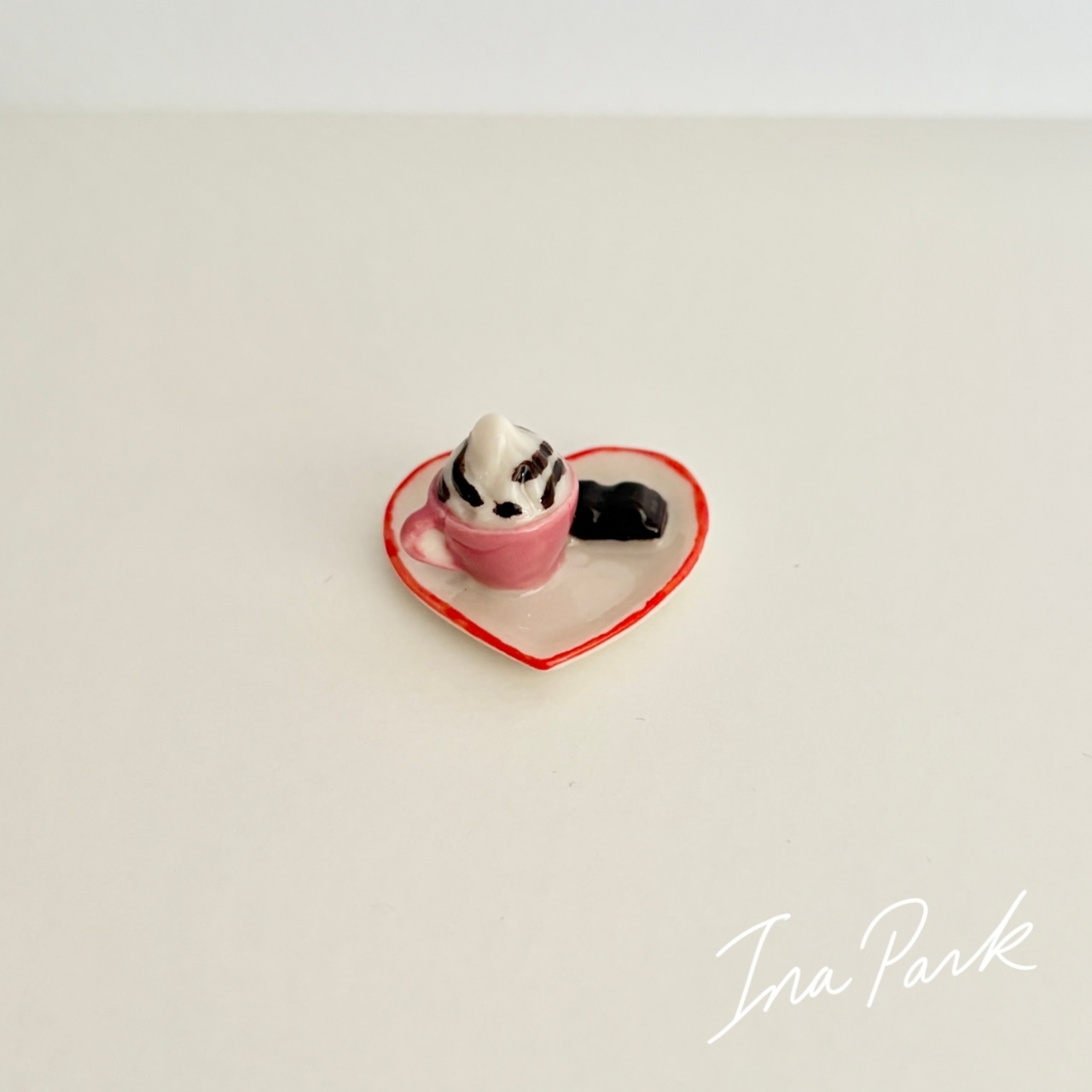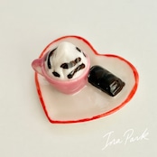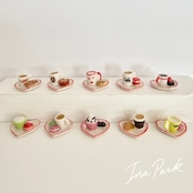 ハートのお皿のカフェタイム お菓子 コーヒー フェーヴ フェーブ フランス製 ミニチュア 陶器 雑貨 置物