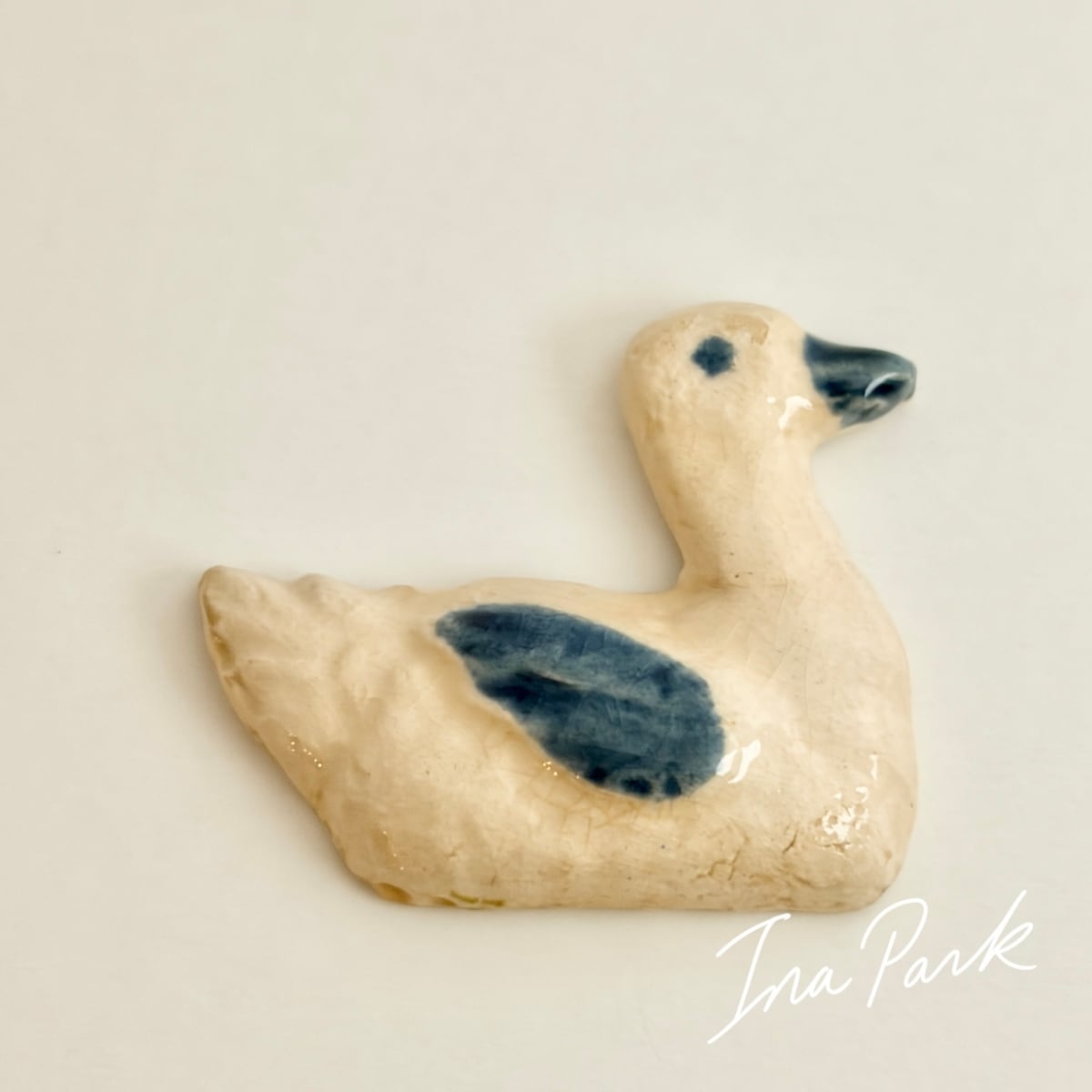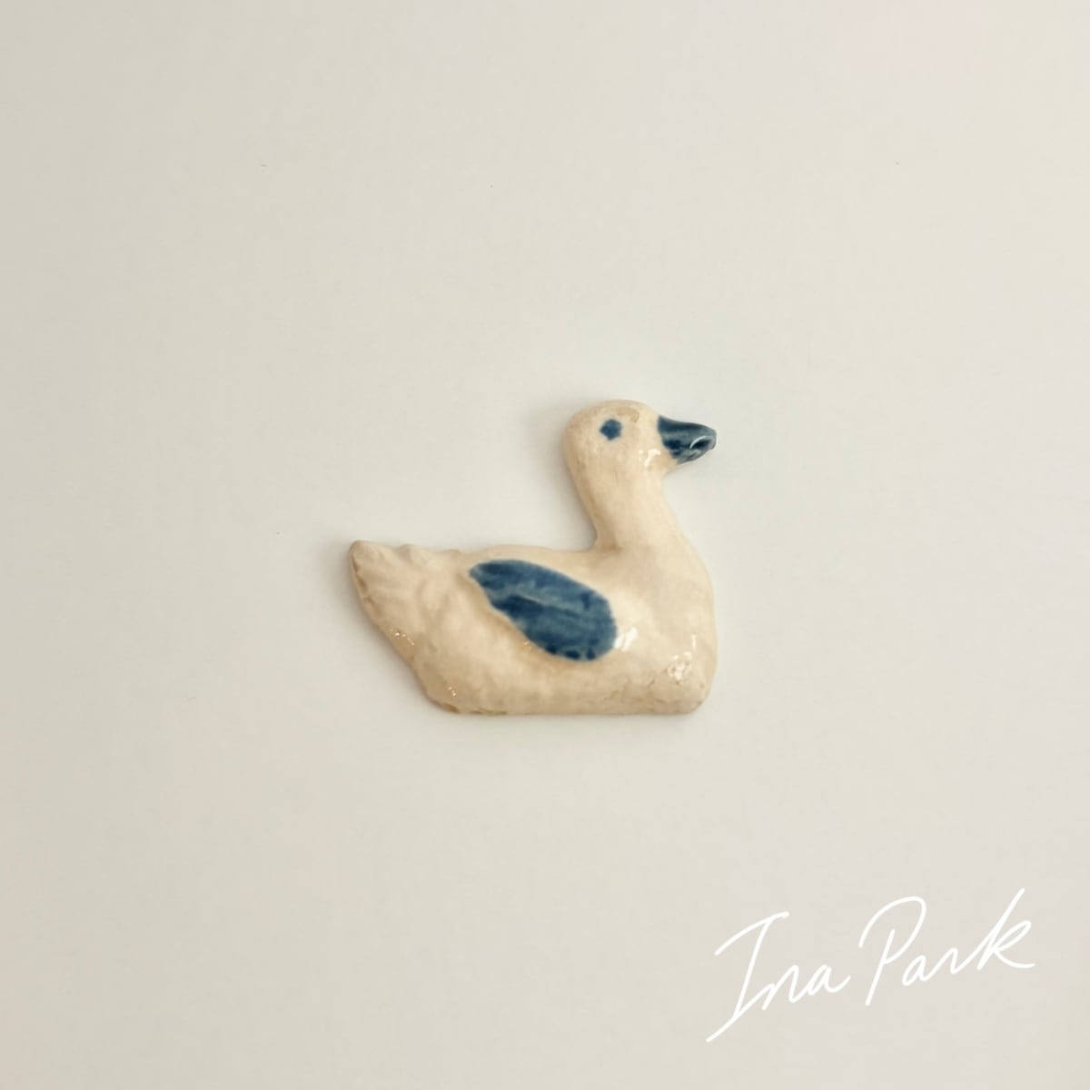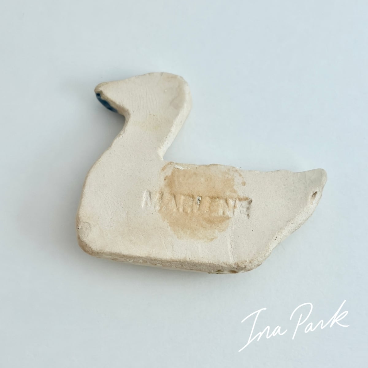 Marlène マルレーヌ 青色の羽の水鳥 フェーヴ フェーブ フランス製 ミニチュア 陶器 雑貨 置物