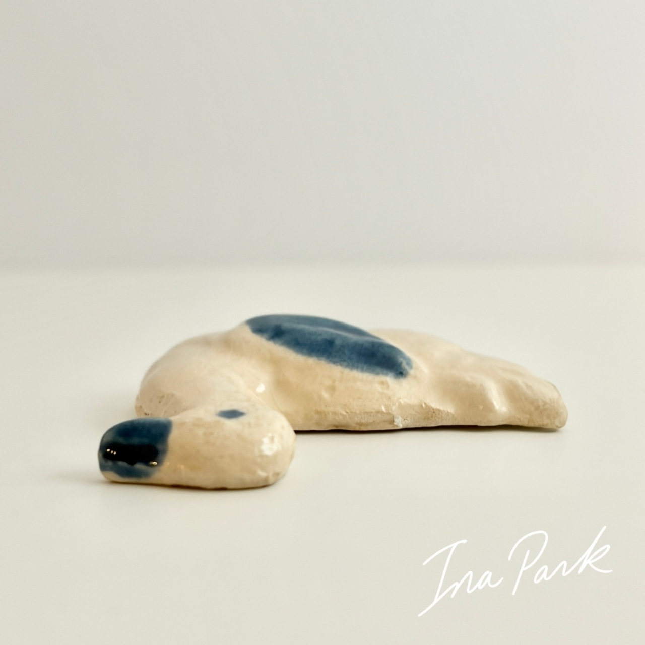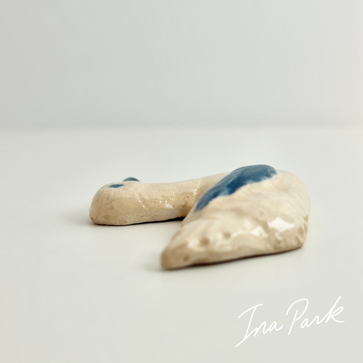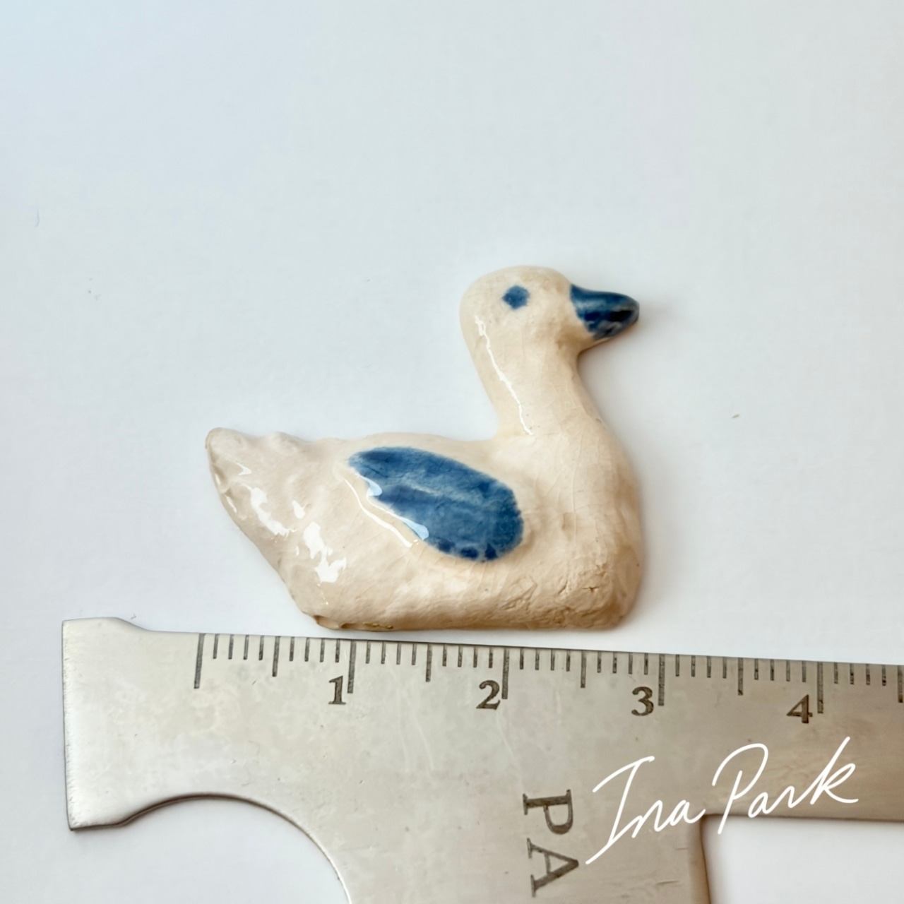 Marlène マルレーヌ 青色の羽の水鳥 フェーヴ フェーブ フランス製 ミニチュア 陶器 雑貨 置物