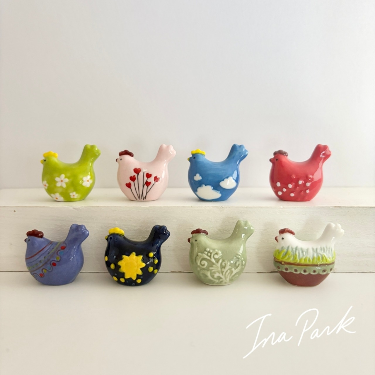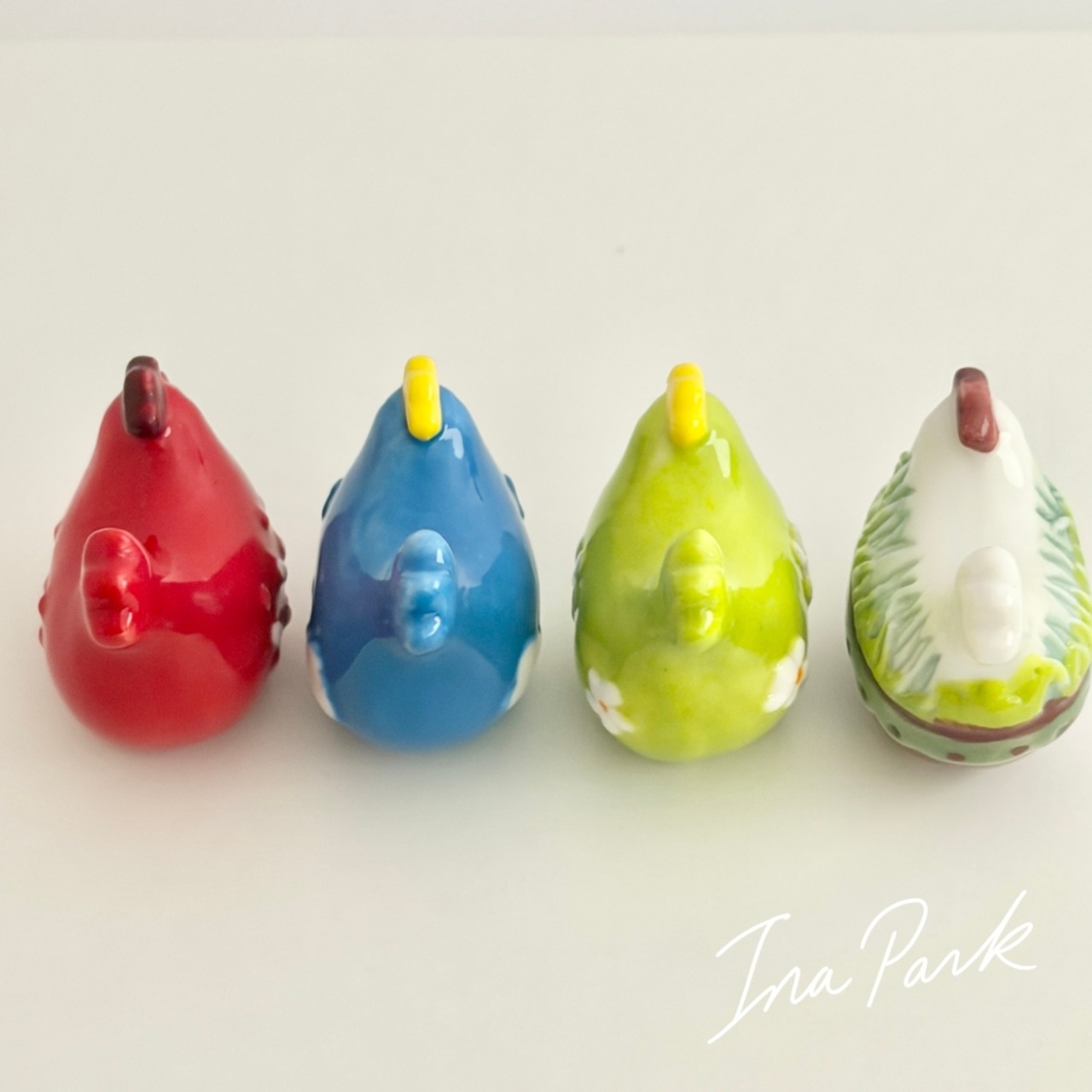 まるまるとしたフォルム、鮮やかな色、立体的な飾り模様