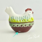 まんまるな装飾ニワトリ 鶏 鳥 フェーヴ フェーブ フランス製 ミニチュア 陶器 雑貨 置物