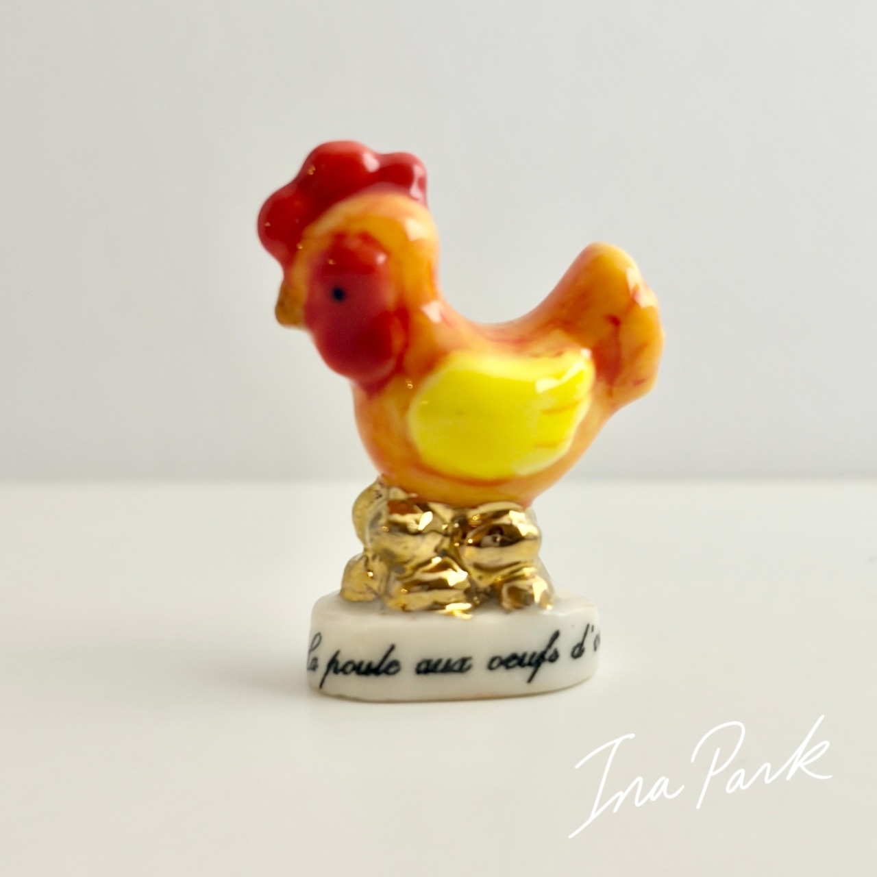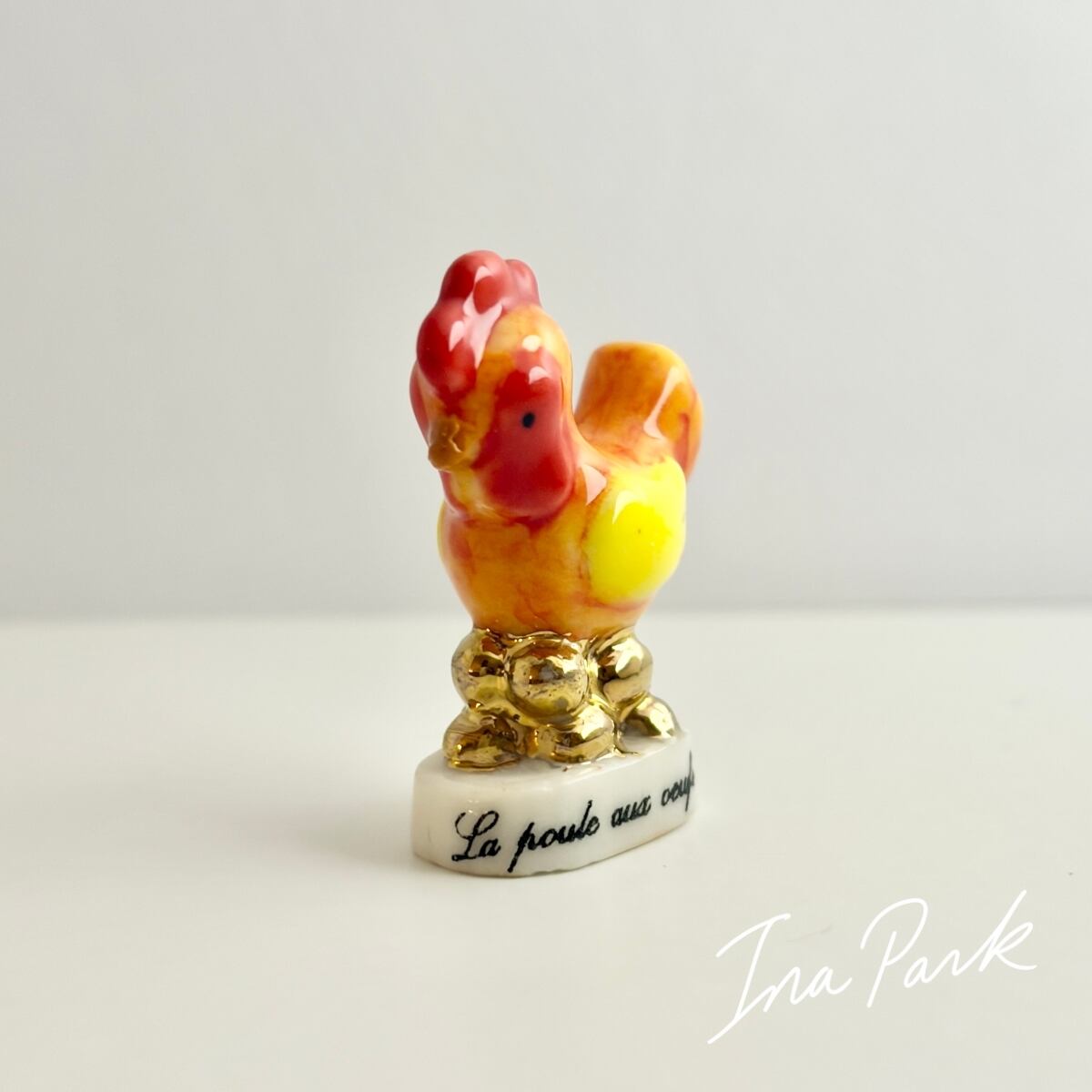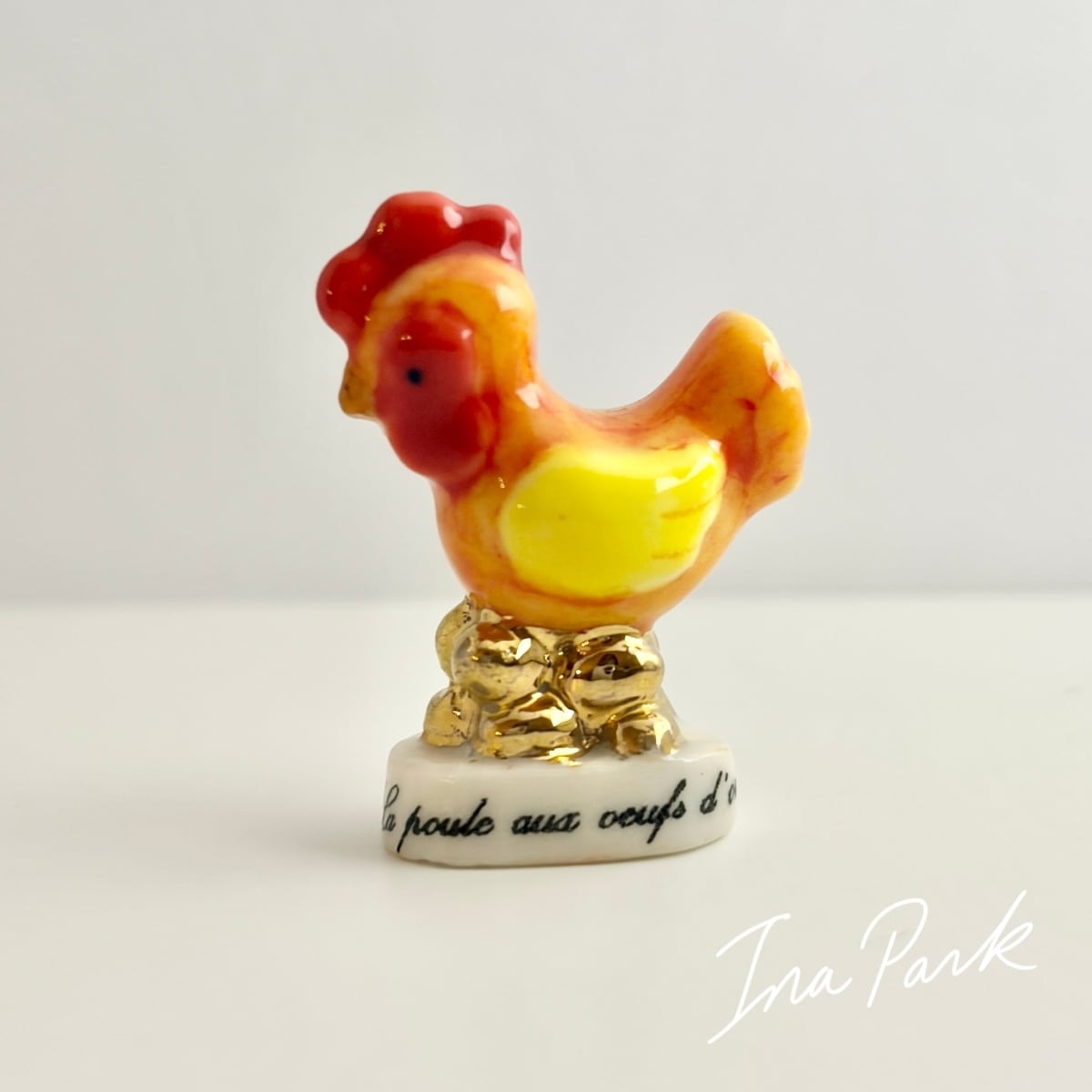 金の卵をたくさん産むニワトリ イースター フェーヴ フェーブ フランス製 ミニチュア 陶器 雑貨 置物