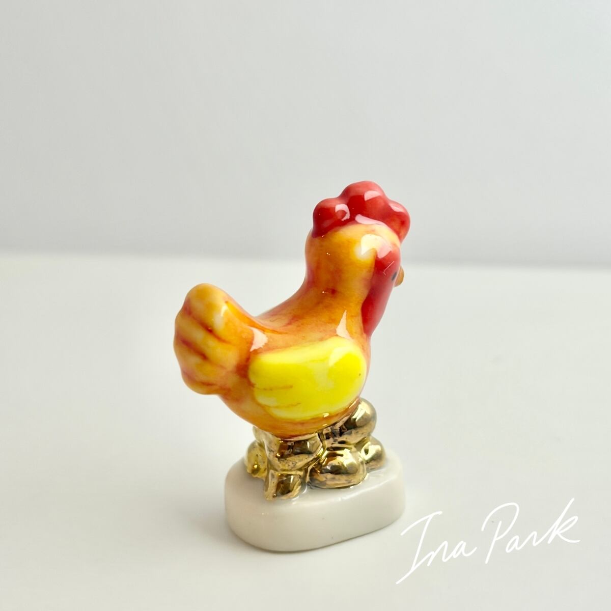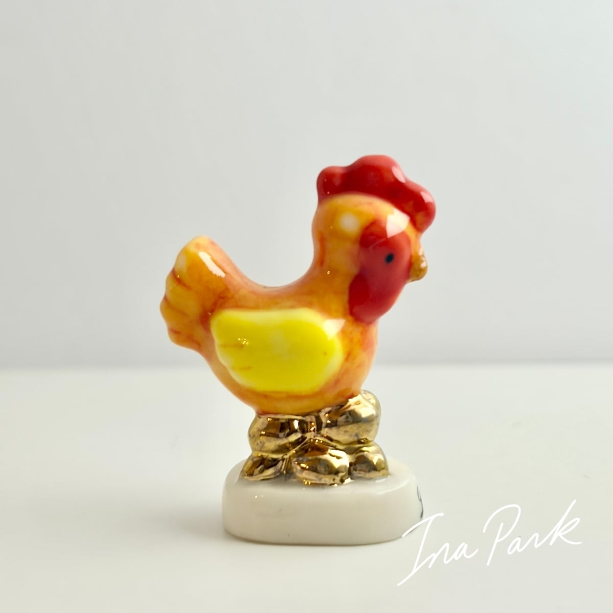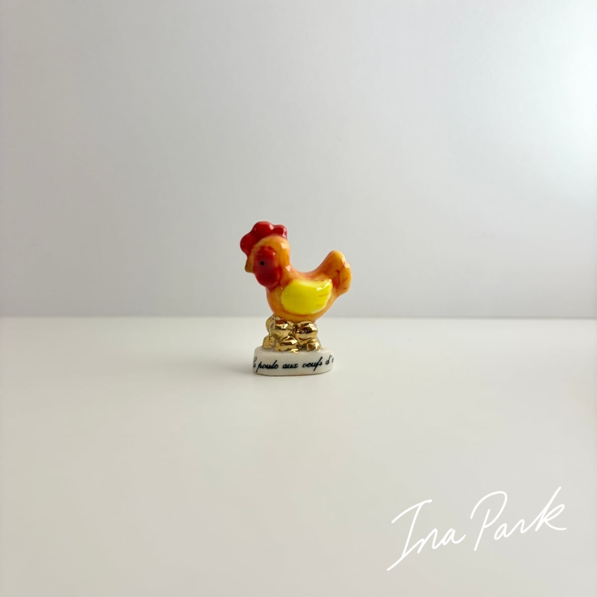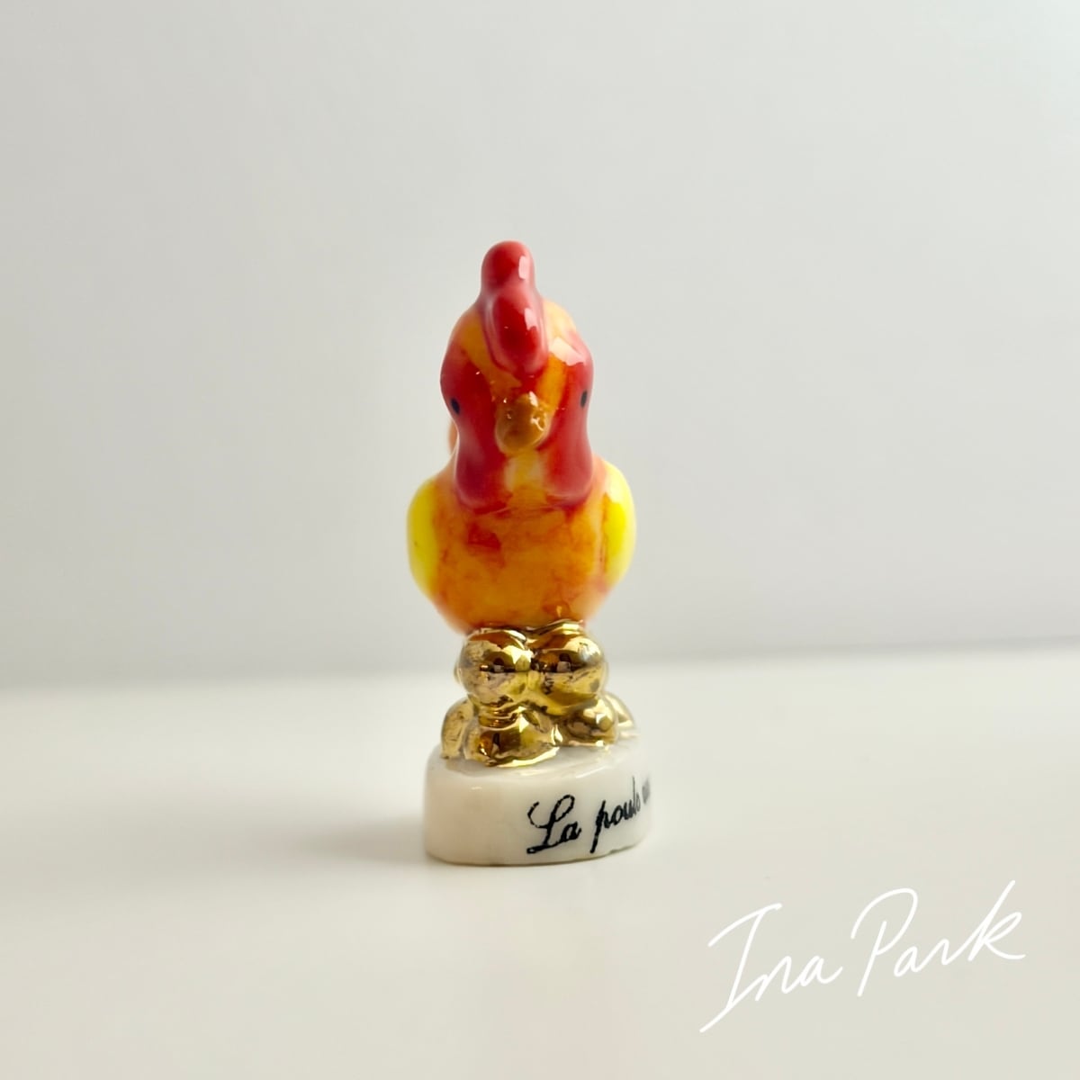 金の卵をたくさん産むニワトリ イースター フェーヴ フェーブ フランス製 ミニチュア 陶器 雑貨 置物