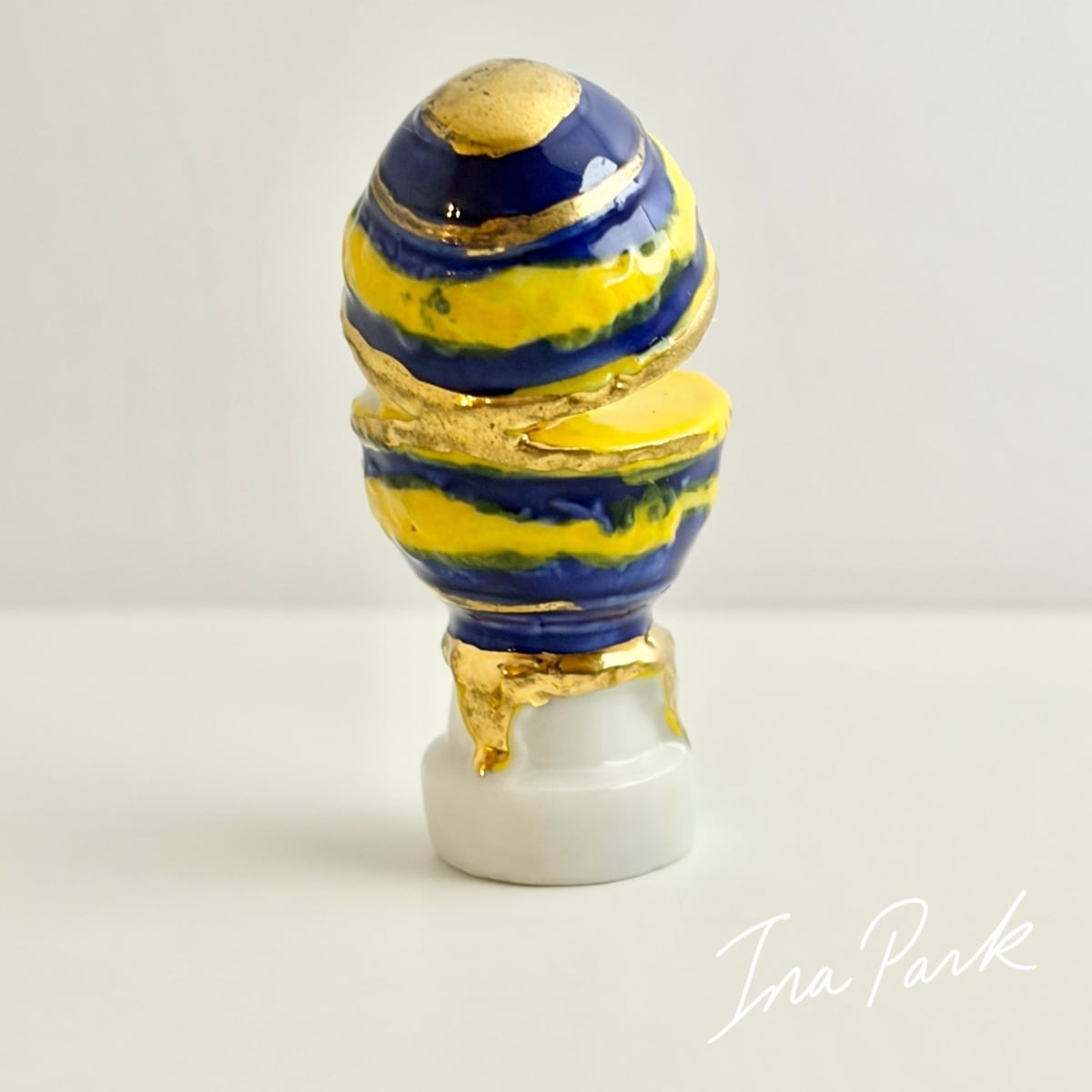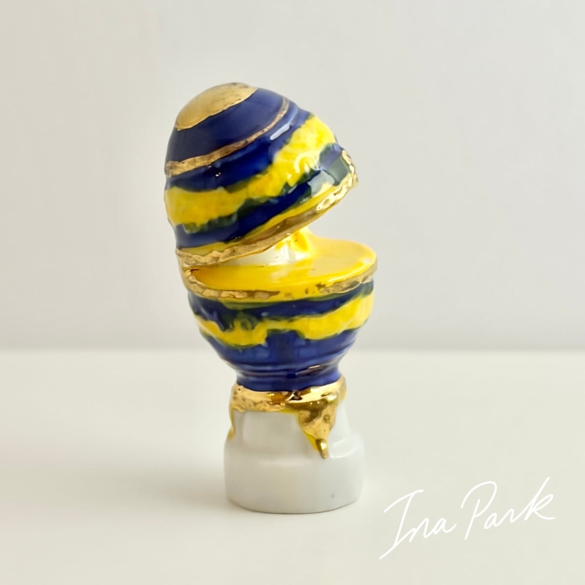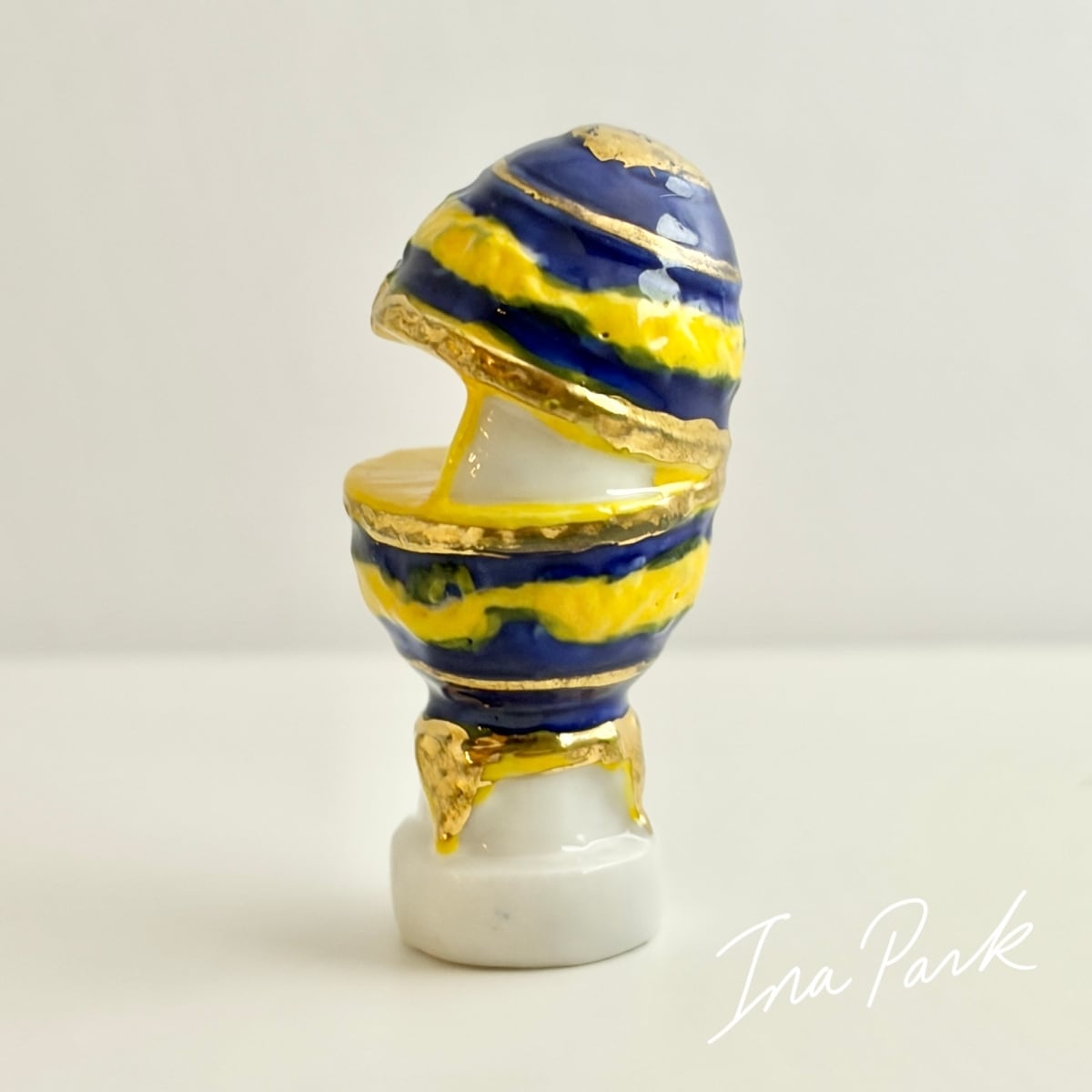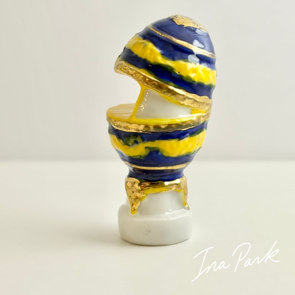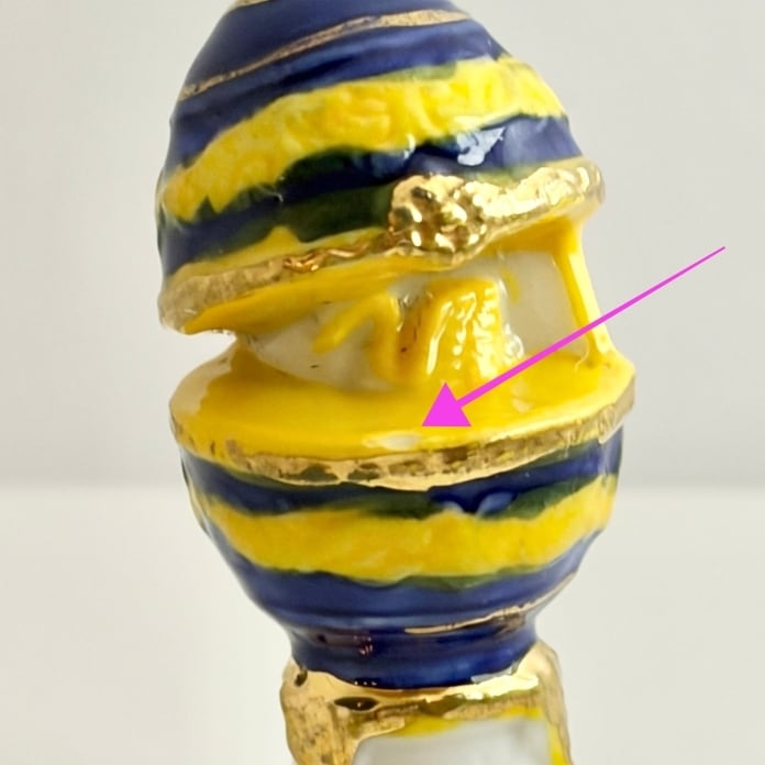 実はパカっと開いた中に、白鳥が入っている面白い装飾卵。金彩入り。
