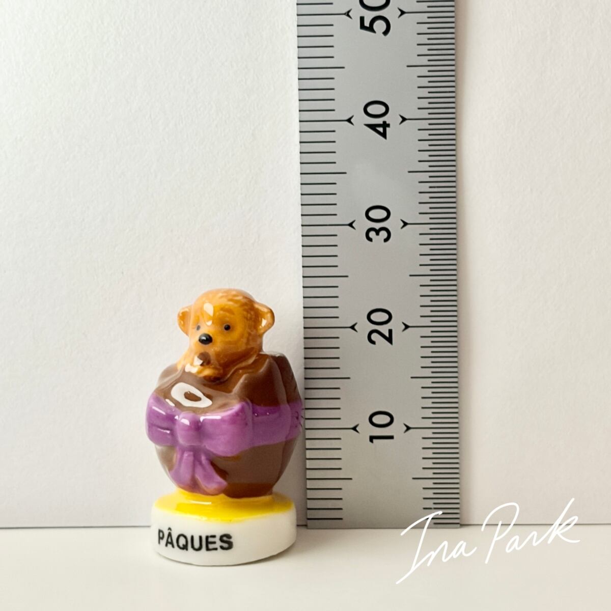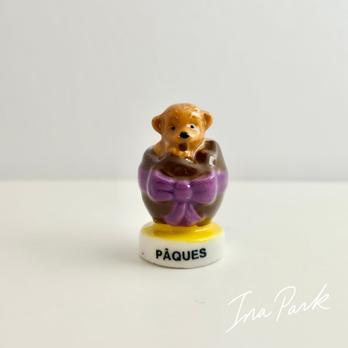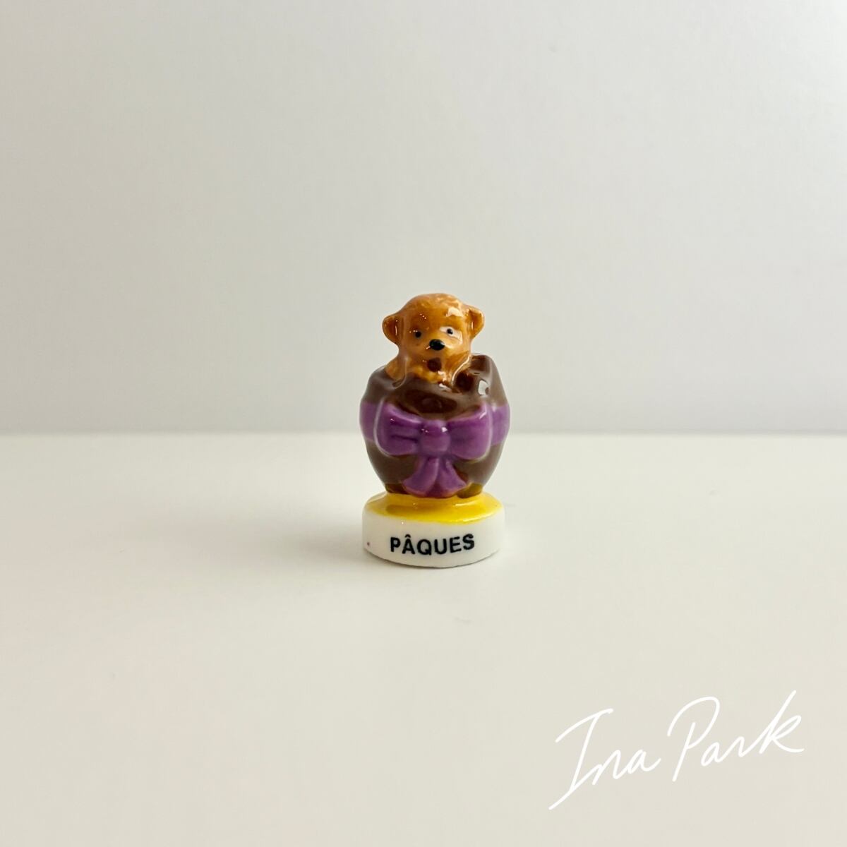 チョコレートの卵の中のテディベア イースター フェーヴ フェーブ フランス製 ミニチュア 陶器 雑貨 置物