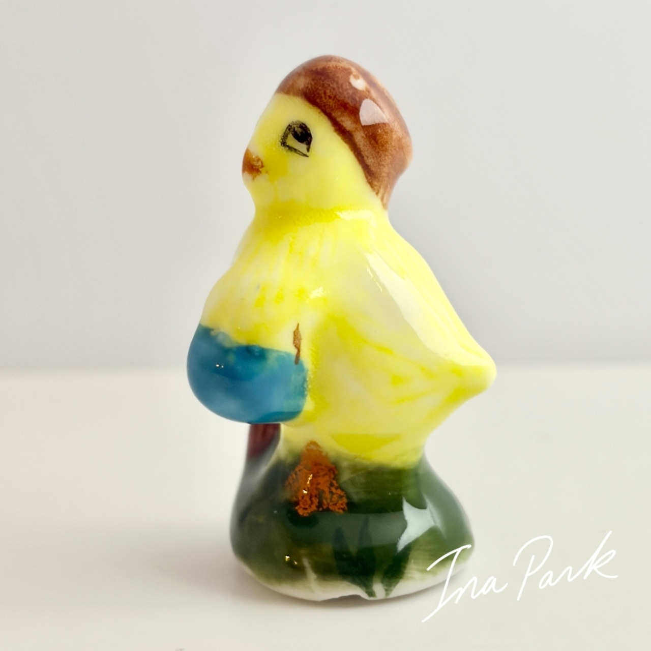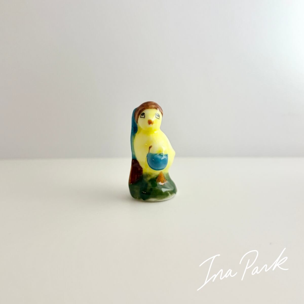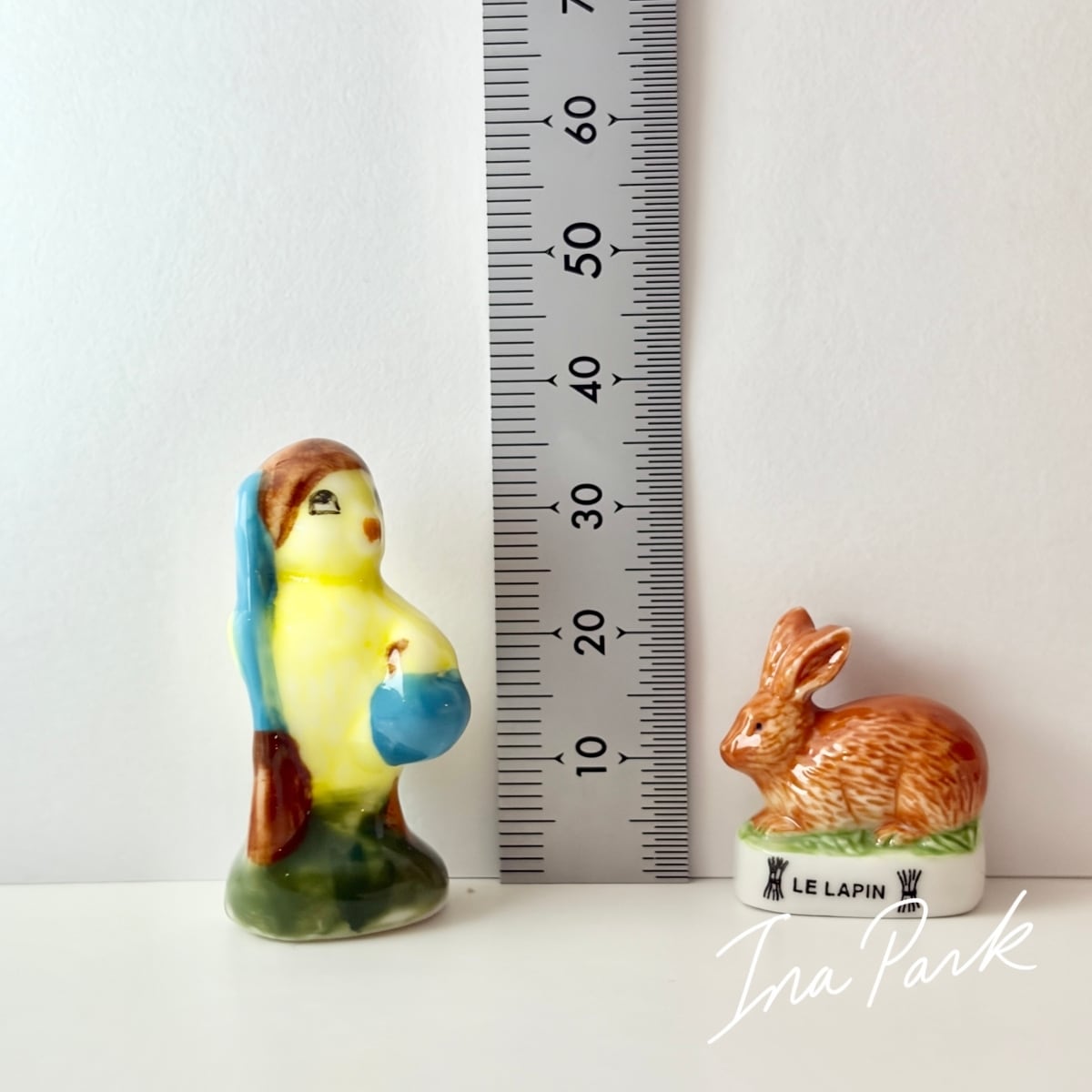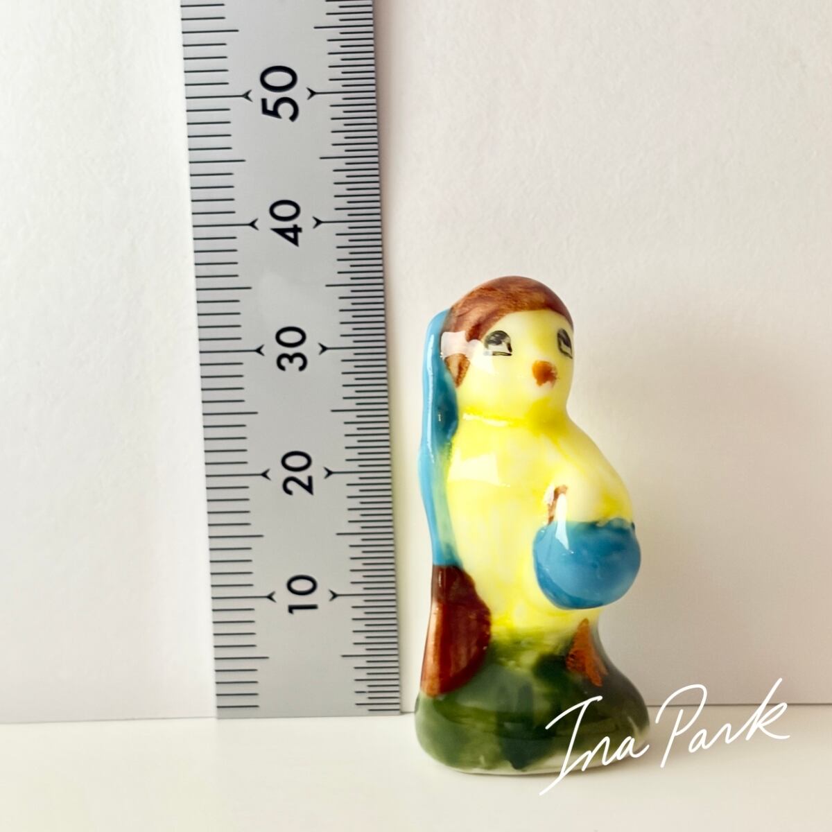 1994 ヴィンテージ 掃除中のヒヨコ ARGYUDAL イースター フェーヴ スジェ フェーブ フランス製 ミニチュア 陶器 雑貨 置物