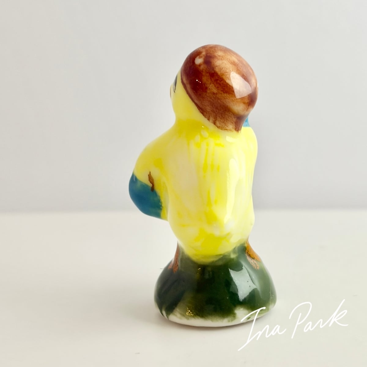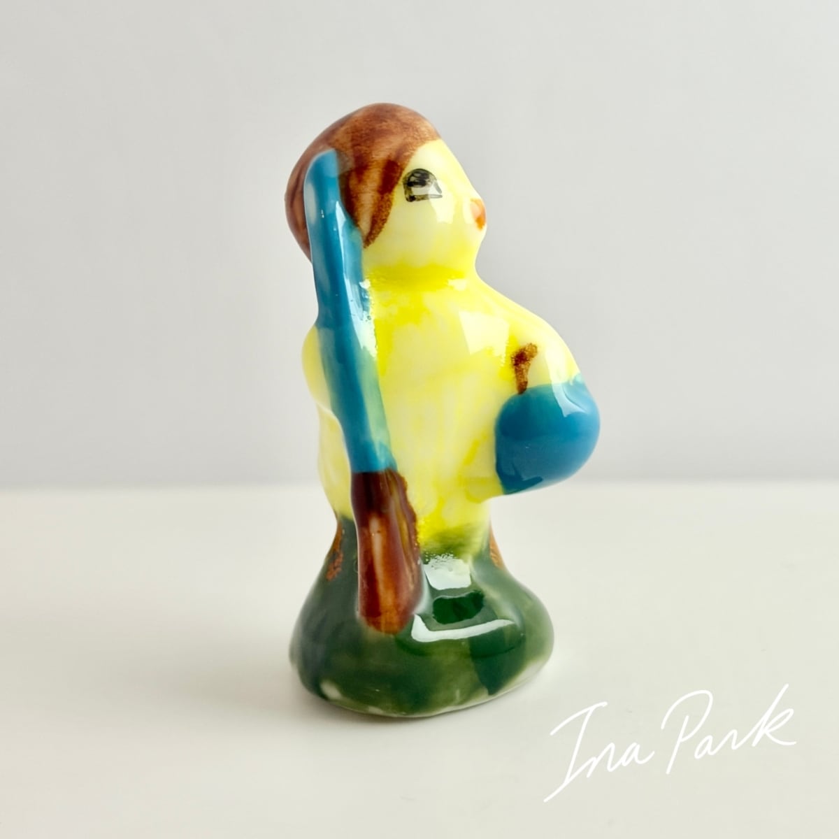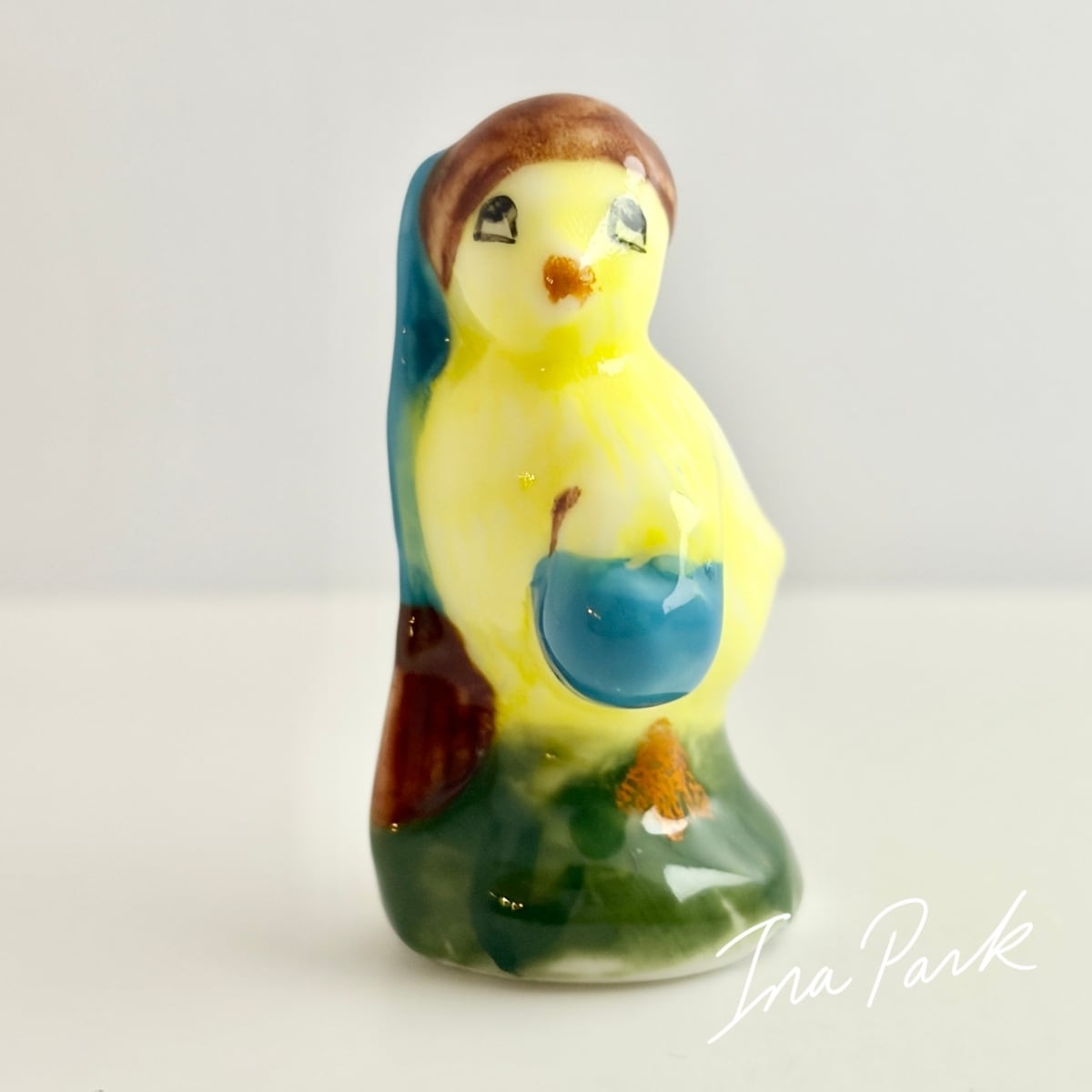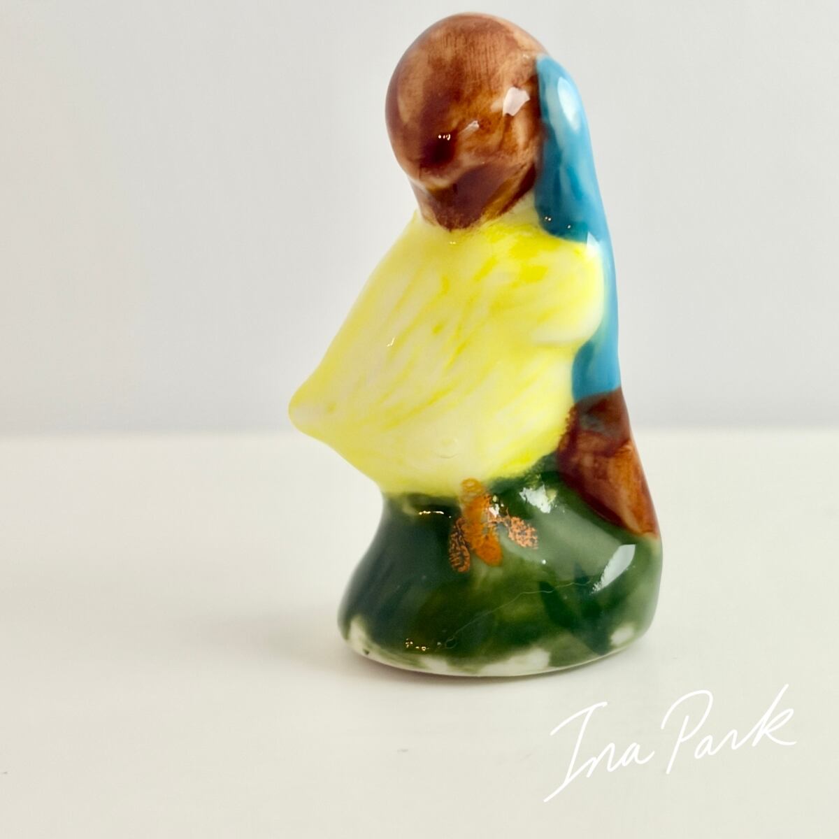 1994 ヴィンテージ 掃除中のヒヨコ ARGYUDAL イースター フェーヴ スジェ フェーブ フランス製 ミニチュア 陶器 雑貨 置物
