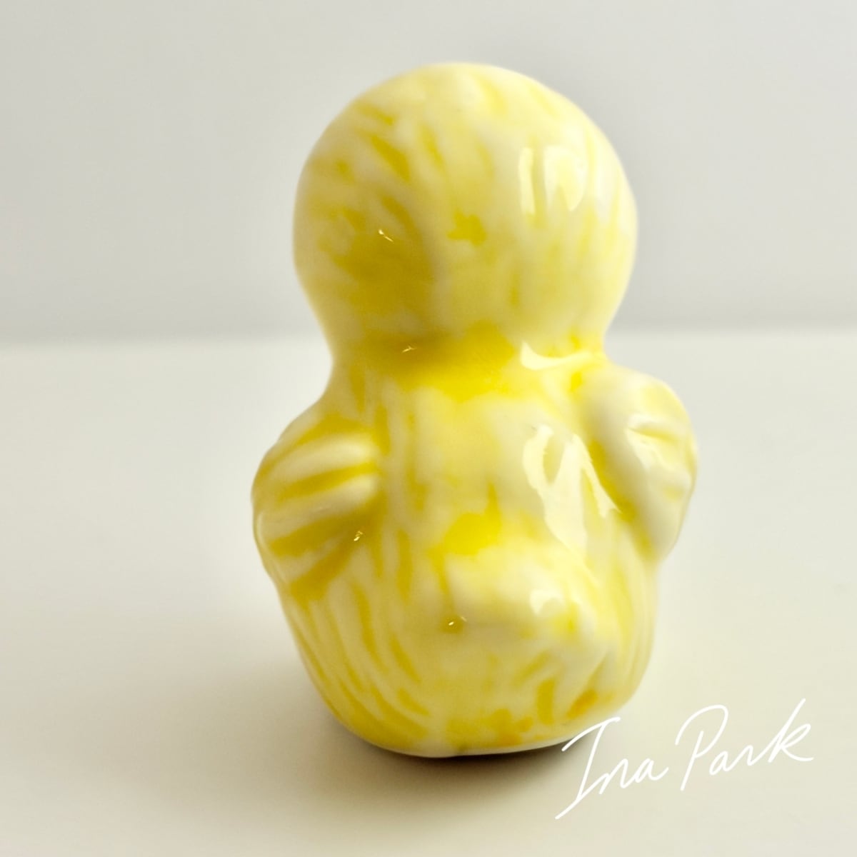 顔つき、艶のある丸いフォルムに、丁寧造形された毛並みなど、本当の雛のように手に乗せて愛でたくなるヒヨコです。