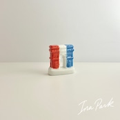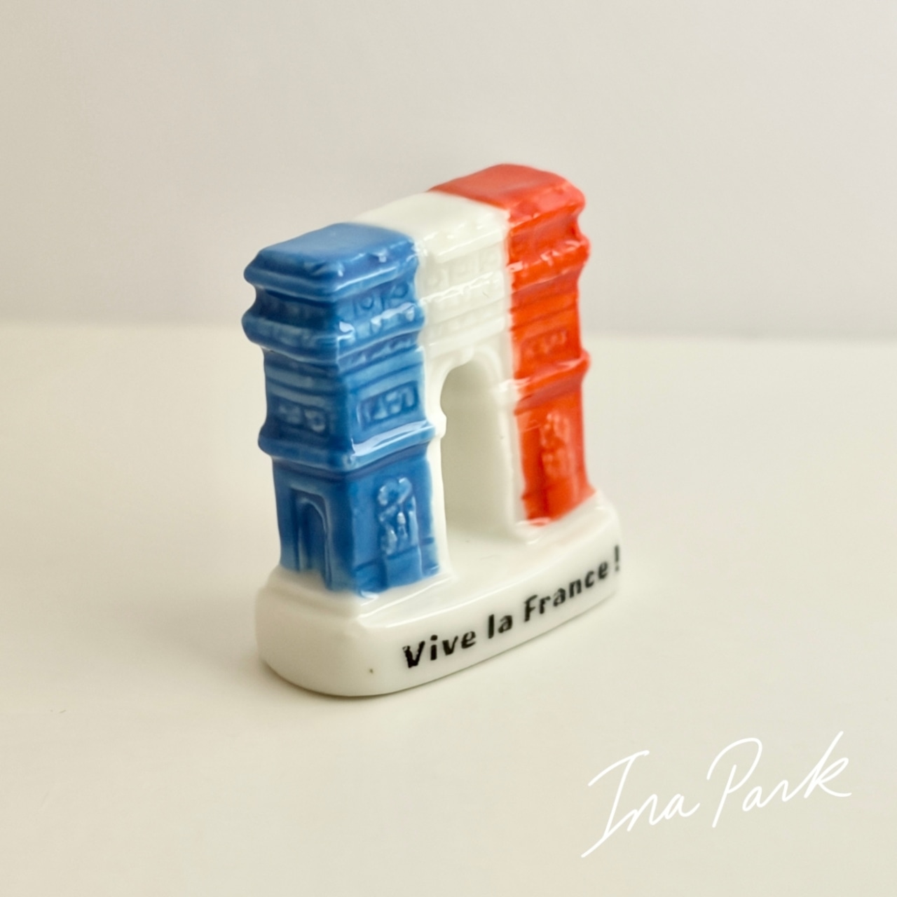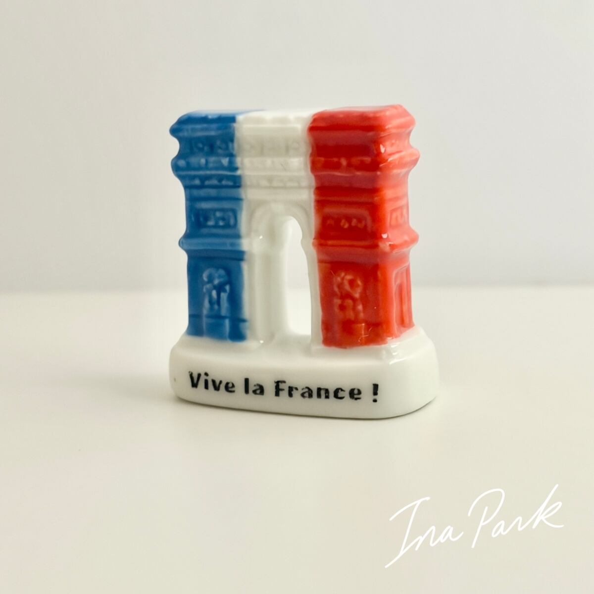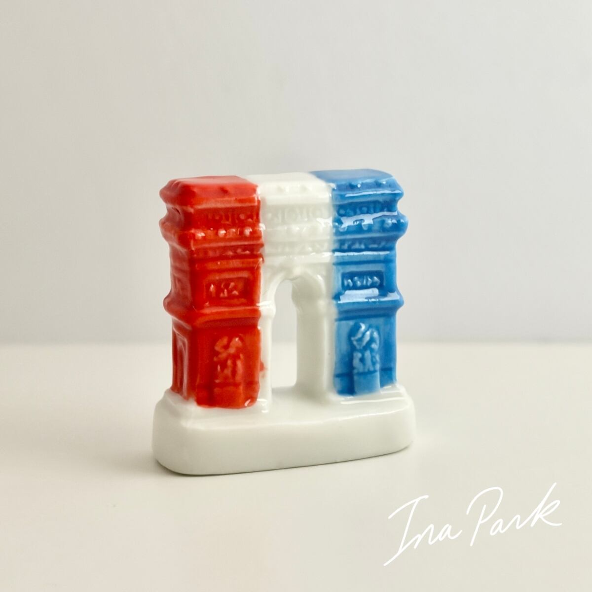 トリコロールカラーの凱旋門のフェーヴ 建物 フェーブ フランス製 ミニチュア 陶器 雑貨 置物
