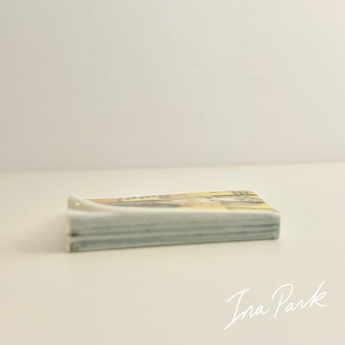 まるでミニサイズの雑誌。精巧なデザインです。世界観を濃くしている裏表紙広告にもご注目下さい。なんとこちらの雑誌フェーブ、自立します(!)