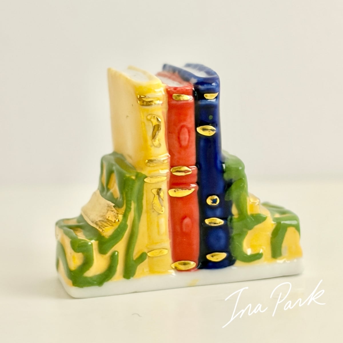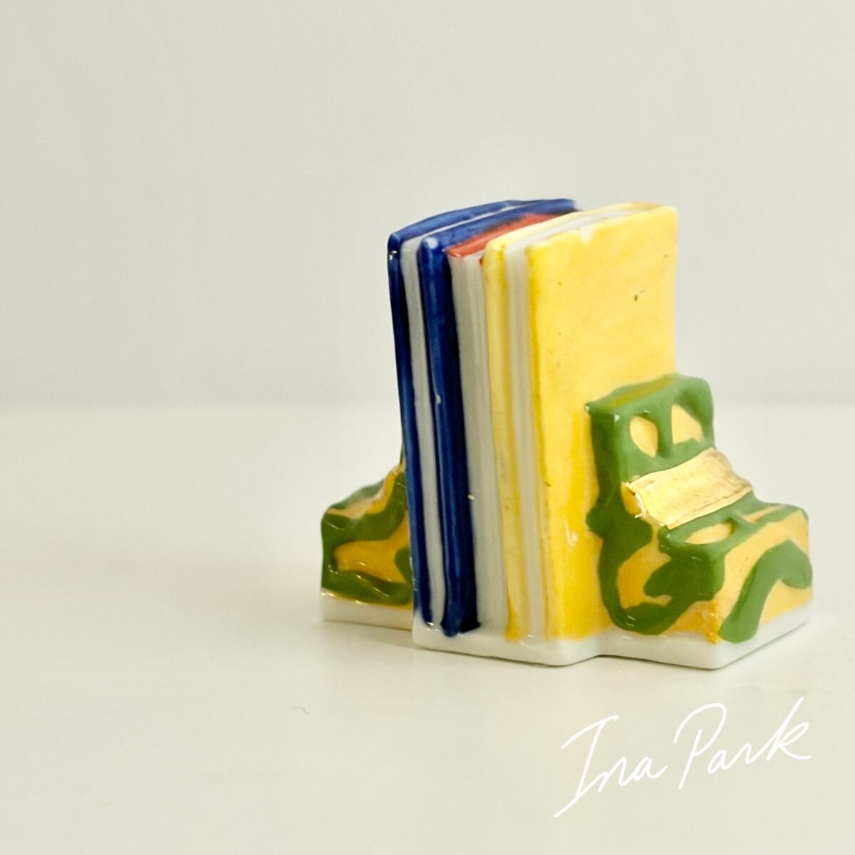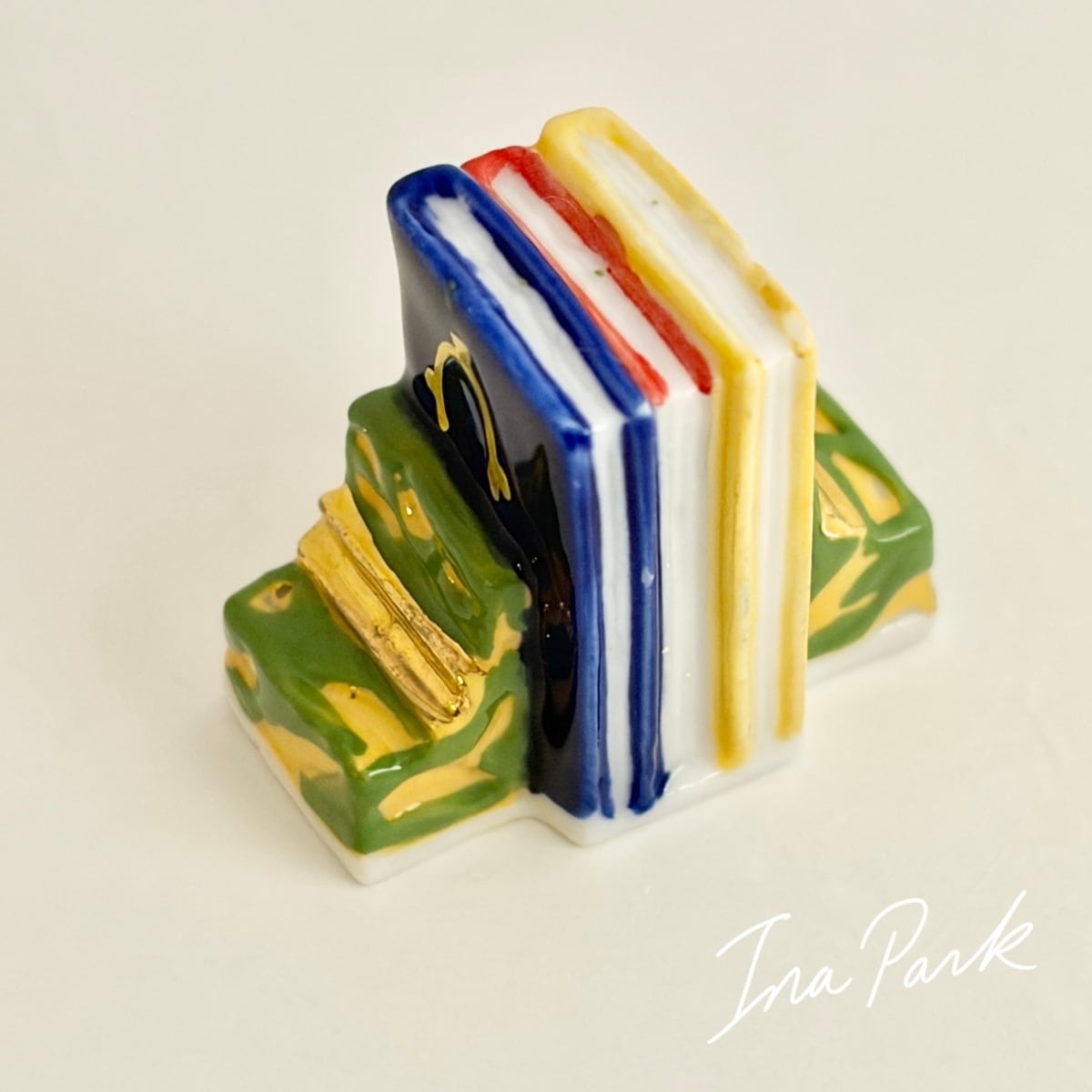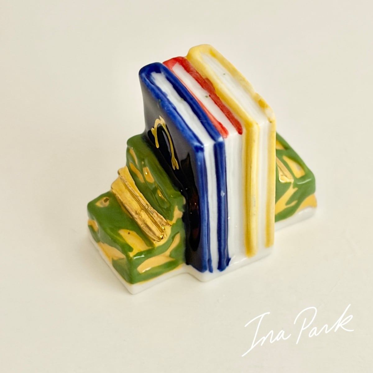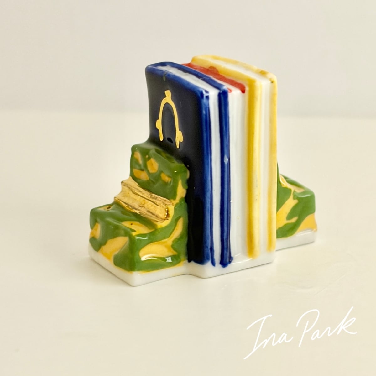 【アウトレット価格】ブックエンドと本3冊のフェーヴ フェーブ フランス製 ミニチュア 陶器 雑貨 置物