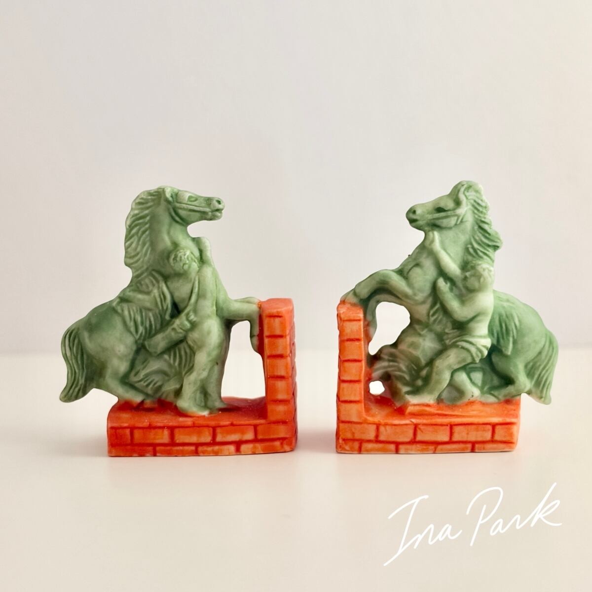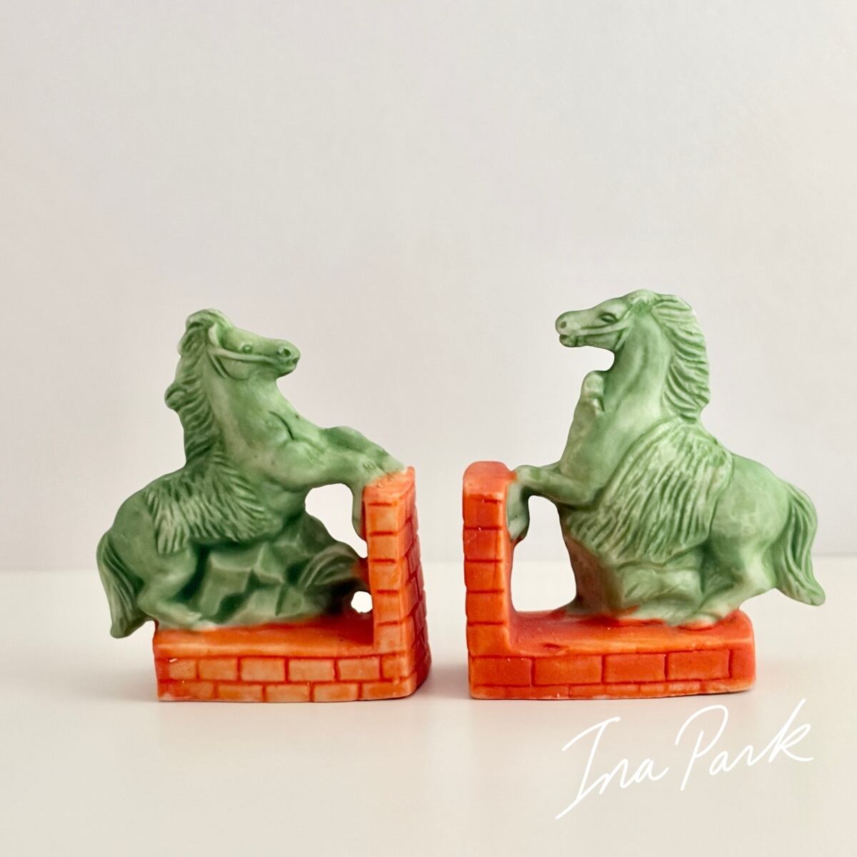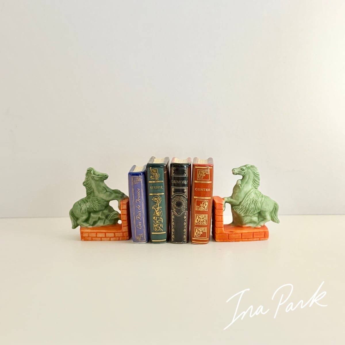 馬のブックエンド 2点セット 本のフェーヴ フェーブ フランス製 ミニチュア 陶器 雑貨 置物