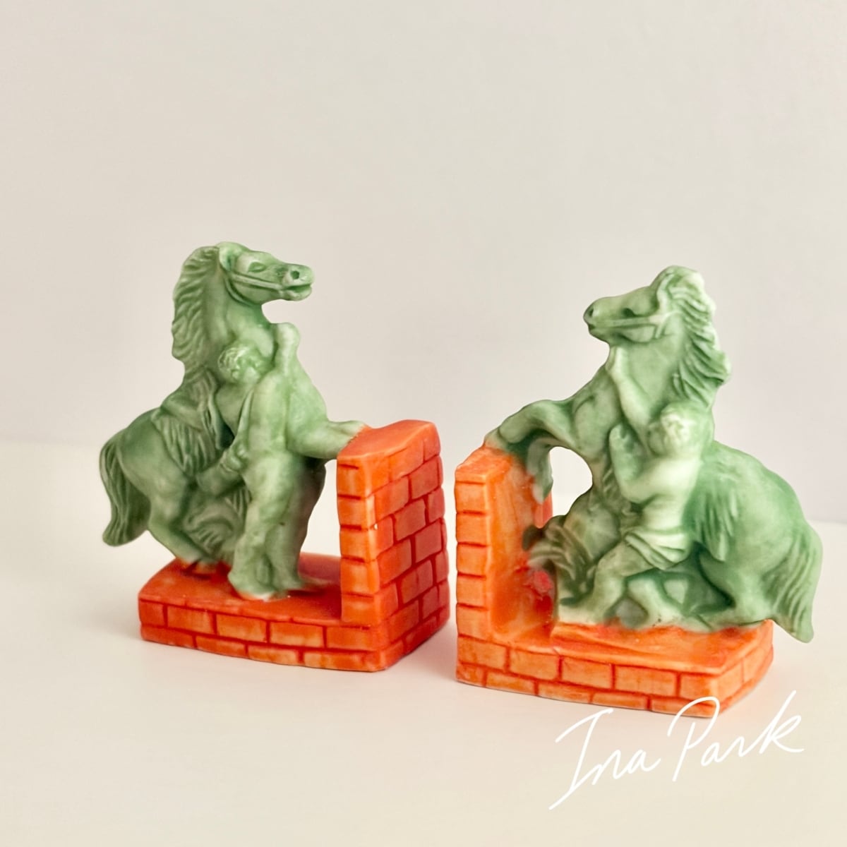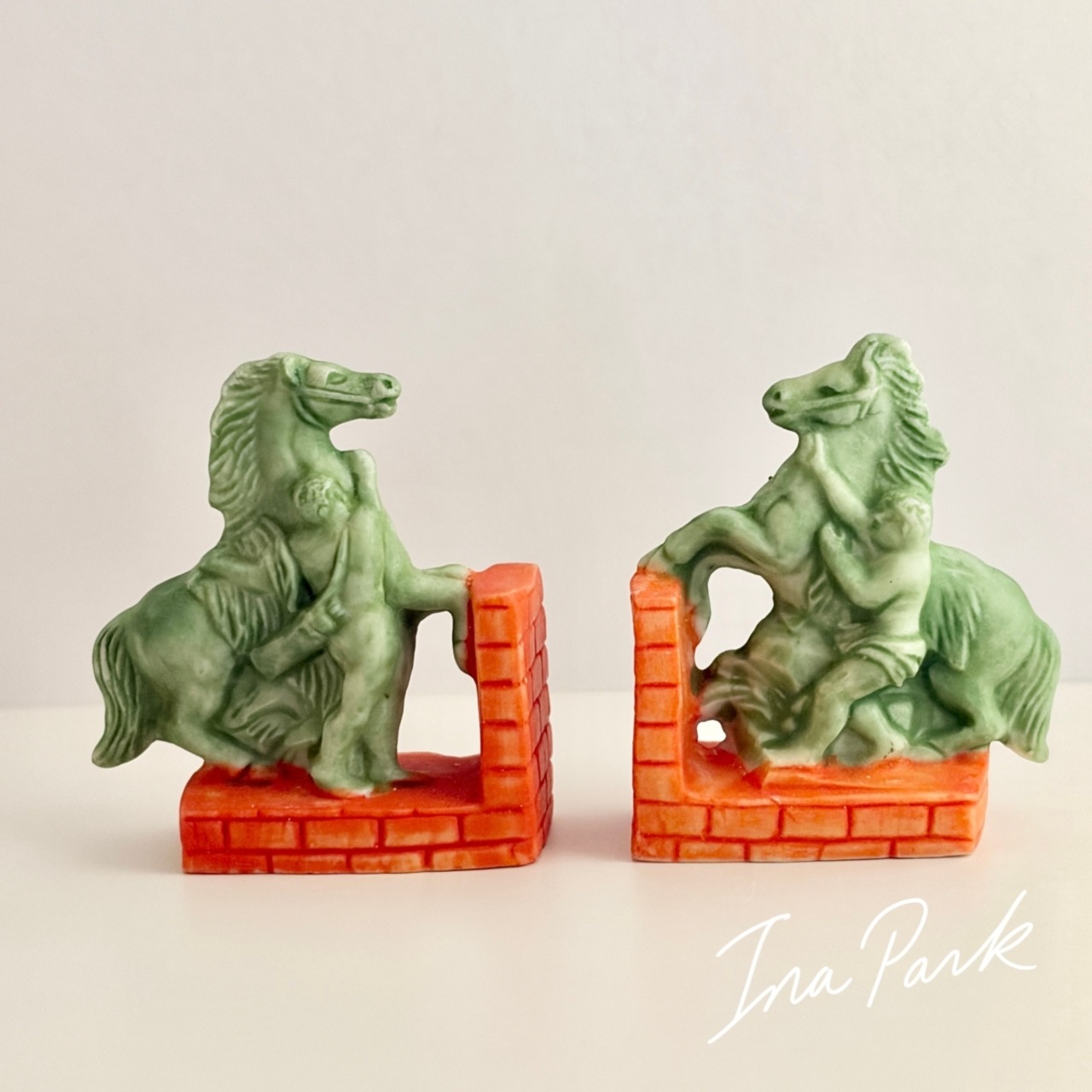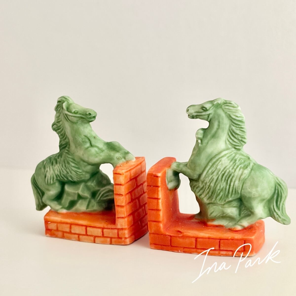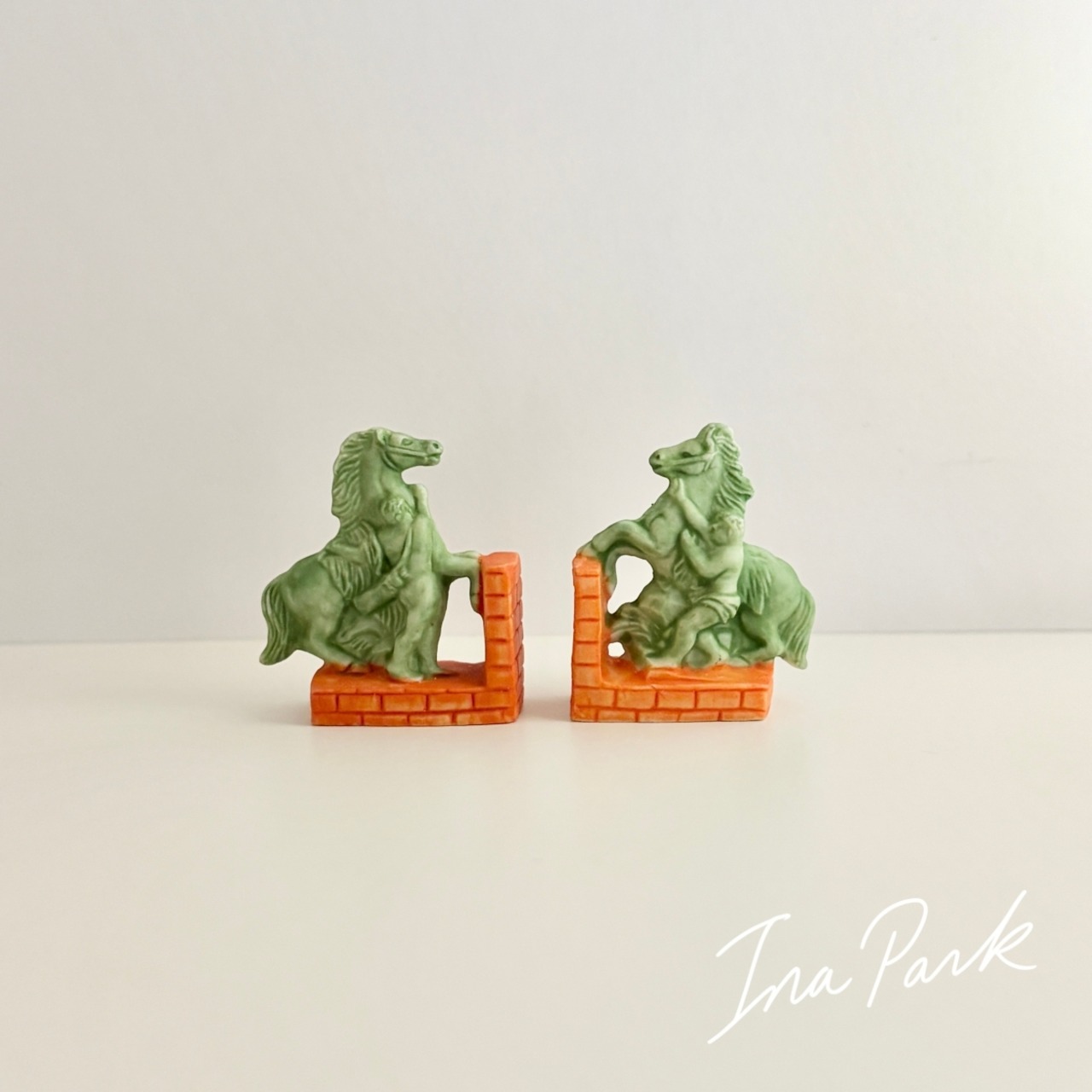 馬のブックエンド 2点セット 本のフェーヴ フェーブ フランス製 ミニチュア 陶器 雑貨 置物
