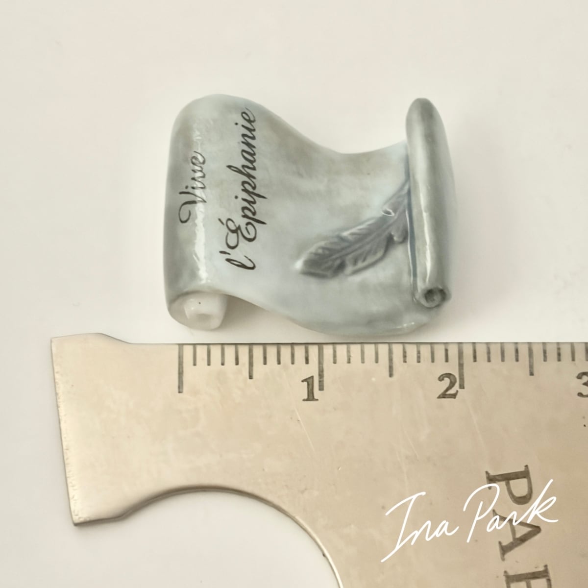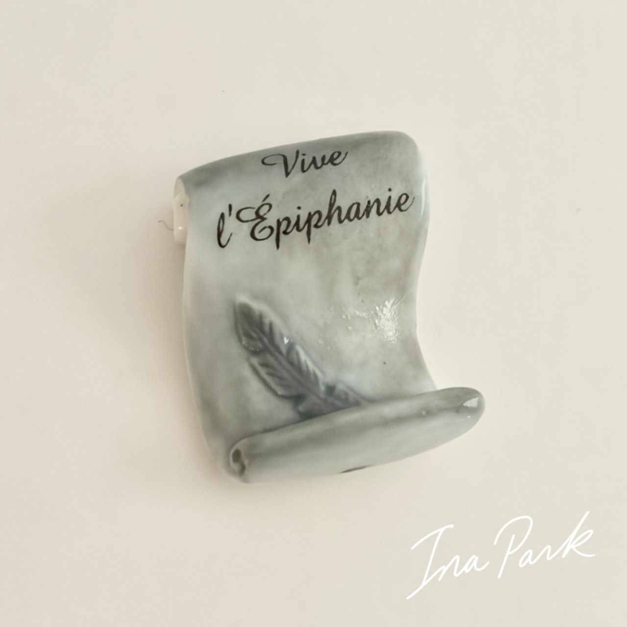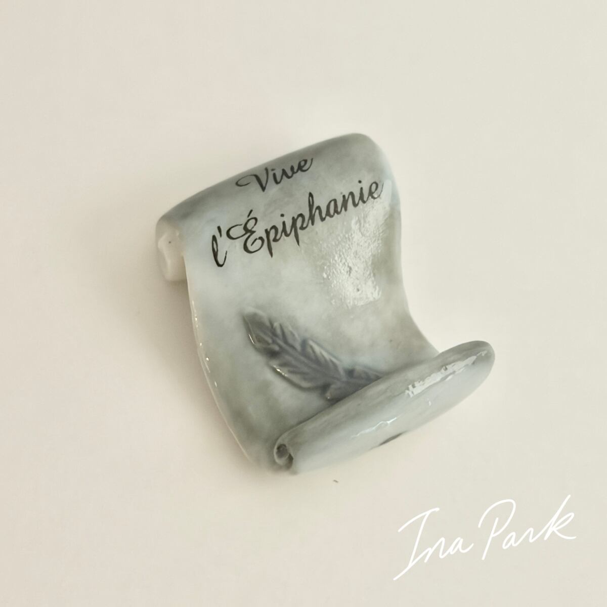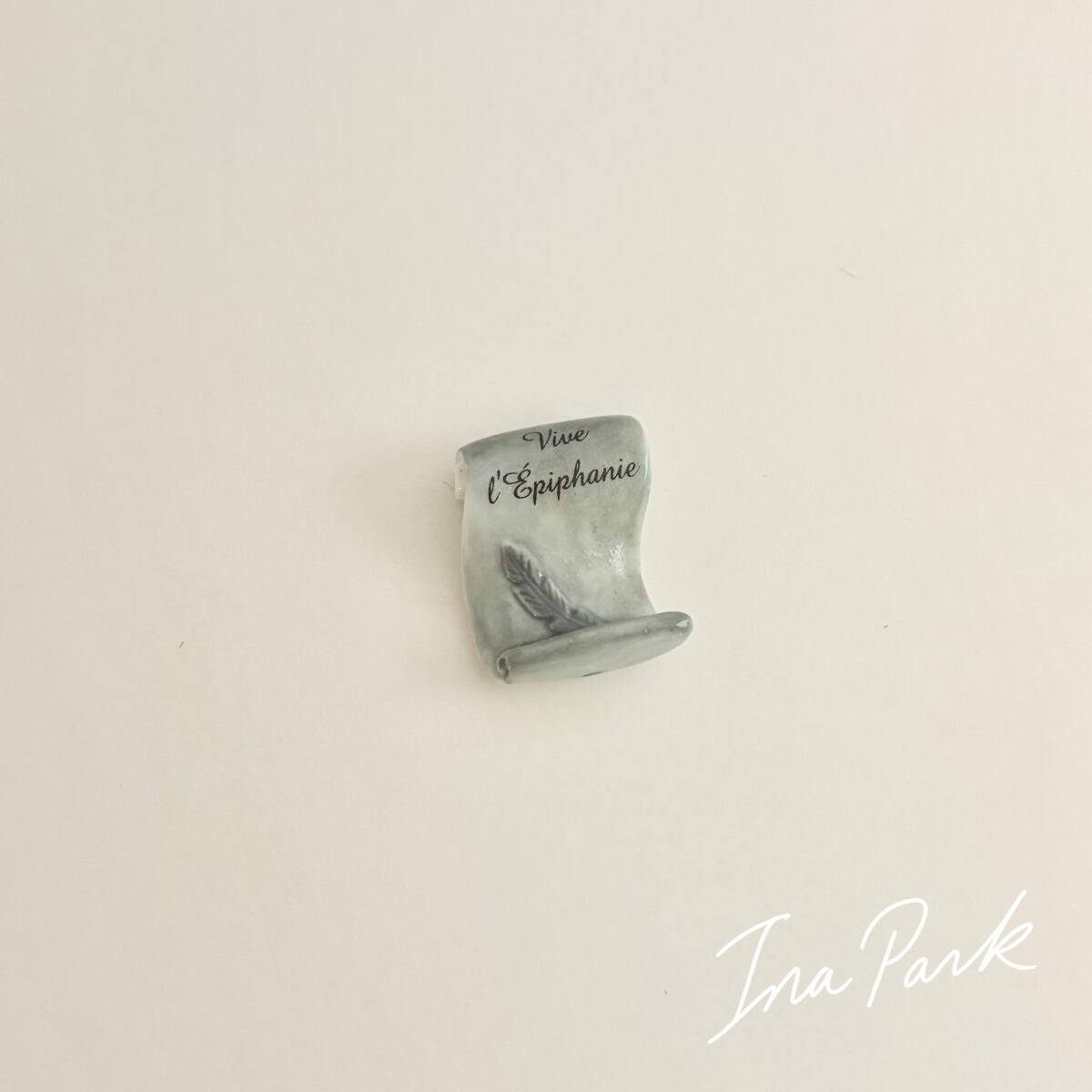 羊皮紙と羽ペン 本のフェーヴ フェーブ フランス製 ミニチュア 陶器 雑貨 置物