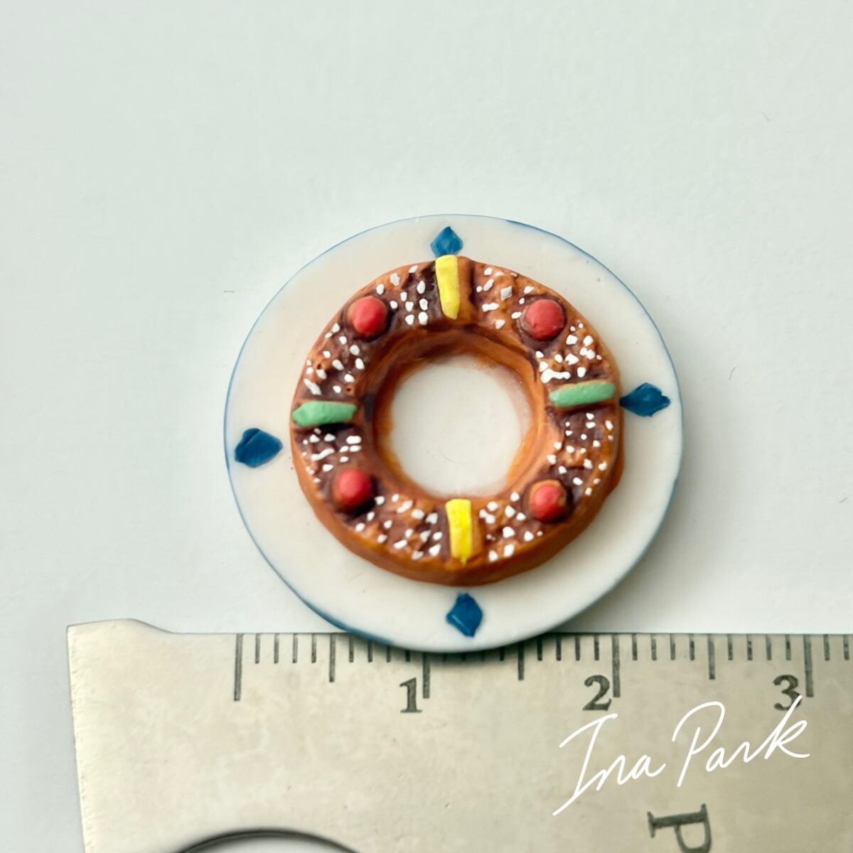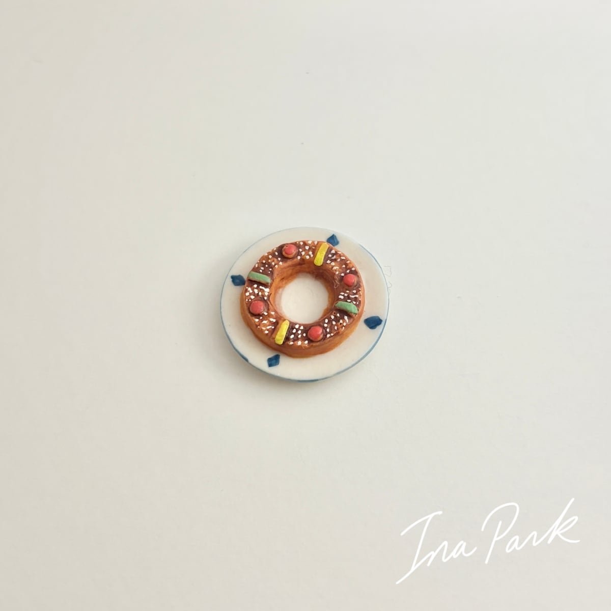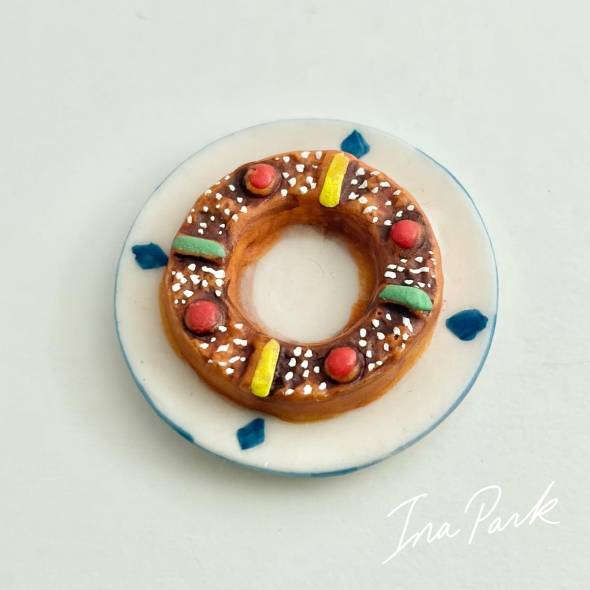 フランス製 お皿に乗ったブリオッシュ・デ・ロワ 王冠 フェーブ フェーヴ ミニチュア 陶器 feve