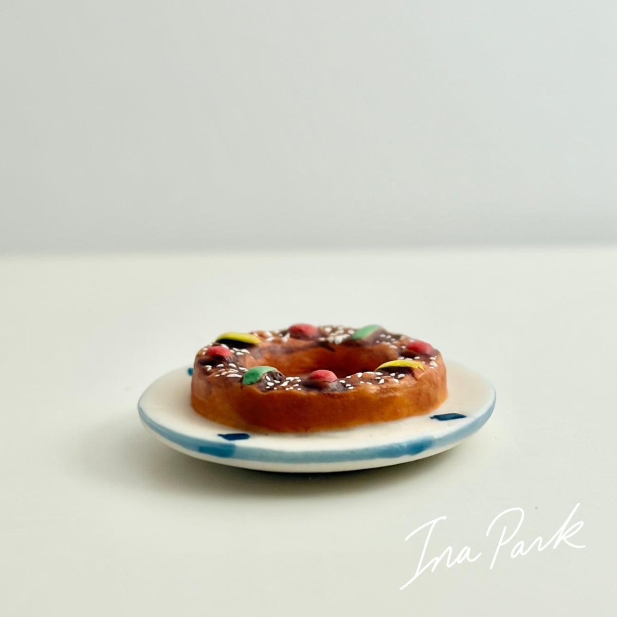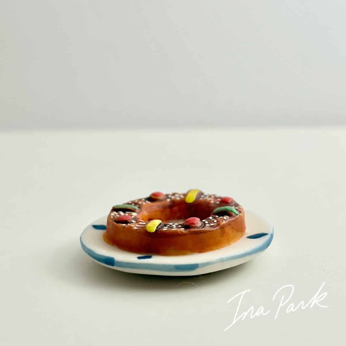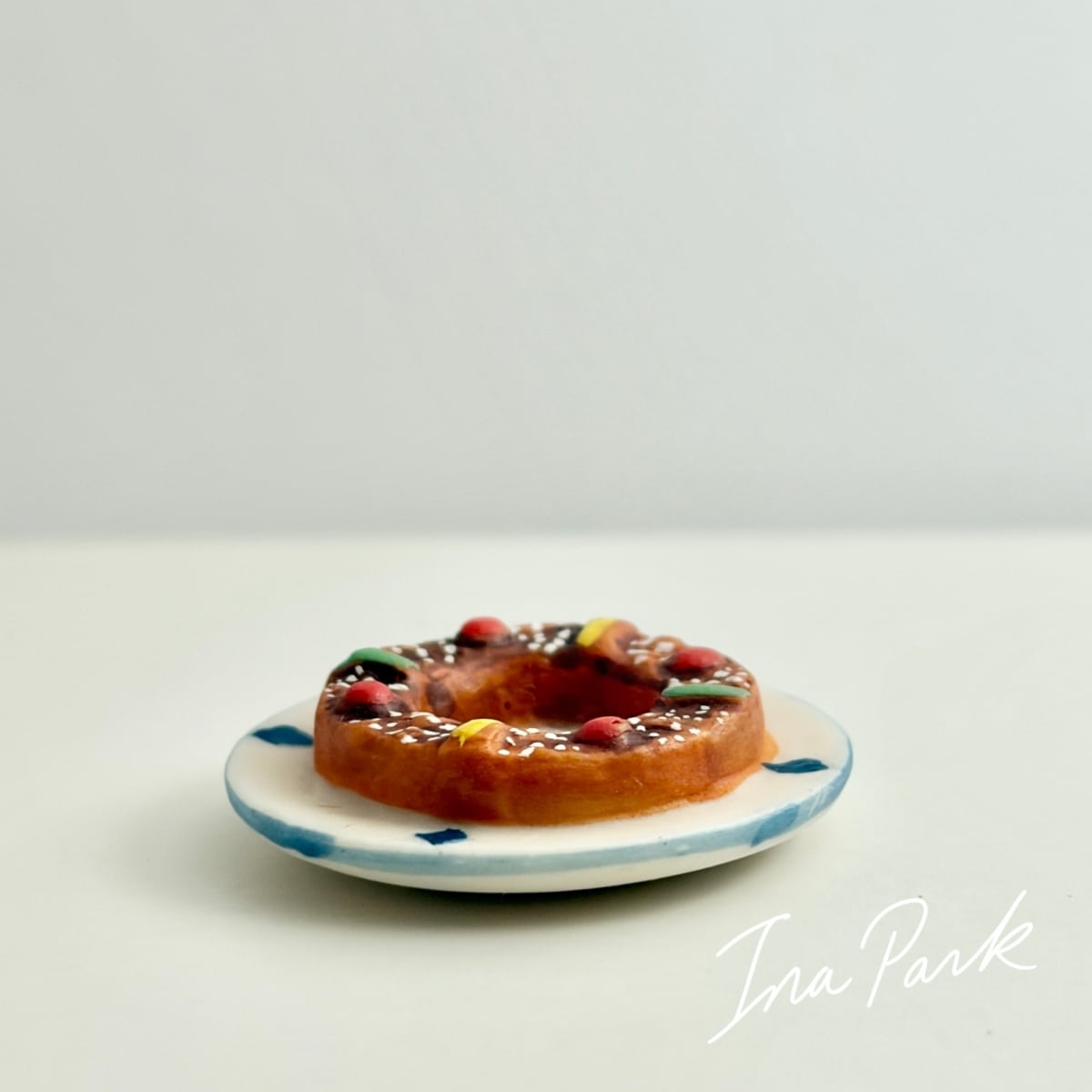 フランス製 お皿に乗ったブリオッシュ・デ・ロワ 王冠 フェーブ フェーヴ ミニチュア 陶器 feve