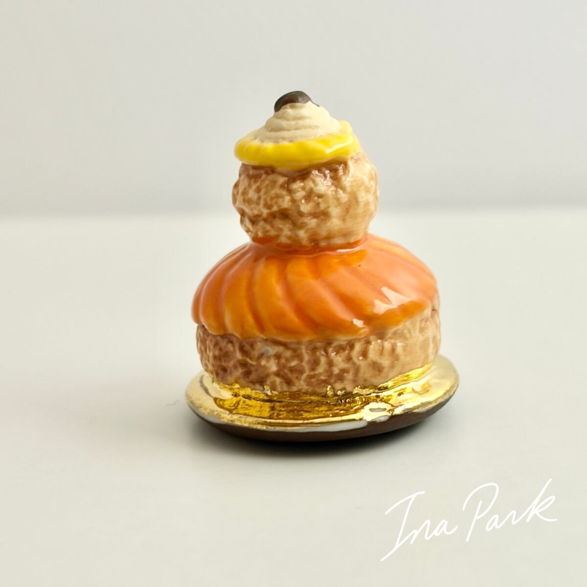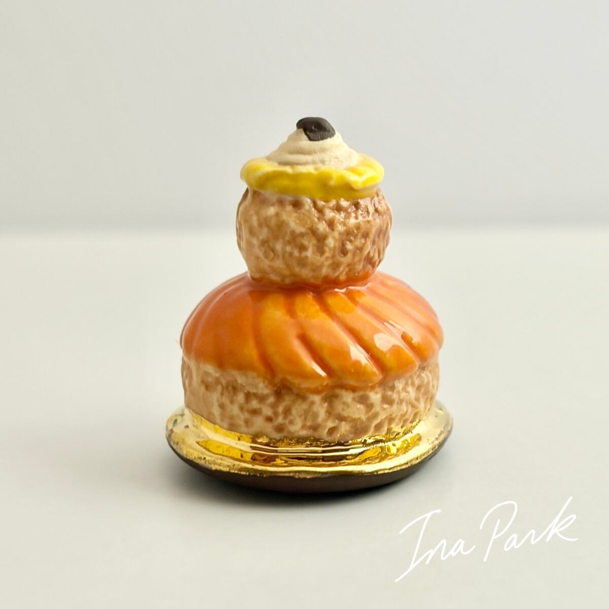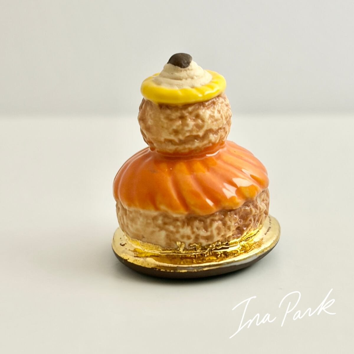 フランスの伝統的なシュー菓子で大小2つのシュークリームを重ね、クリームとグレーズで飾った形が特徴です。修道女(religieuse)の姿に見えることから、この名前が付けられました。