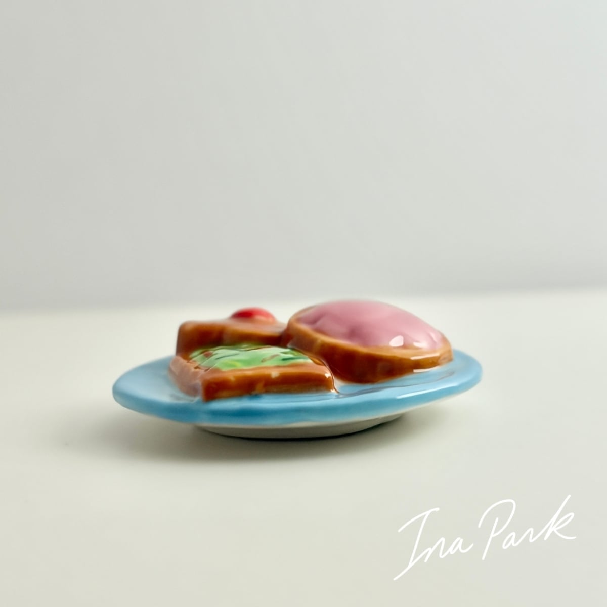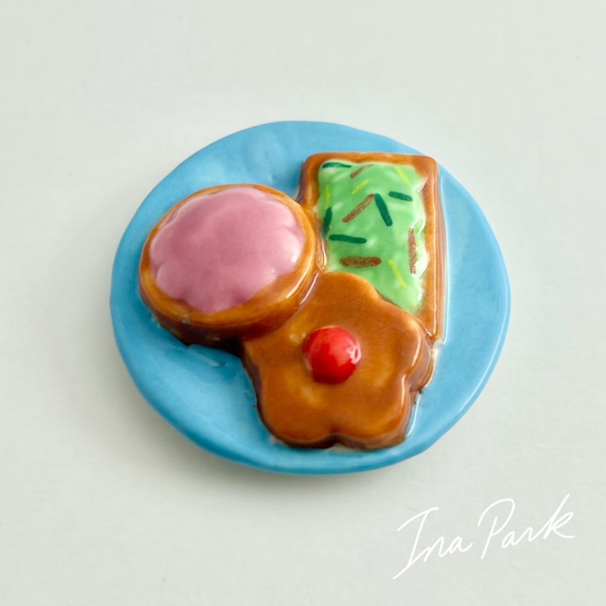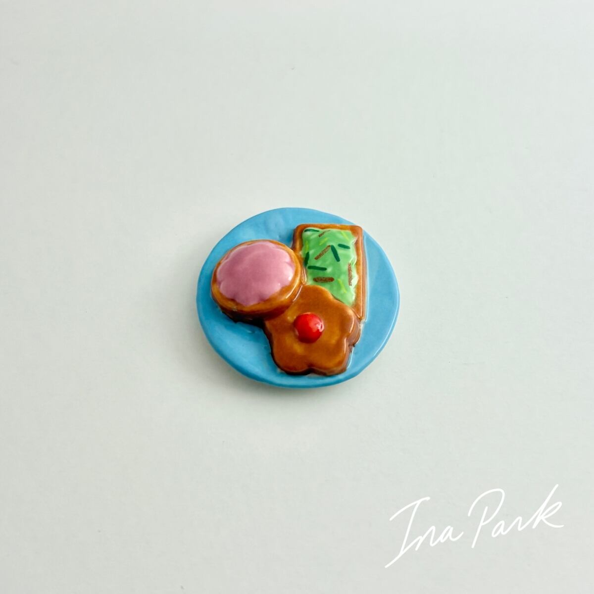 お皿にのったクッキー フェーヴ お菓子のフェーブ フランス製 ミニチュア 陶器 雑貨 置物