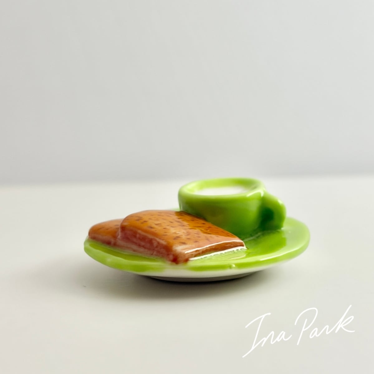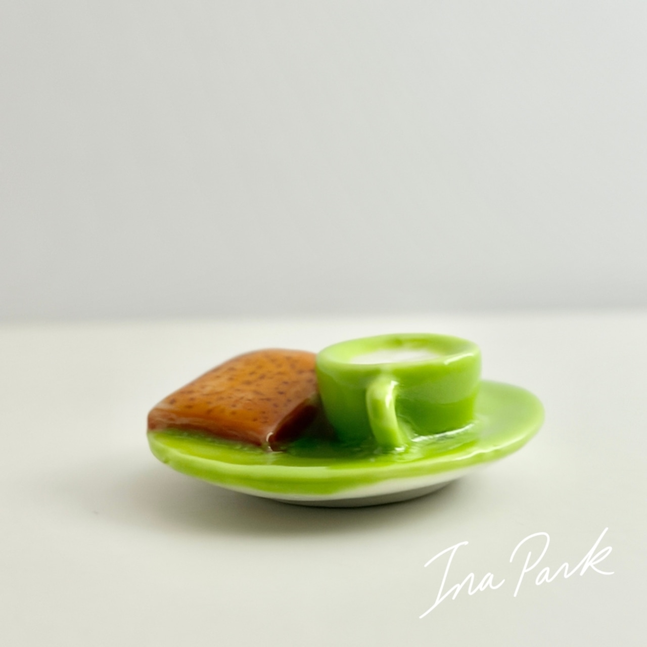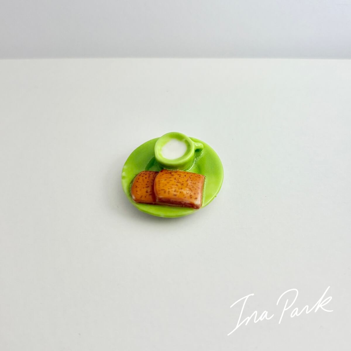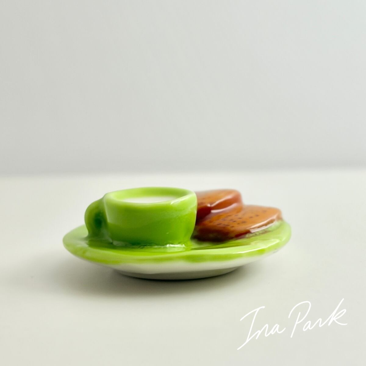 ジンジャーブレッドとミルクのカップ お皿 フェーヴ お菓子のフェーブ フランス製 ミニチュア 陶器 雑貨 置物