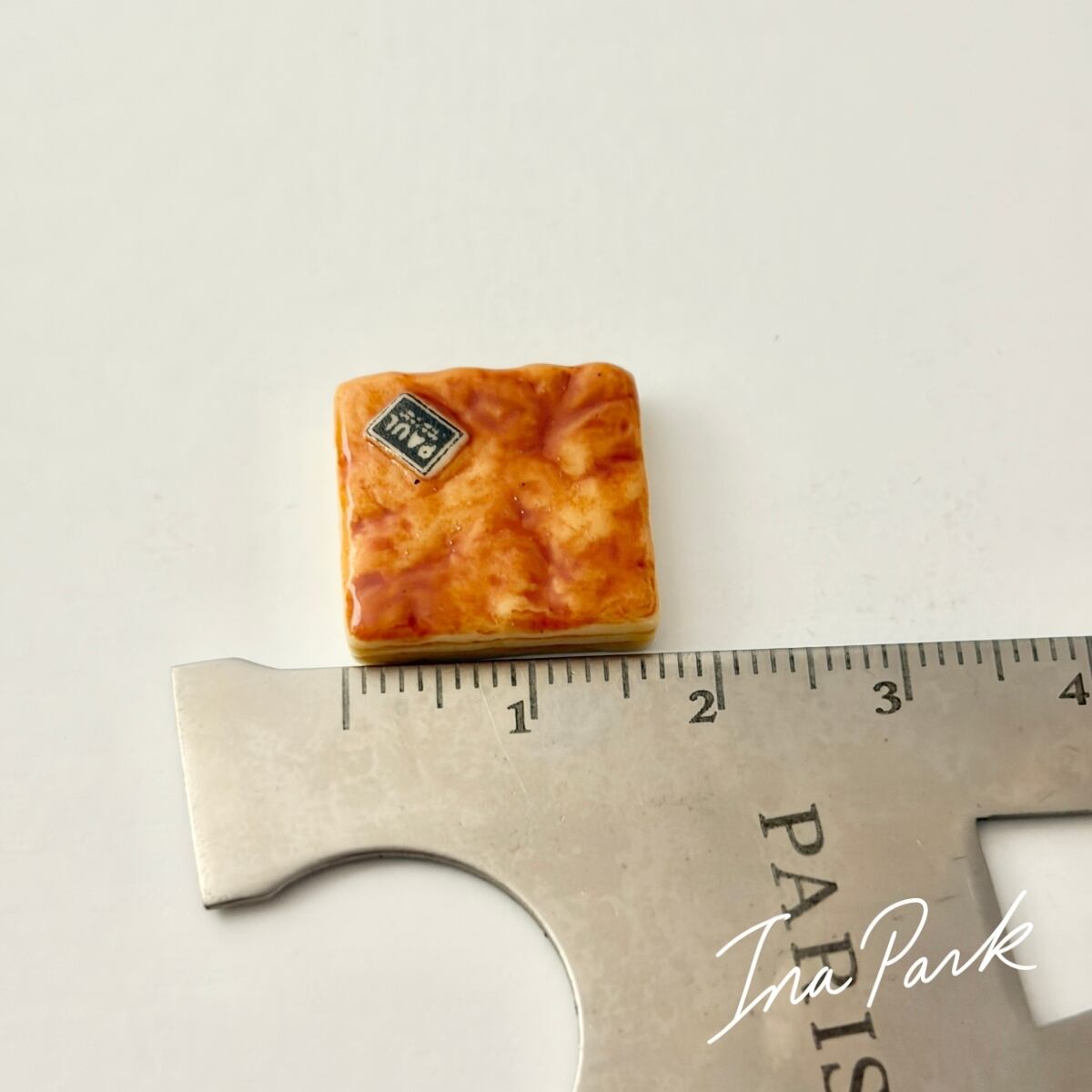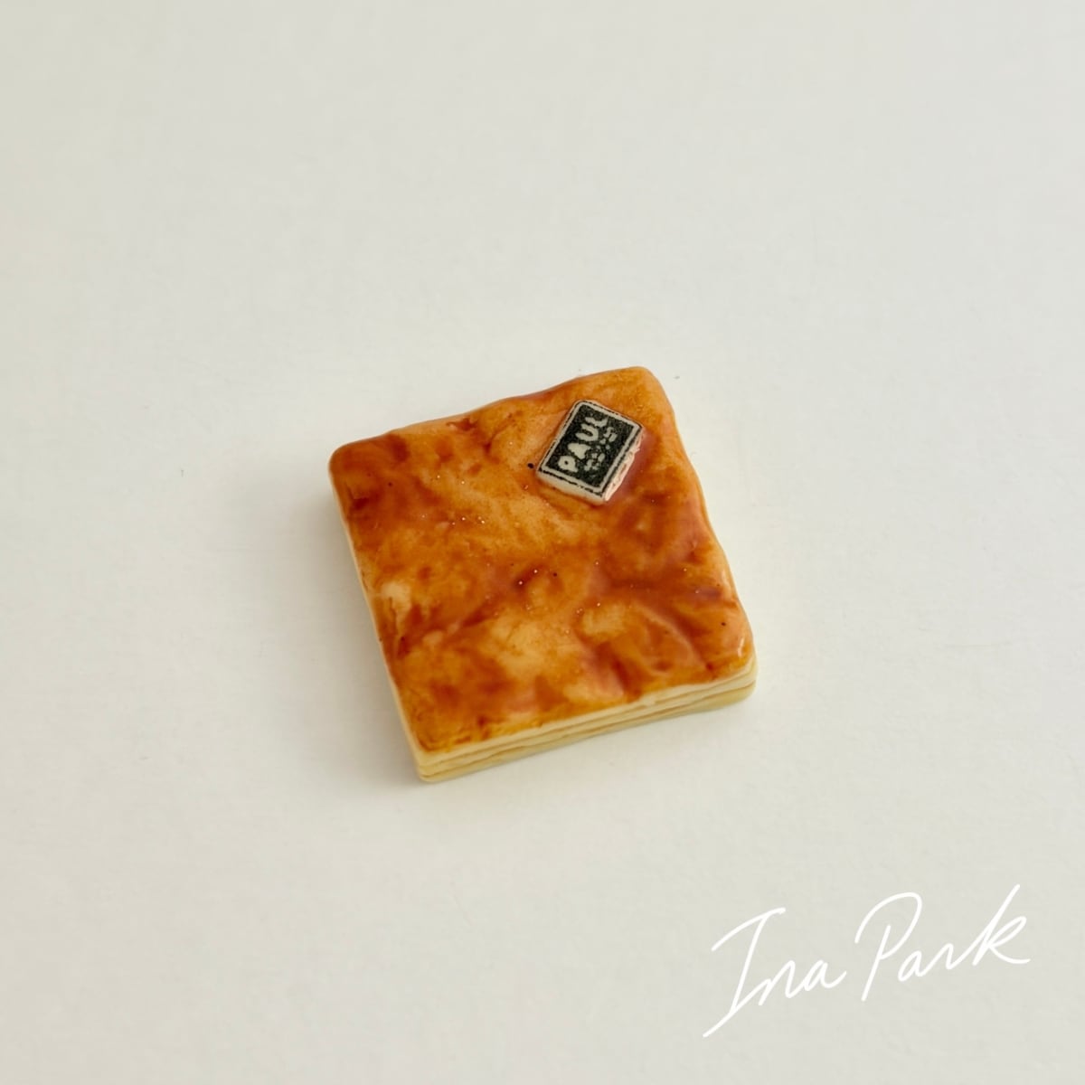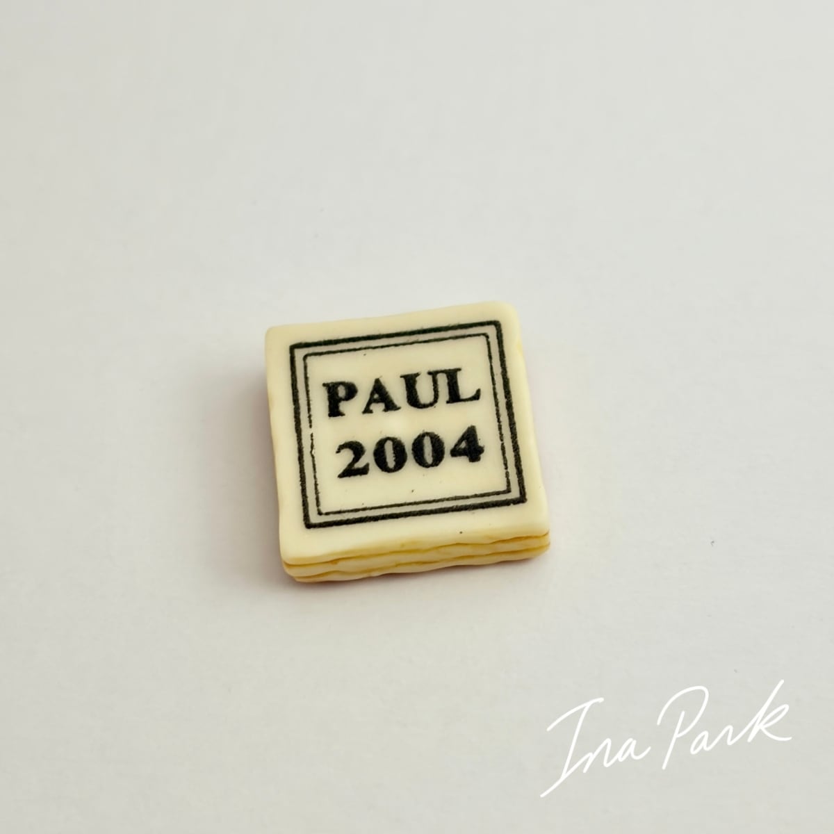 2004 PAUL スクエアケーキ フェーヴ フェーブ フランス製 ミニチュア 陶器 雑貨 置物