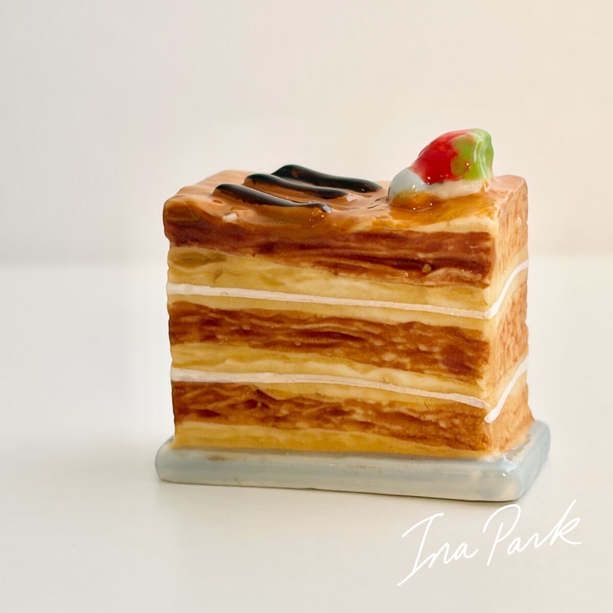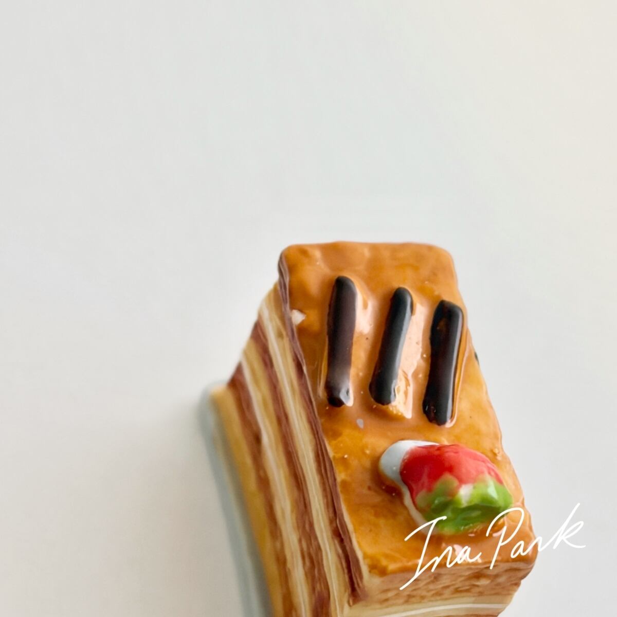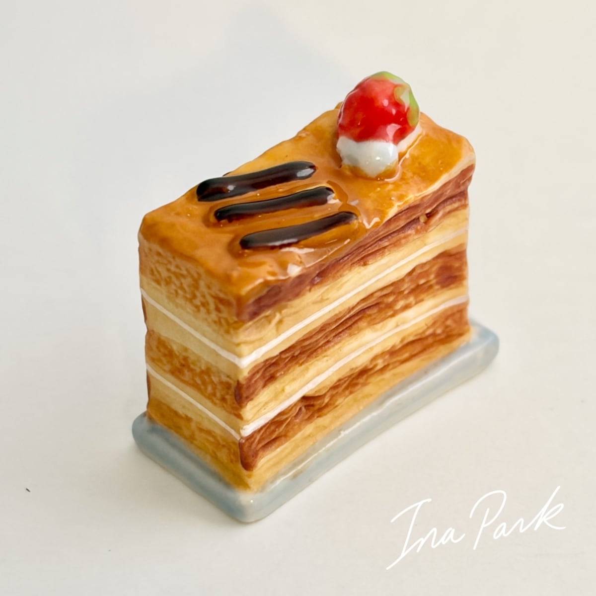 【チップ】苺とショコラのミルフィーユケーキのフェーヴ パティスリー広告フェーブ フランス製 ミニチュア 陶器 雑貨 置物