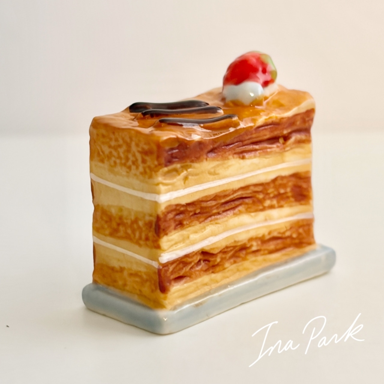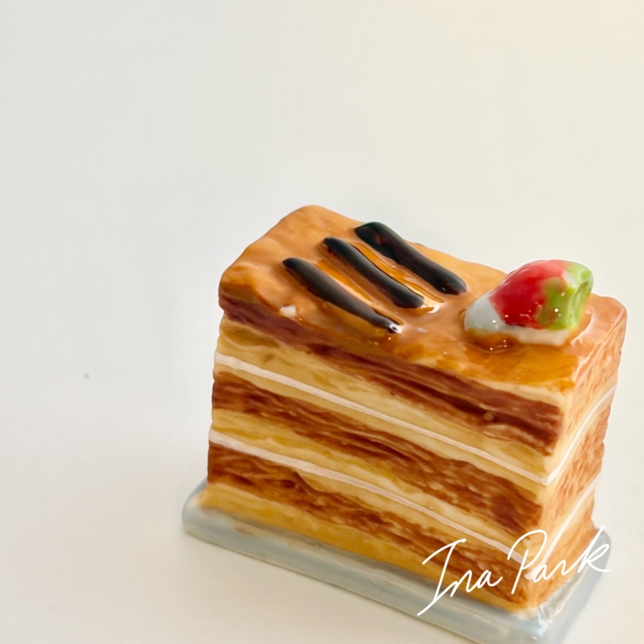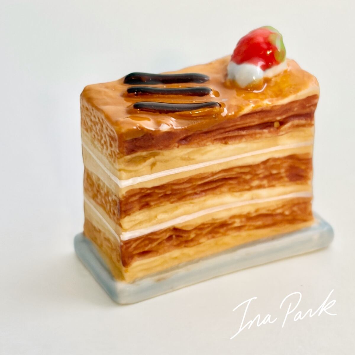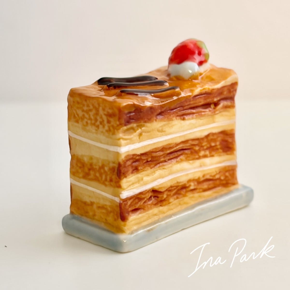 【チップ】苺とショコラのミルフィーユケーキのフェーヴ パティスリー広告フェーブ フランス製 ミニチュア 陶器 雑貨 置物