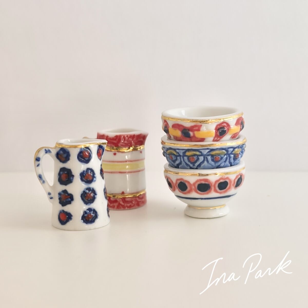 とても可愛いボウルと器。うまく使われた金彩が瀟洒な雰囲気を出しており、おすすめです。