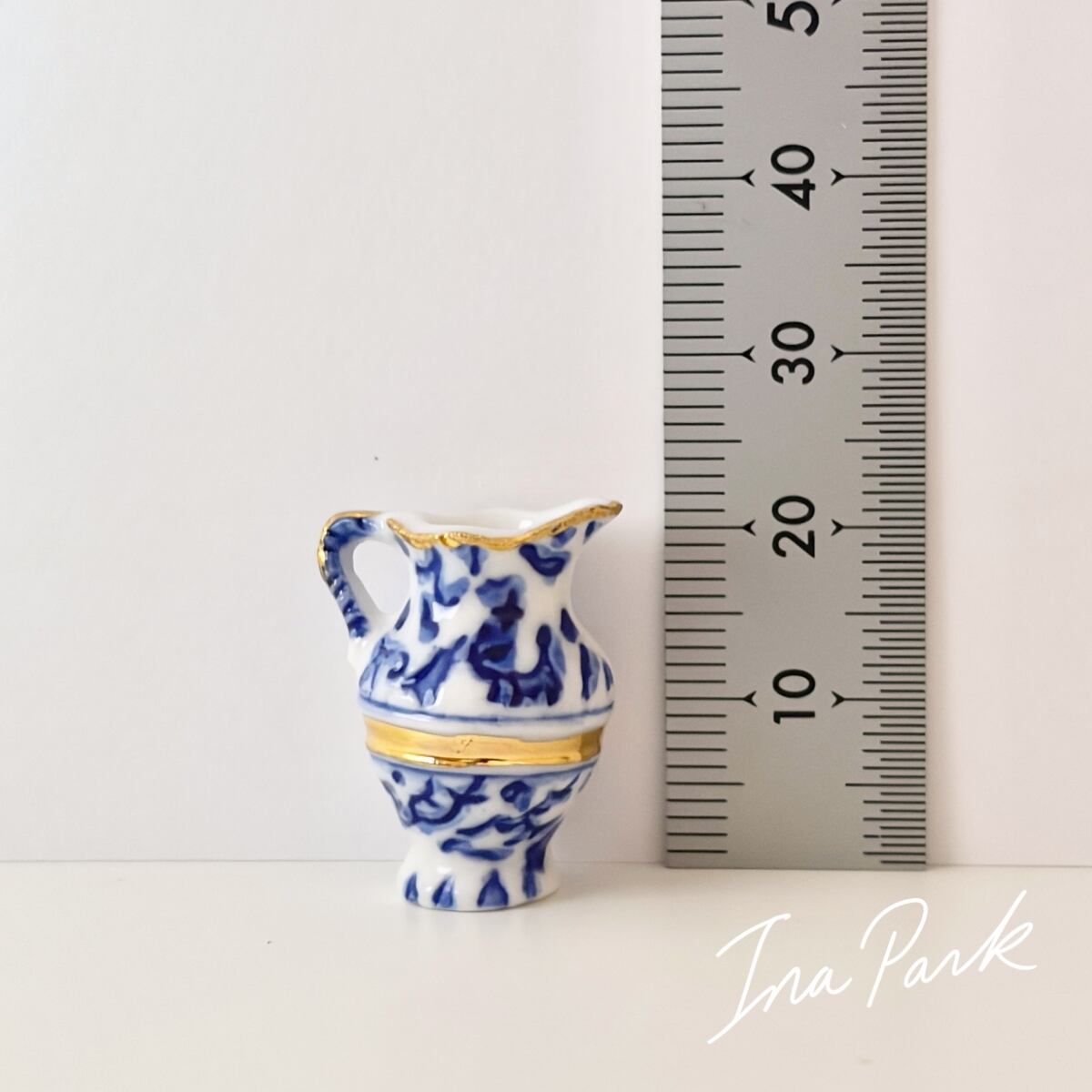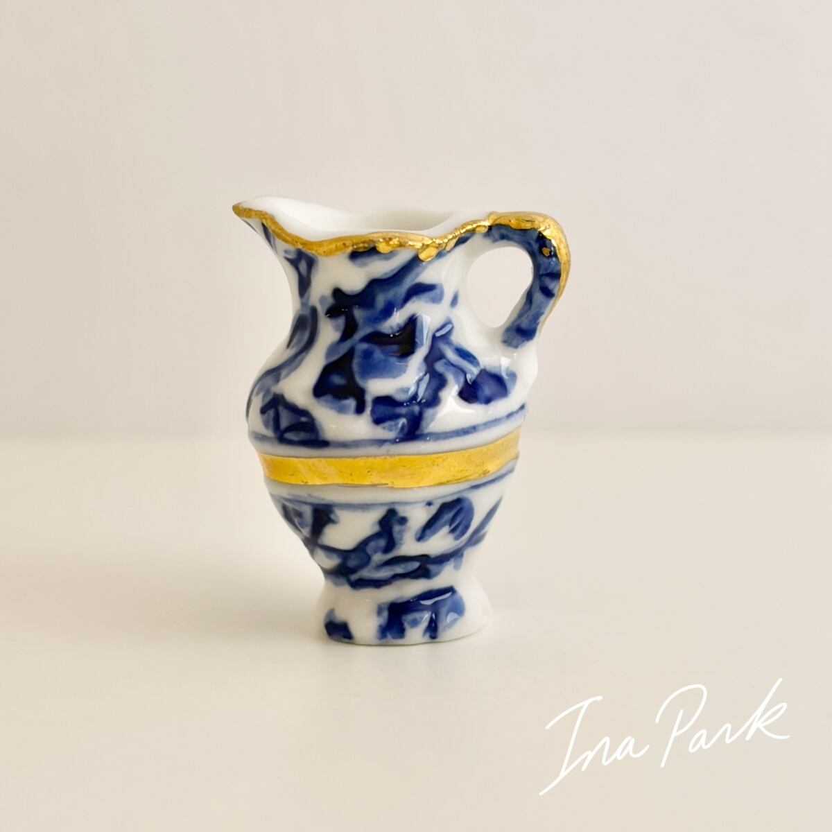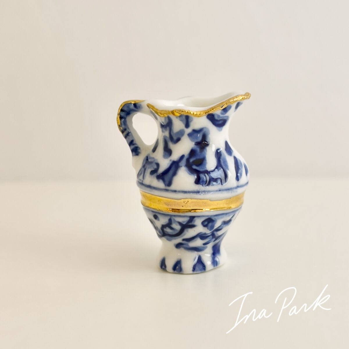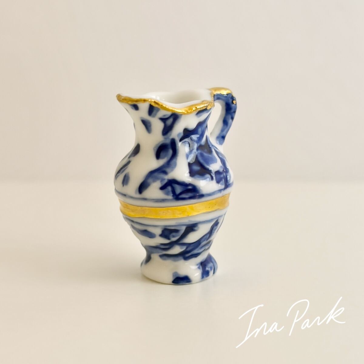 青と白の模様のピシェ 水差し 食器 フェーヴ フェーブ フランス製 ミニチュア 陶器 雑貨 置物
