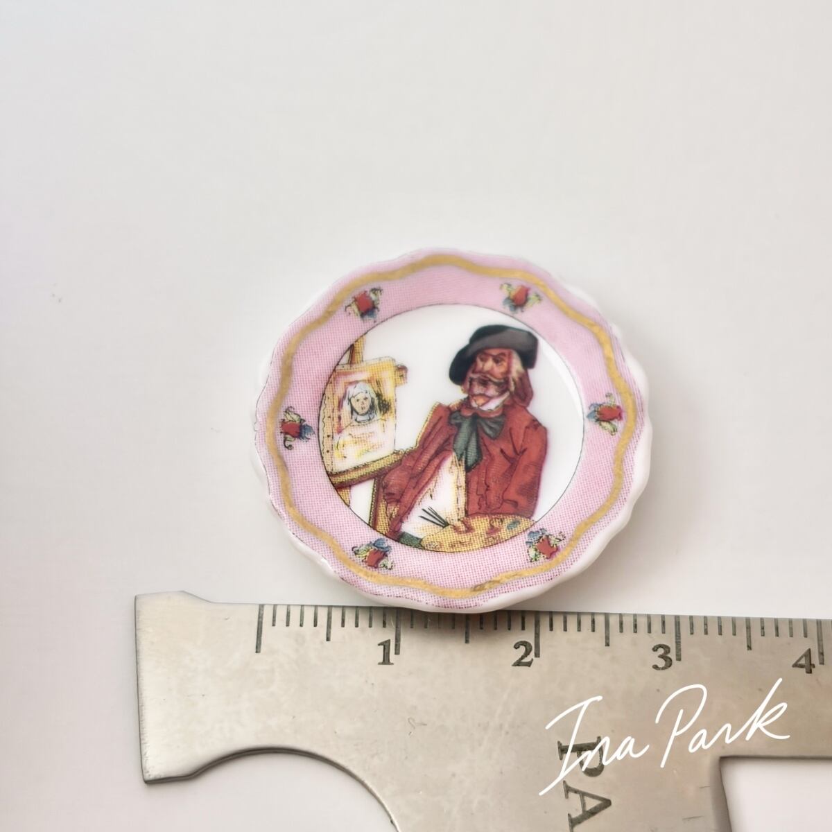 肖像画を描く画家の飾り皿 フェーヴ フェーブ フランス製 ミニチュア 陶器 雑貨 置物