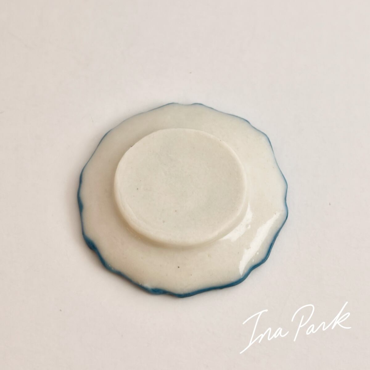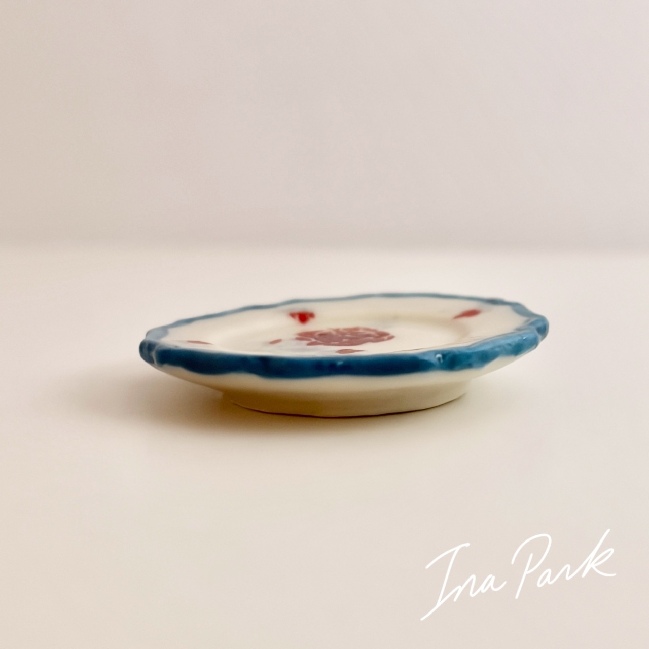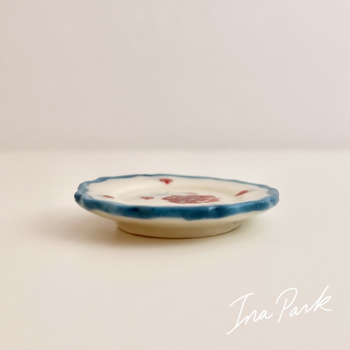 青い縁取りの薔薇の皿 フェーヴ フェーブ フランス製 ミニチュア 陶器 雑貨 置物