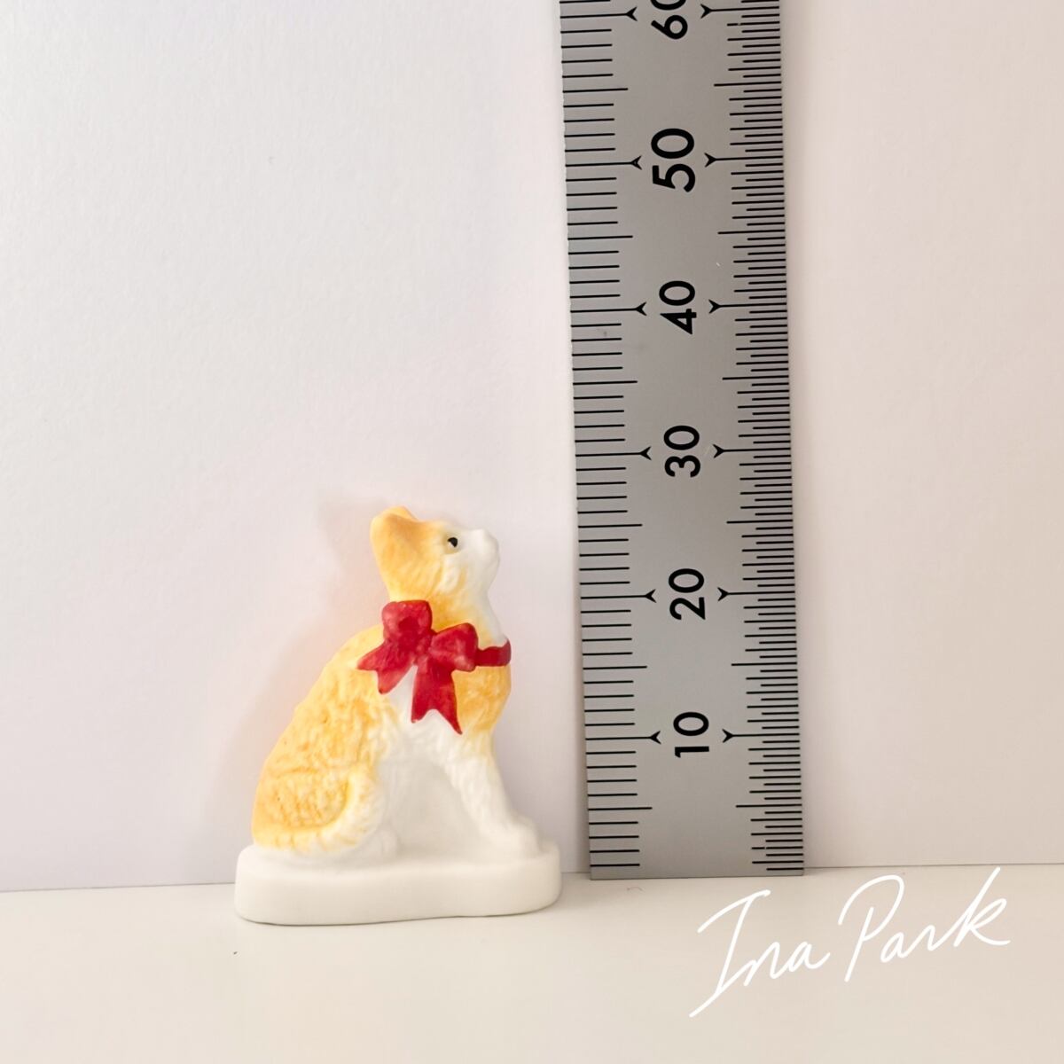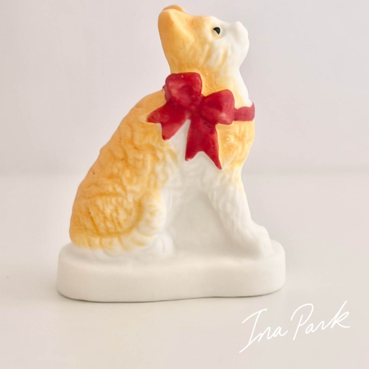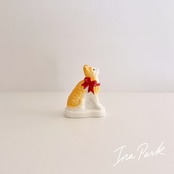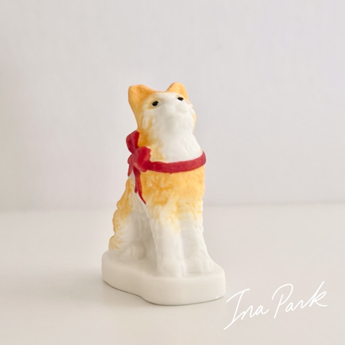 赤いリボンの猫 ネコのフェーヴ フェーブ フランス製 ミニチュア 陶器 雑貨 置物