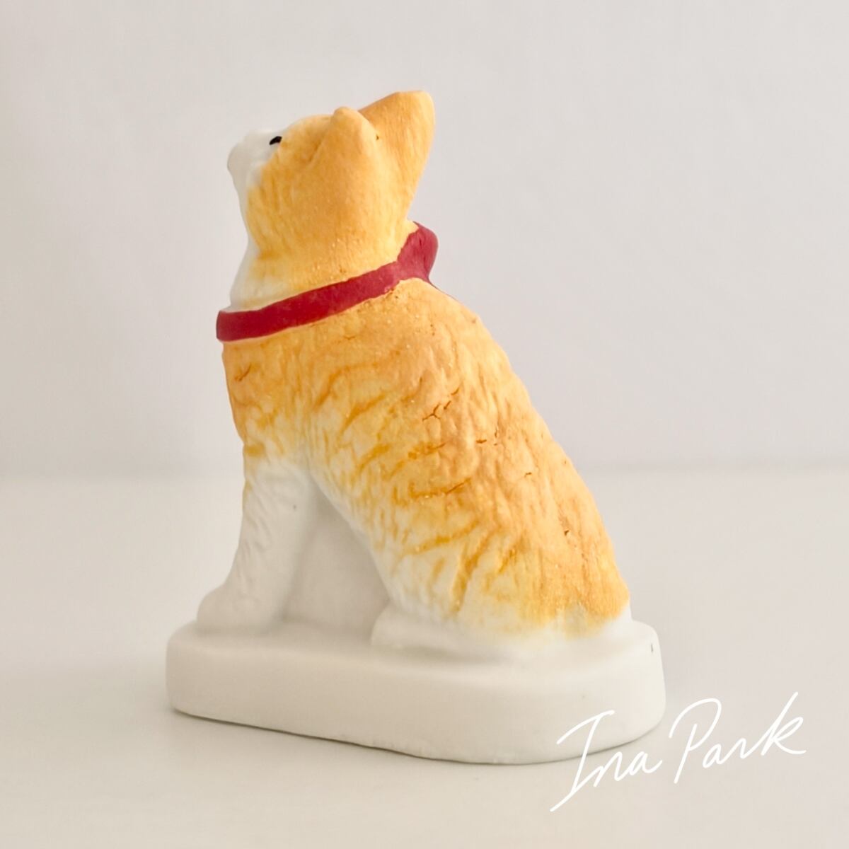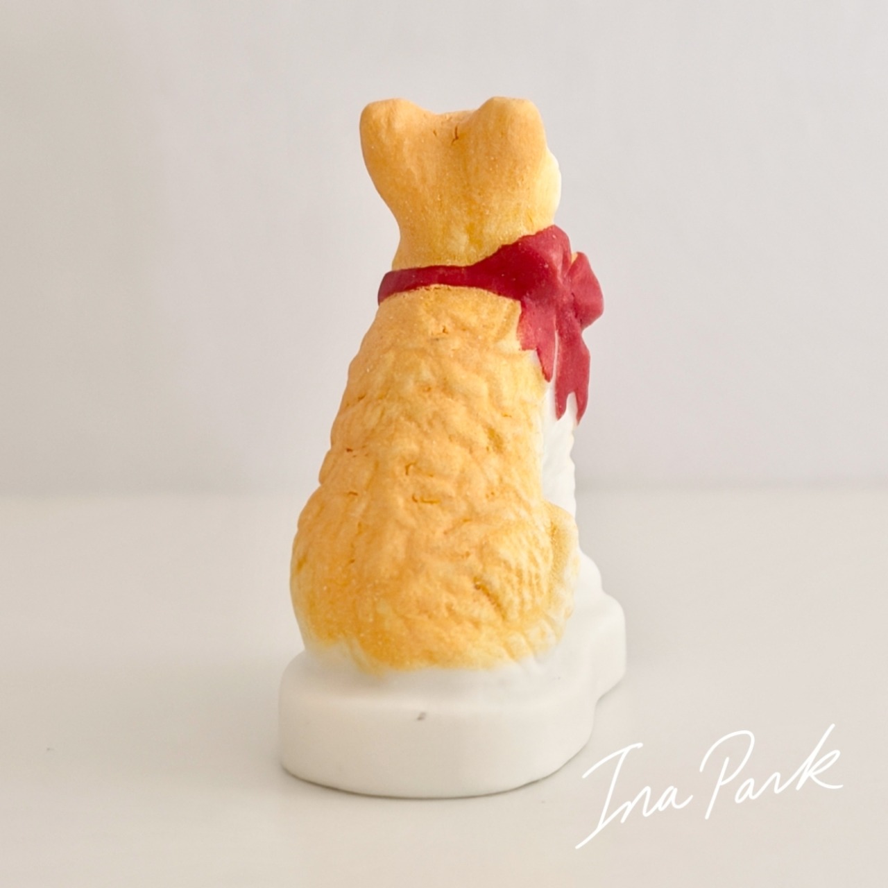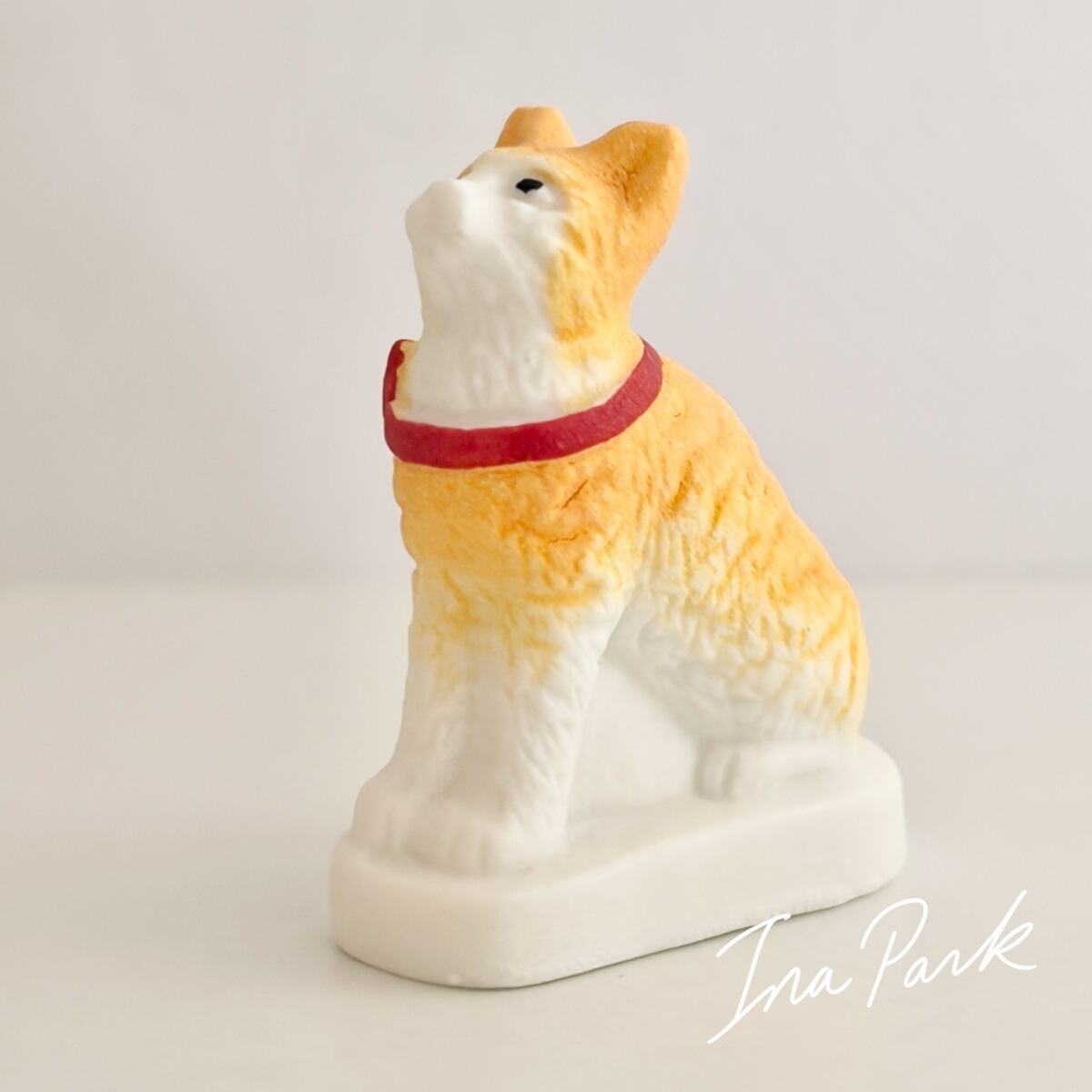 赤いリボンの猫 ネコのフェーヴ フェーブ フランス製 ミニチュア 陶器 雑貨 置物