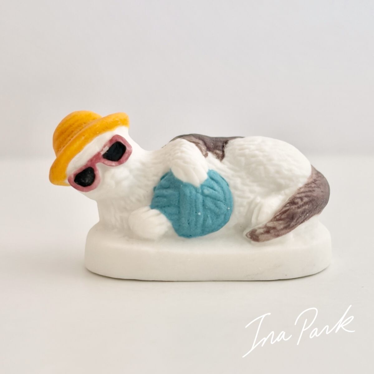 毛糸で遊ぶ猫 ネコ フェーヴ フェーブ フランス製 ミニチュア 陶器 雑貨 置物