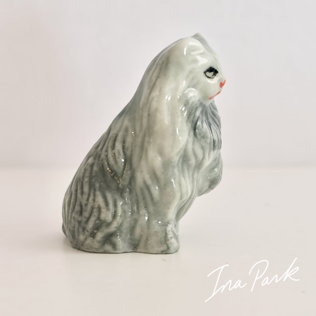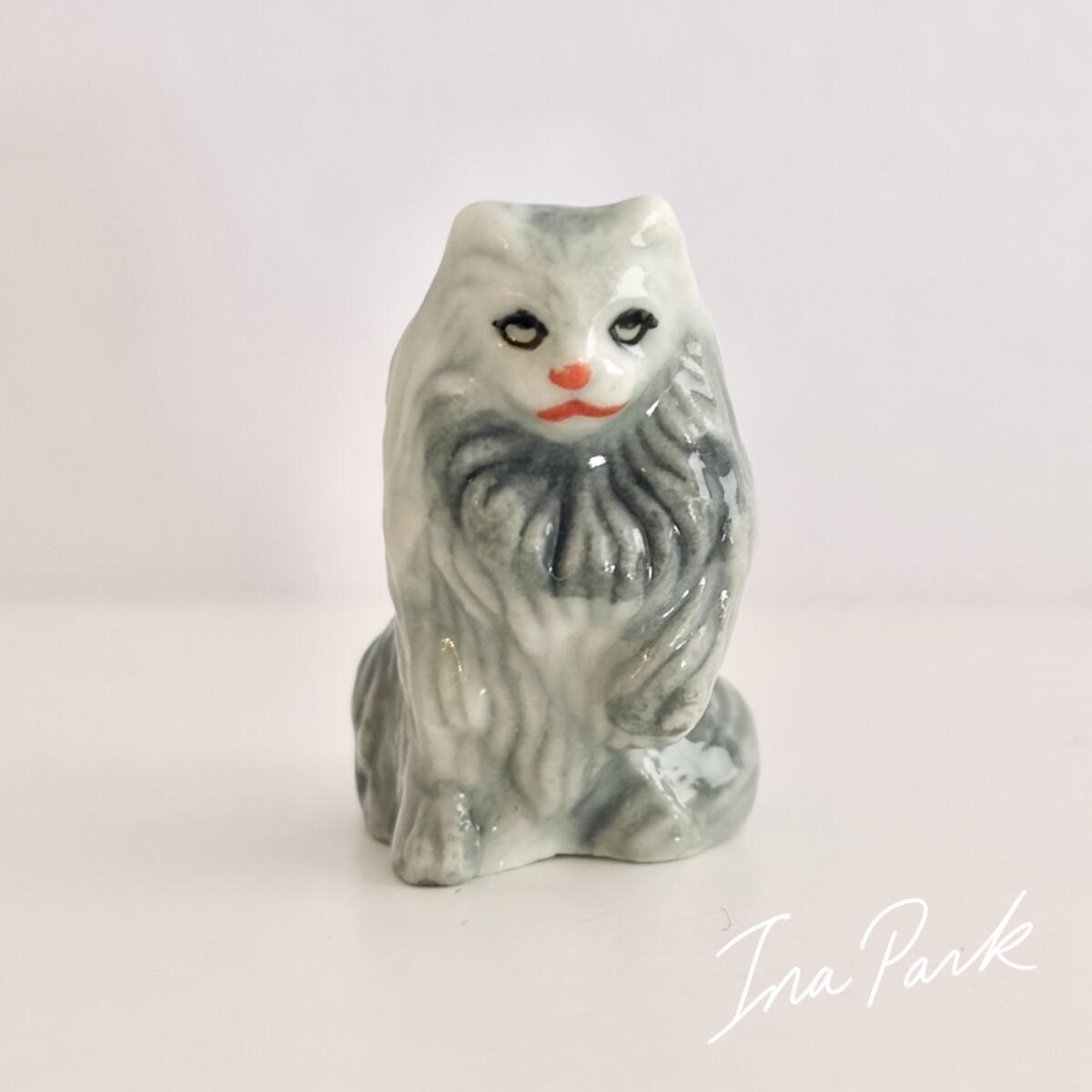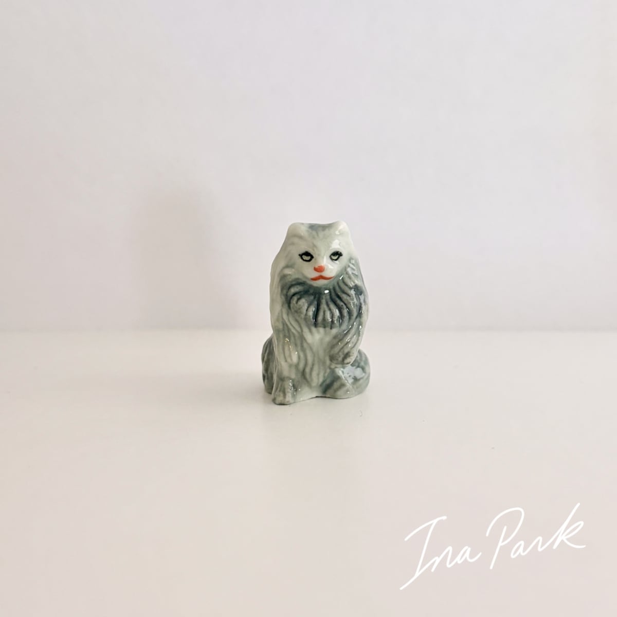 ヴィンテージ 長毛の猫 フェーヴ フェーブ フランス製 ミニチュア 陶器 雑貨 置物