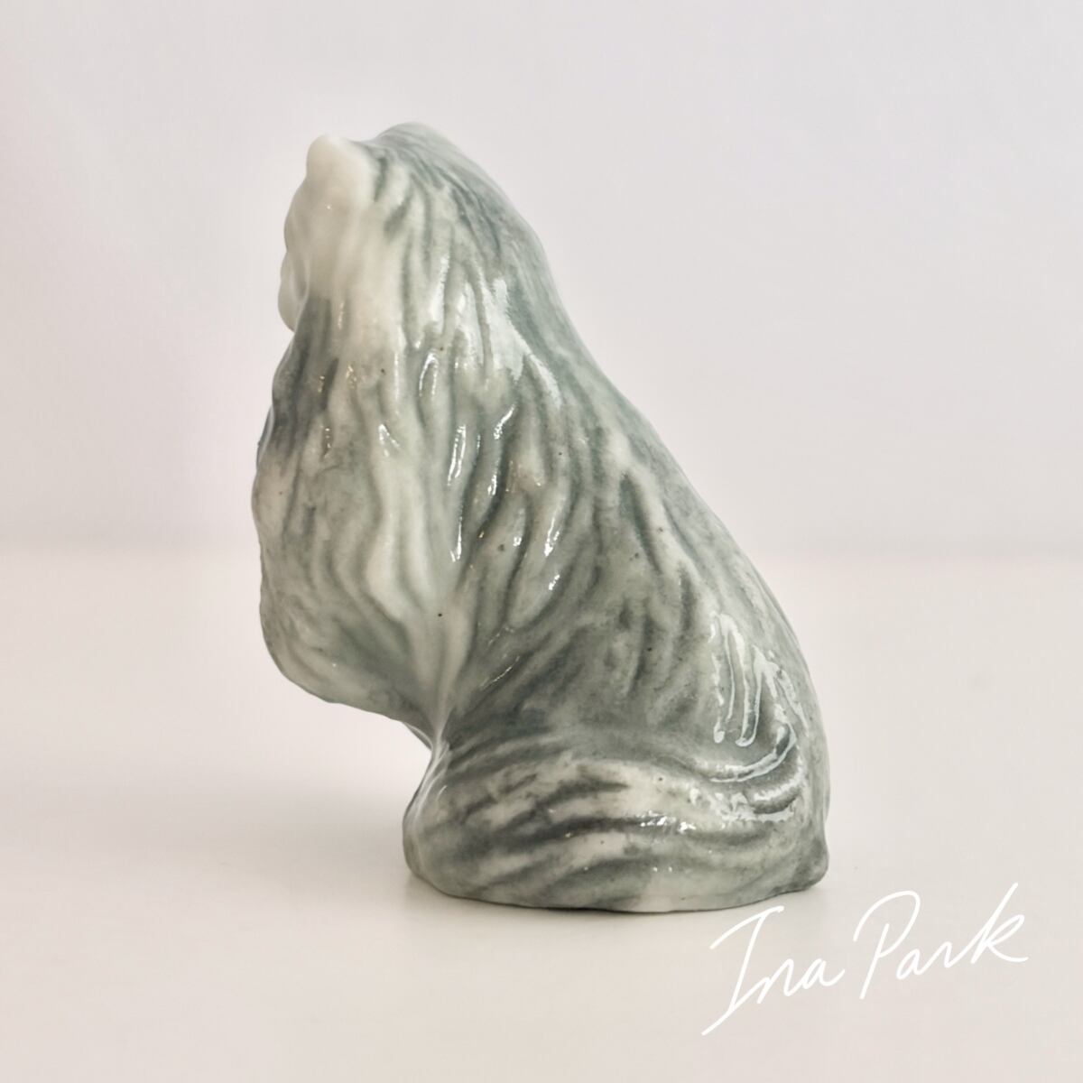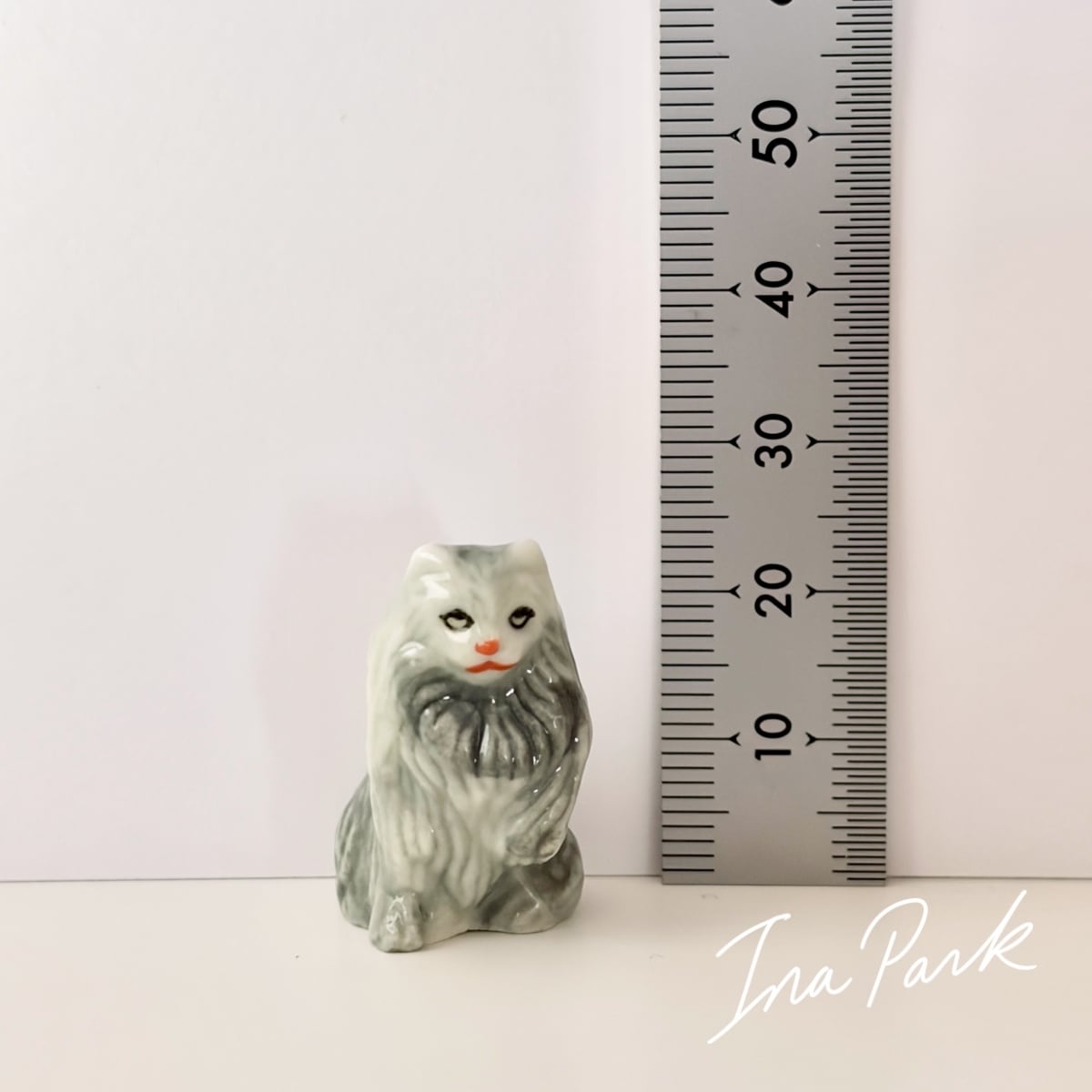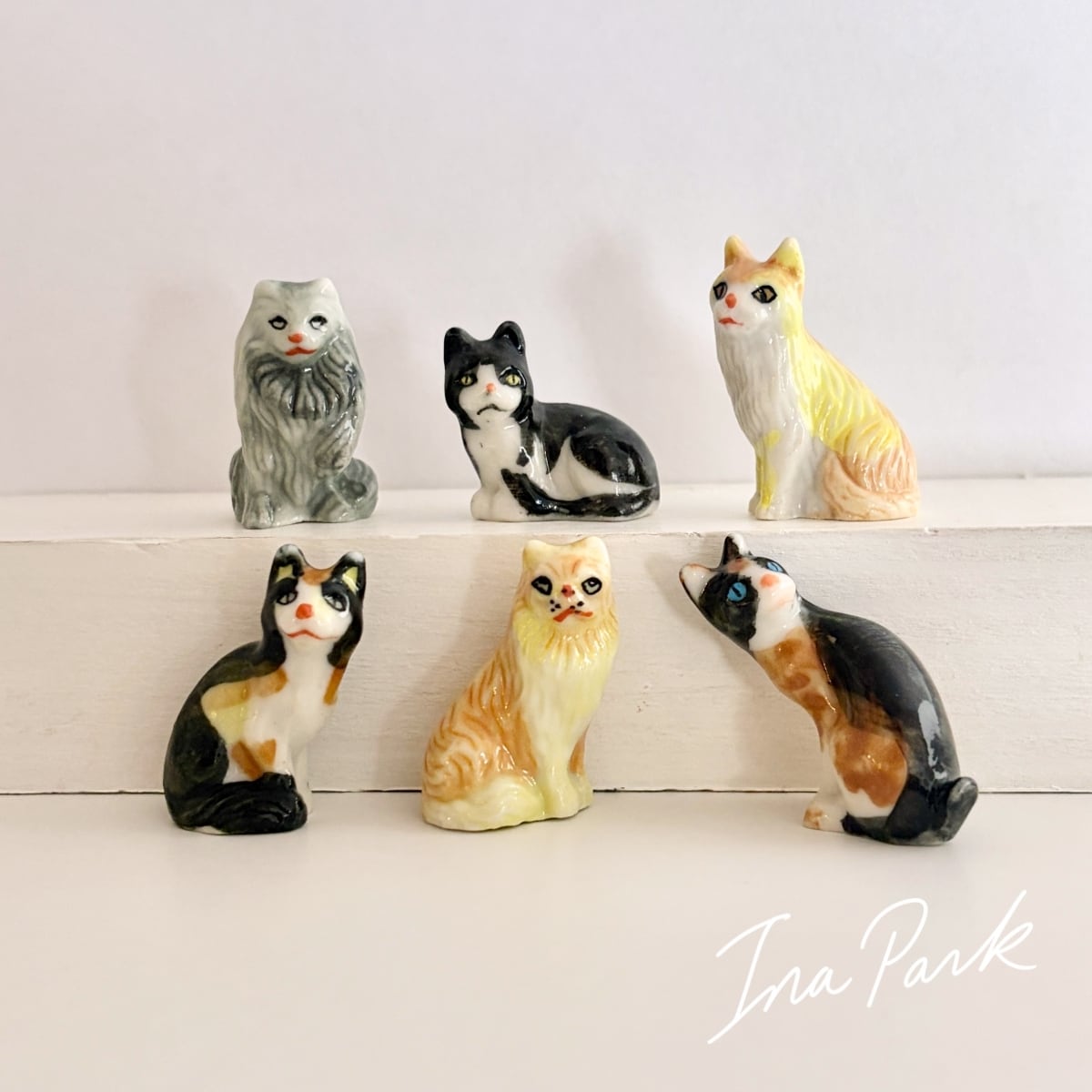 ヴィンテージ 長毛の猫 フェーヴ フェーブ フランス製 ミニチュア 陶器 雑貨 置物