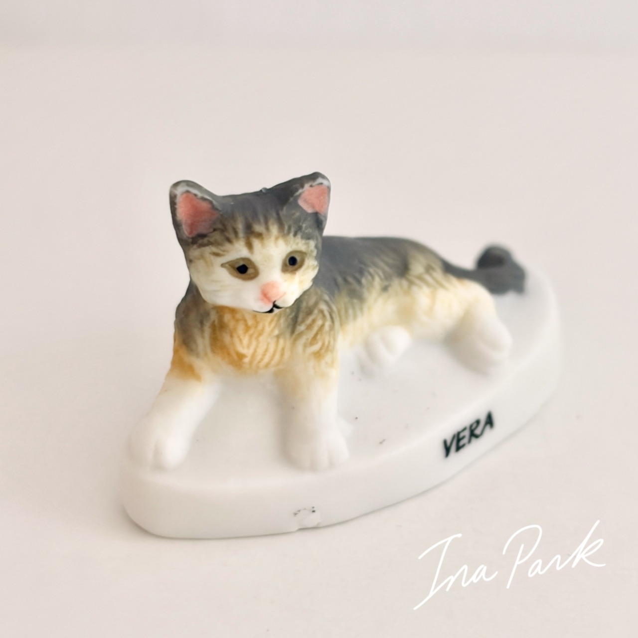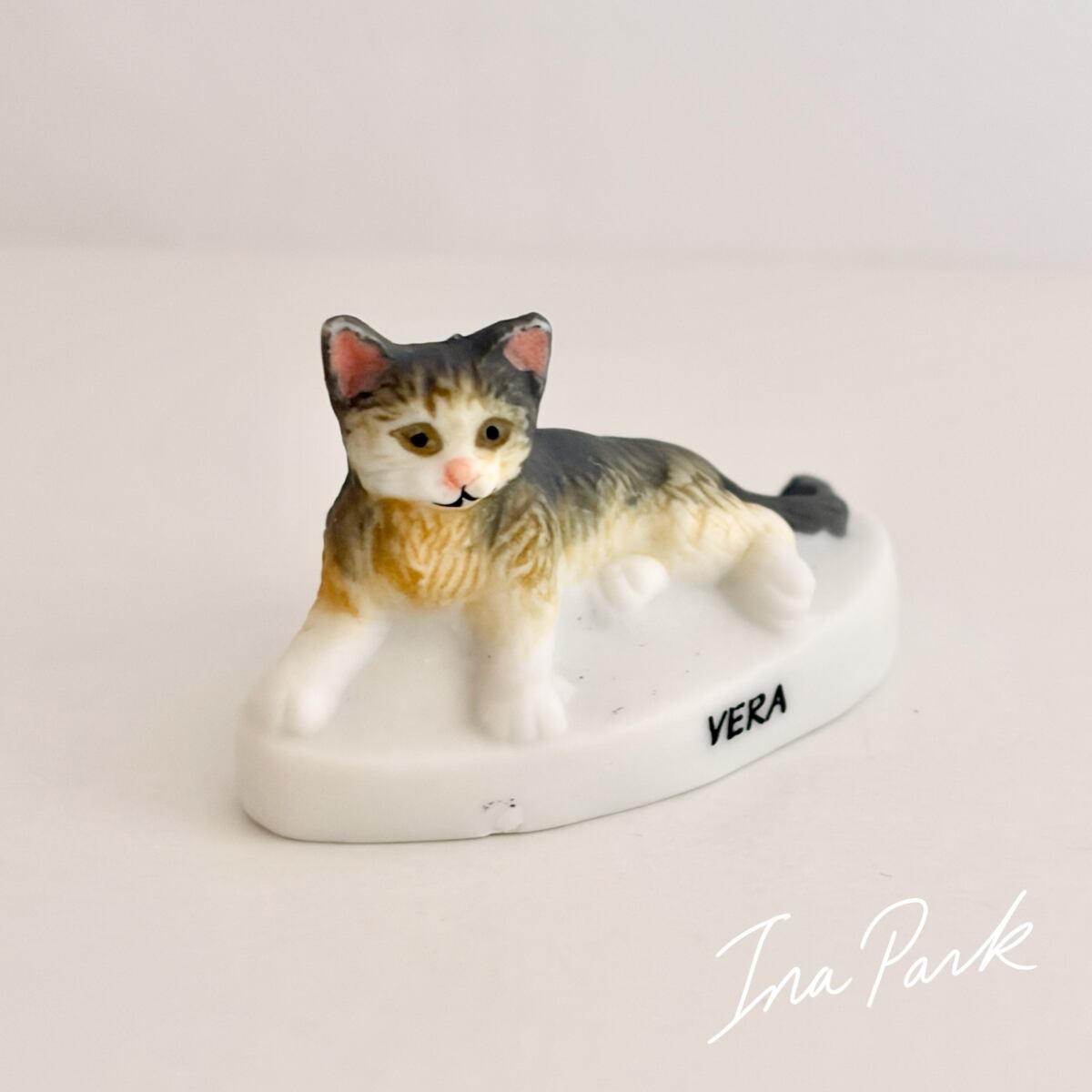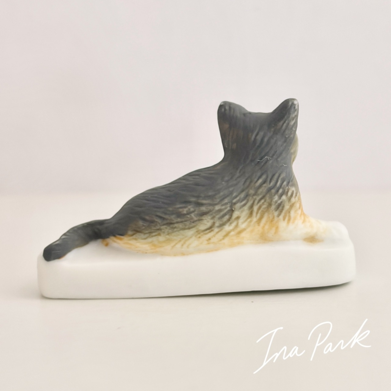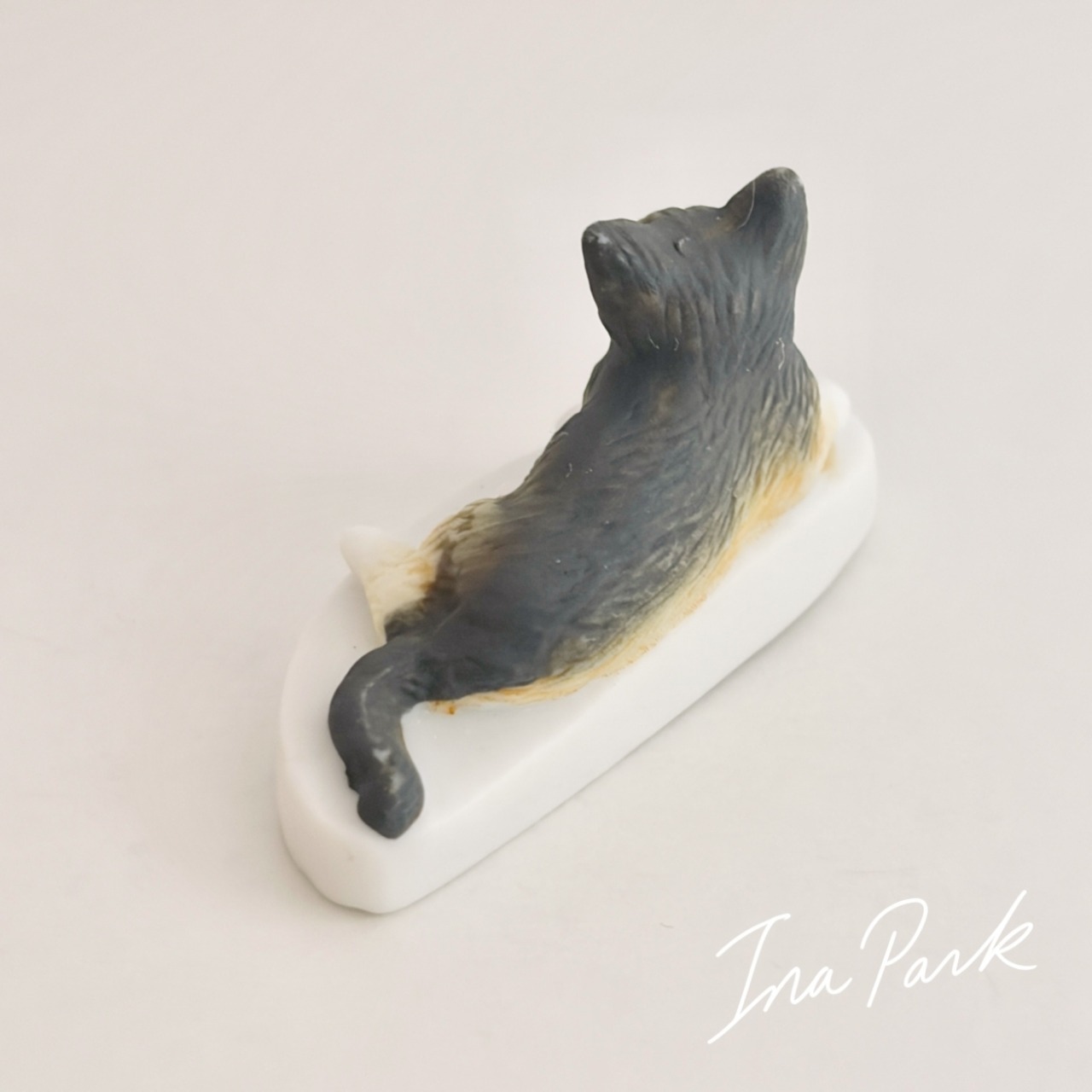 猫の体つきが丁寧に忠実に造形されており、毛並みのふんわりした感じまで伝わってきそうです。底面にAlcaraのマークが入っています。