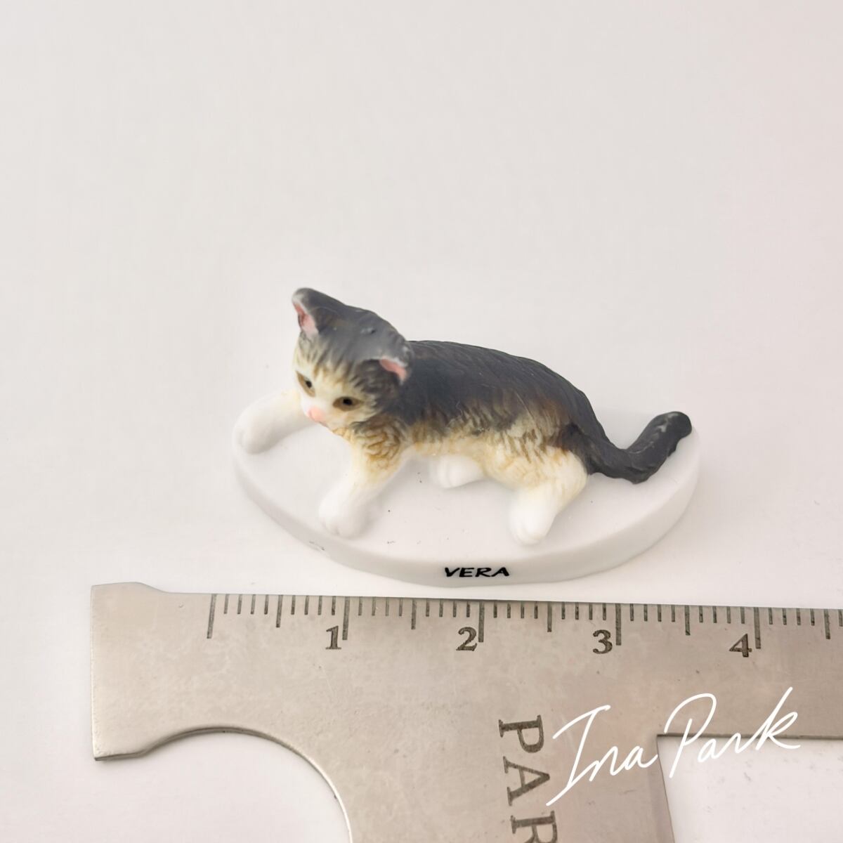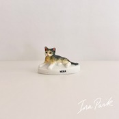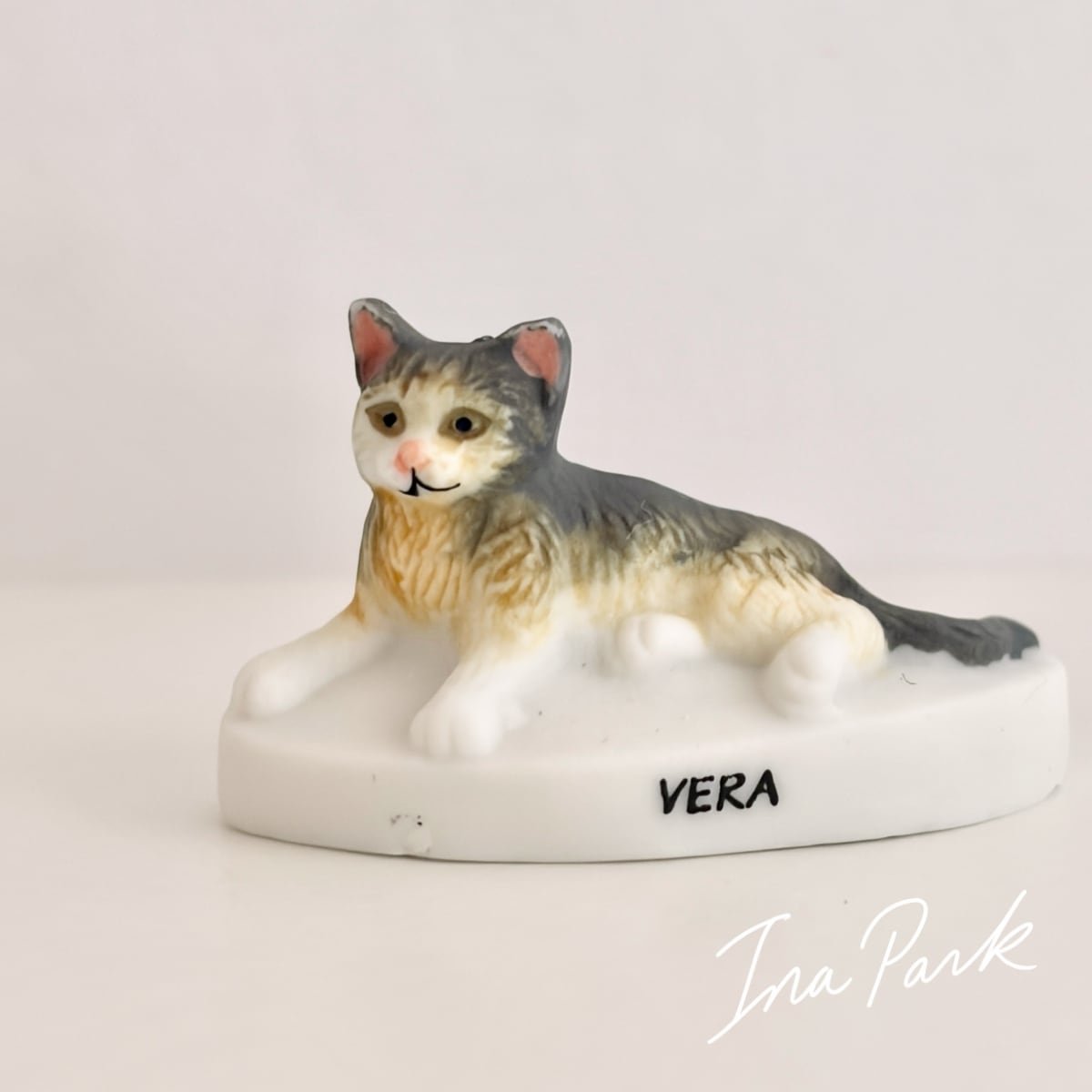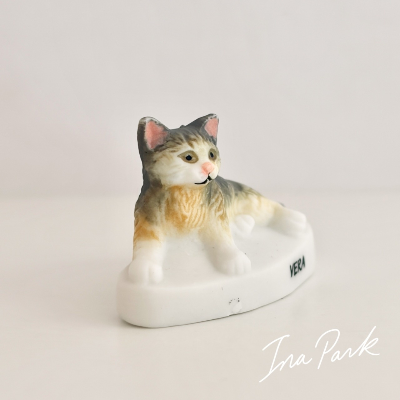 猫の体つきが丁寧に忠実に造形されており、毛並みのふんわりした感じまで伝わってきそうです。底面にAlcaraのマークが入っています。